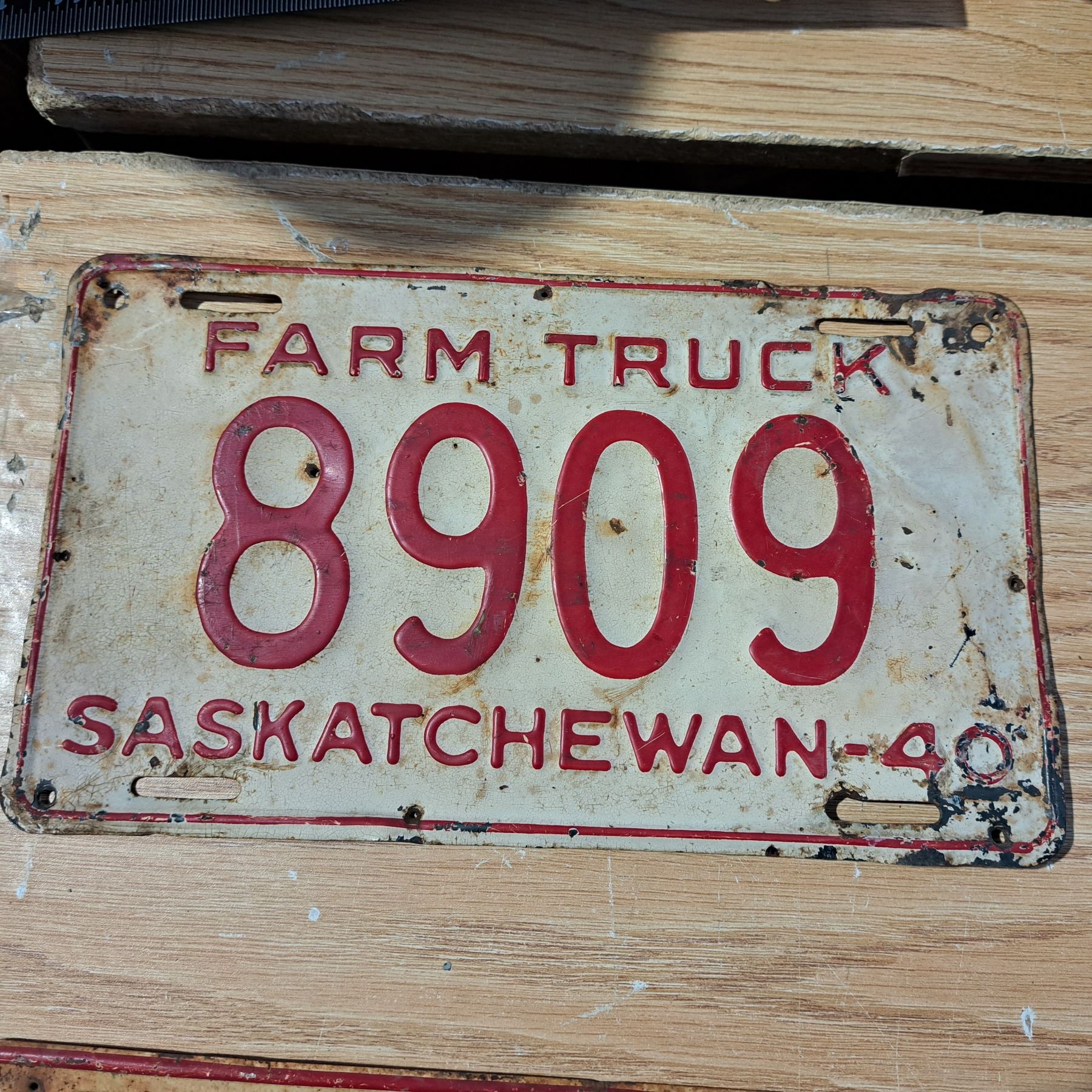 licence plate Sask 4 digit farm truck