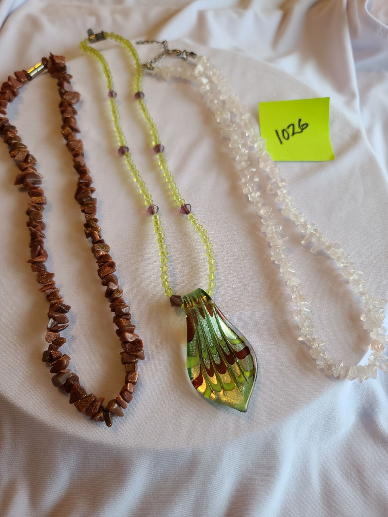 light rose quartz necklace, Gold sunstone necklace, Beaded yellow necklace with green and brown pendant