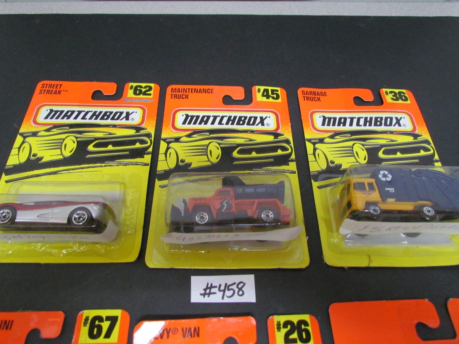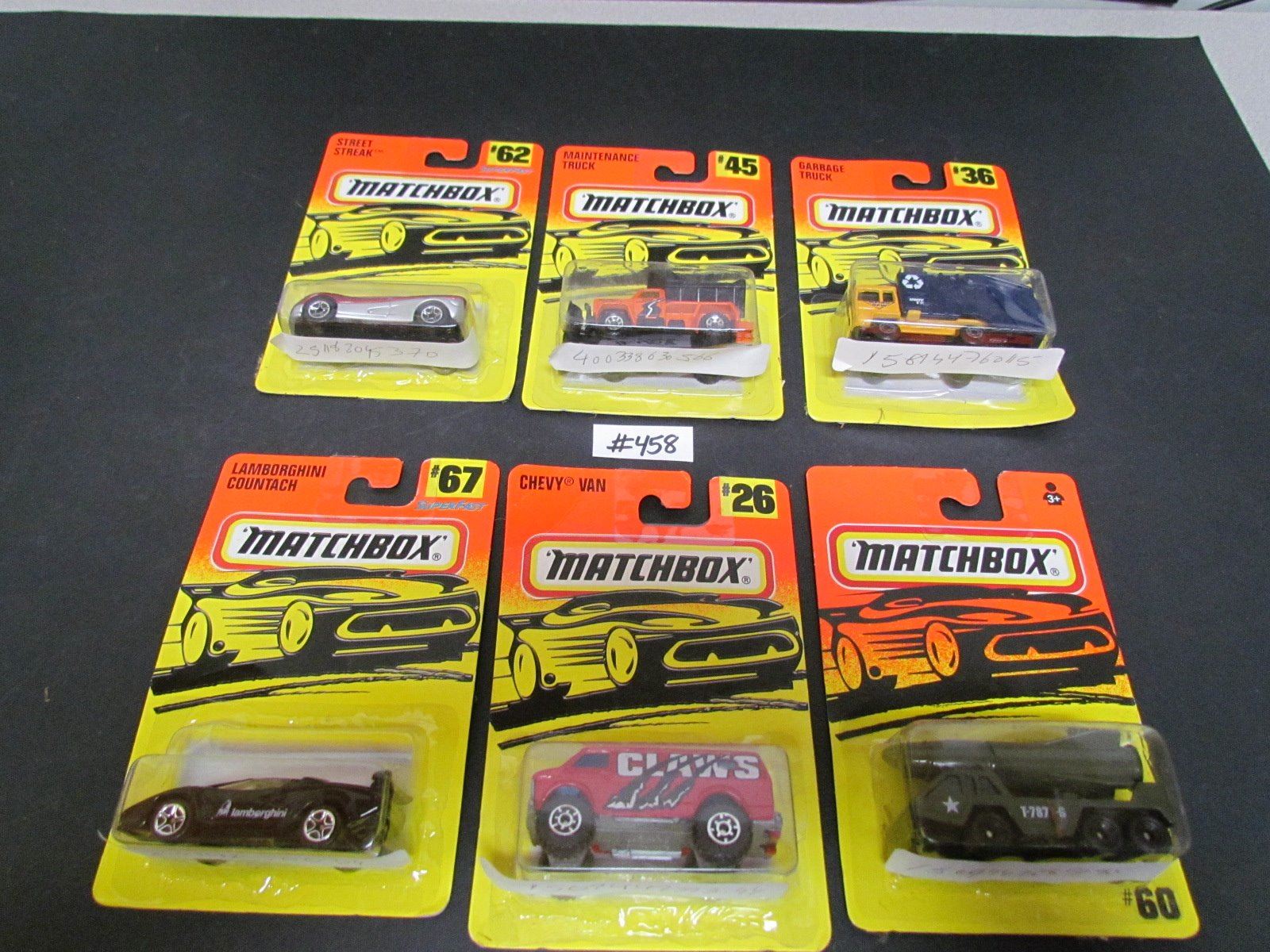 lot#48- 6 Matchbox-Street Streak,Maintence truck,Garbage truck,Lamborghini Countach,Chevy Van,Rocket