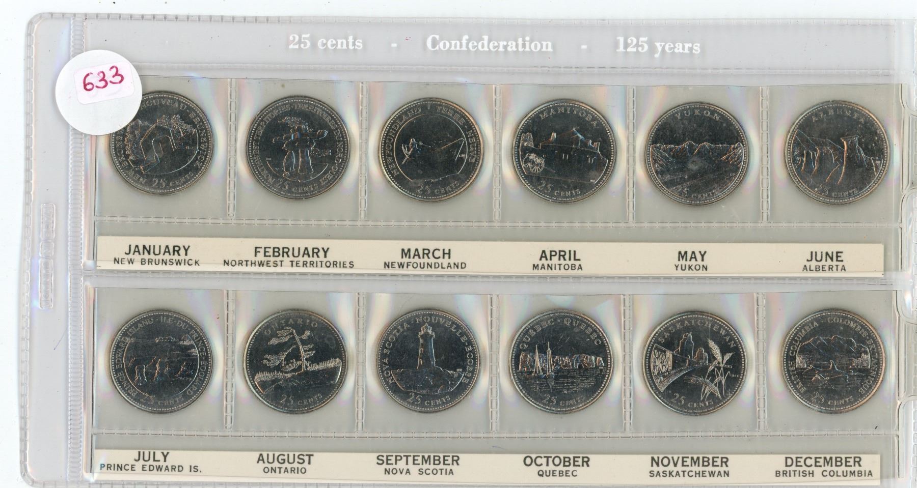 lot of 12 Canadian 25 cent coins confed. 125 yrs. by month