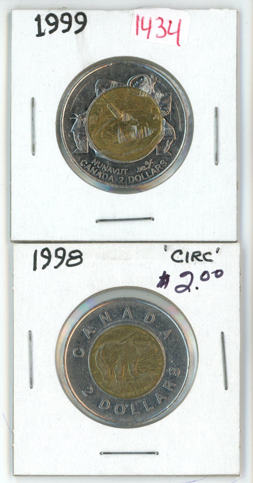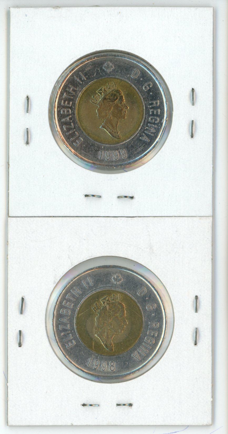 lot of 2 ( 1998 circ. And 1999) canadian toonies