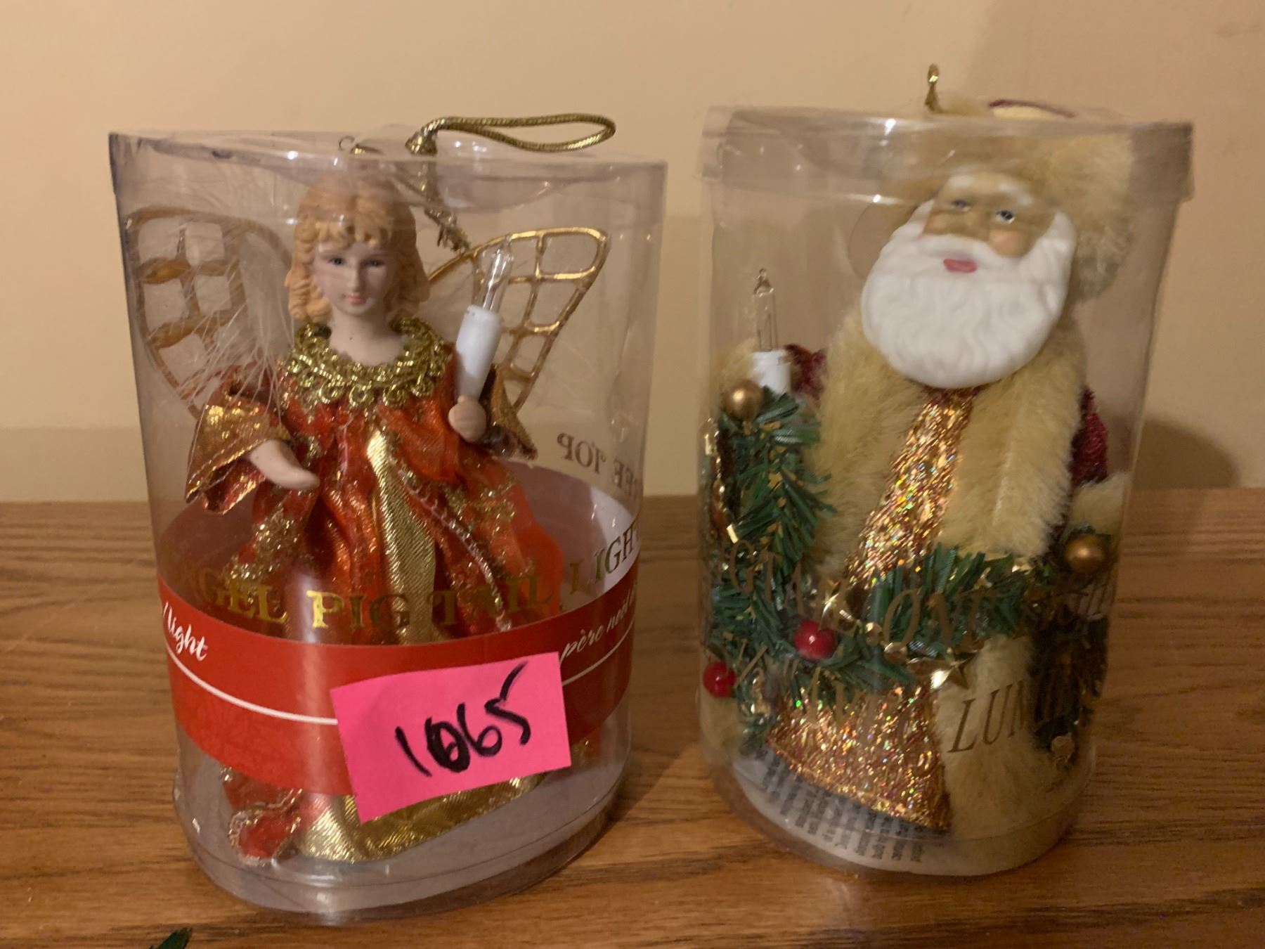 lot of 2 lighted 5.5" ornaments, father Christmas & angel