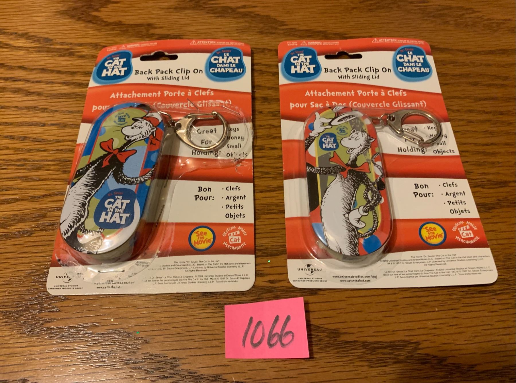 lot of 2 vintage "cat in the hat" back pack clips with key holder