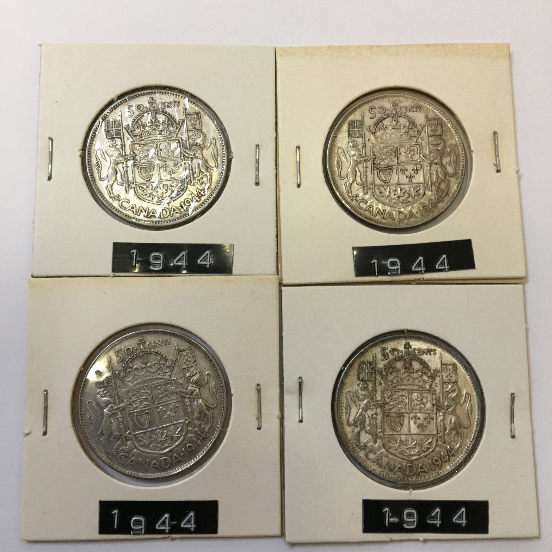 lot of 4 1944 CNDN Silver 50 Cent pieces