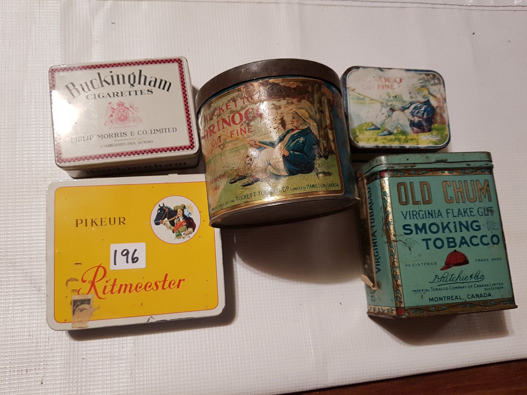 lot of 5 Tobacco tins (old chum,bucckingham etc)