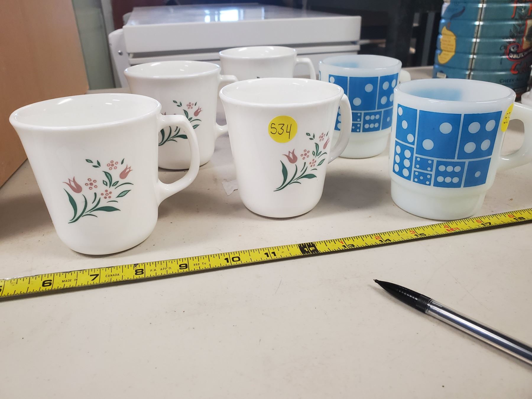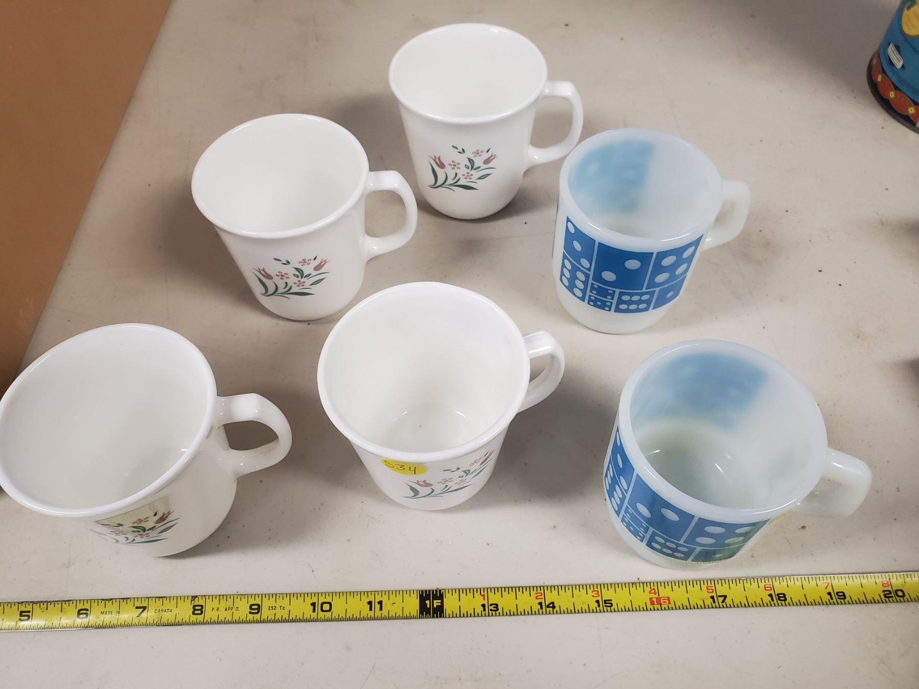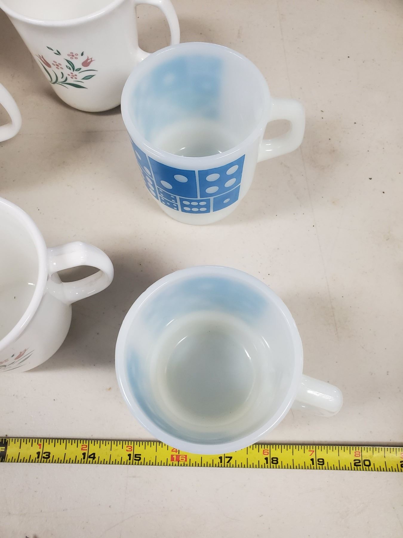 lot of 6 coffee mugs - 4 Corning, 2 Fireking Anchor Hocking