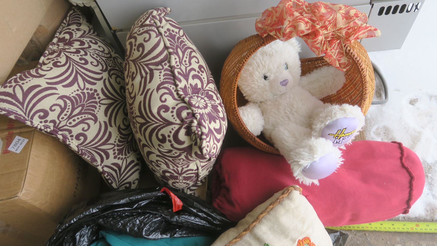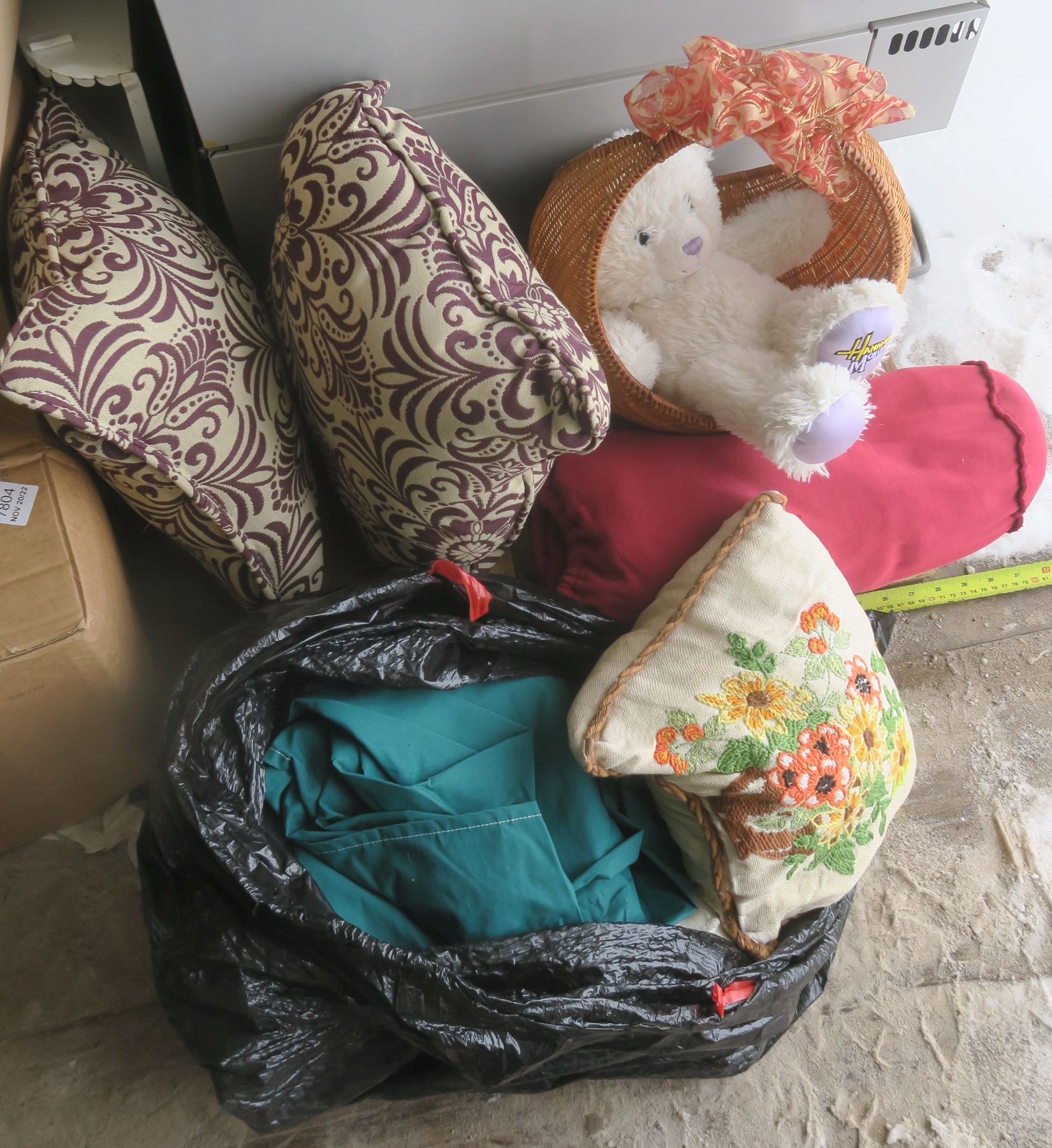 lot of Throw pillows + liners + Teddy bear, + flower basket