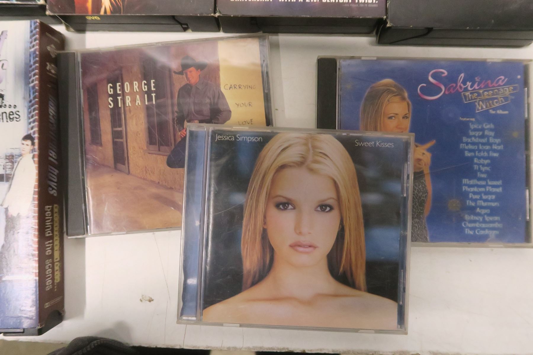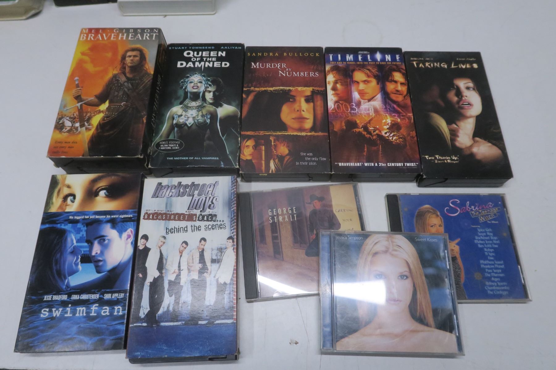 lot of VHS tapes and CDs - Braveheart, Backstreet Boys, etc.