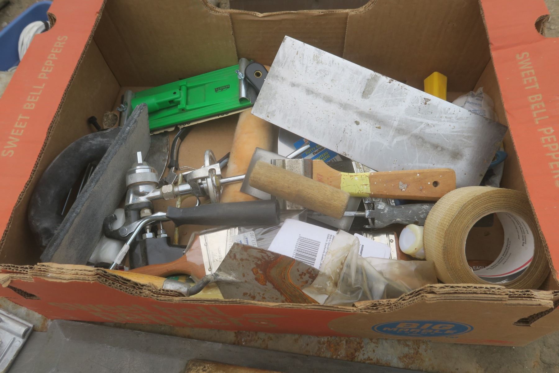 lot of drywall and painting tools