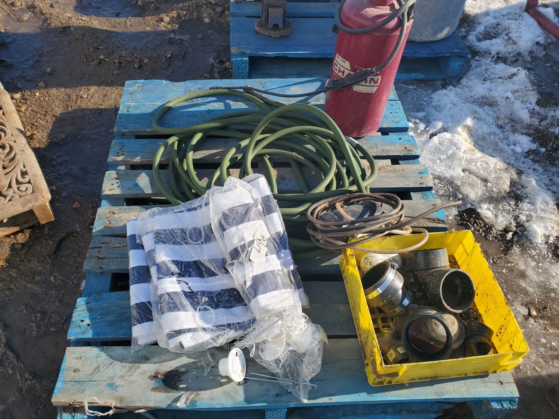 lot of garden hose, sprayer, etc