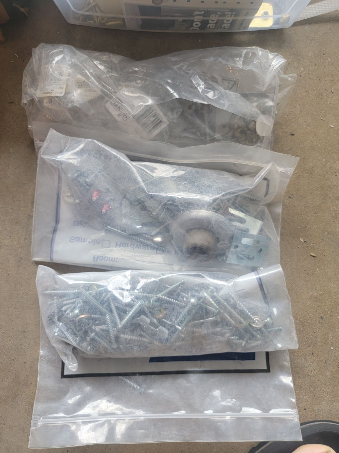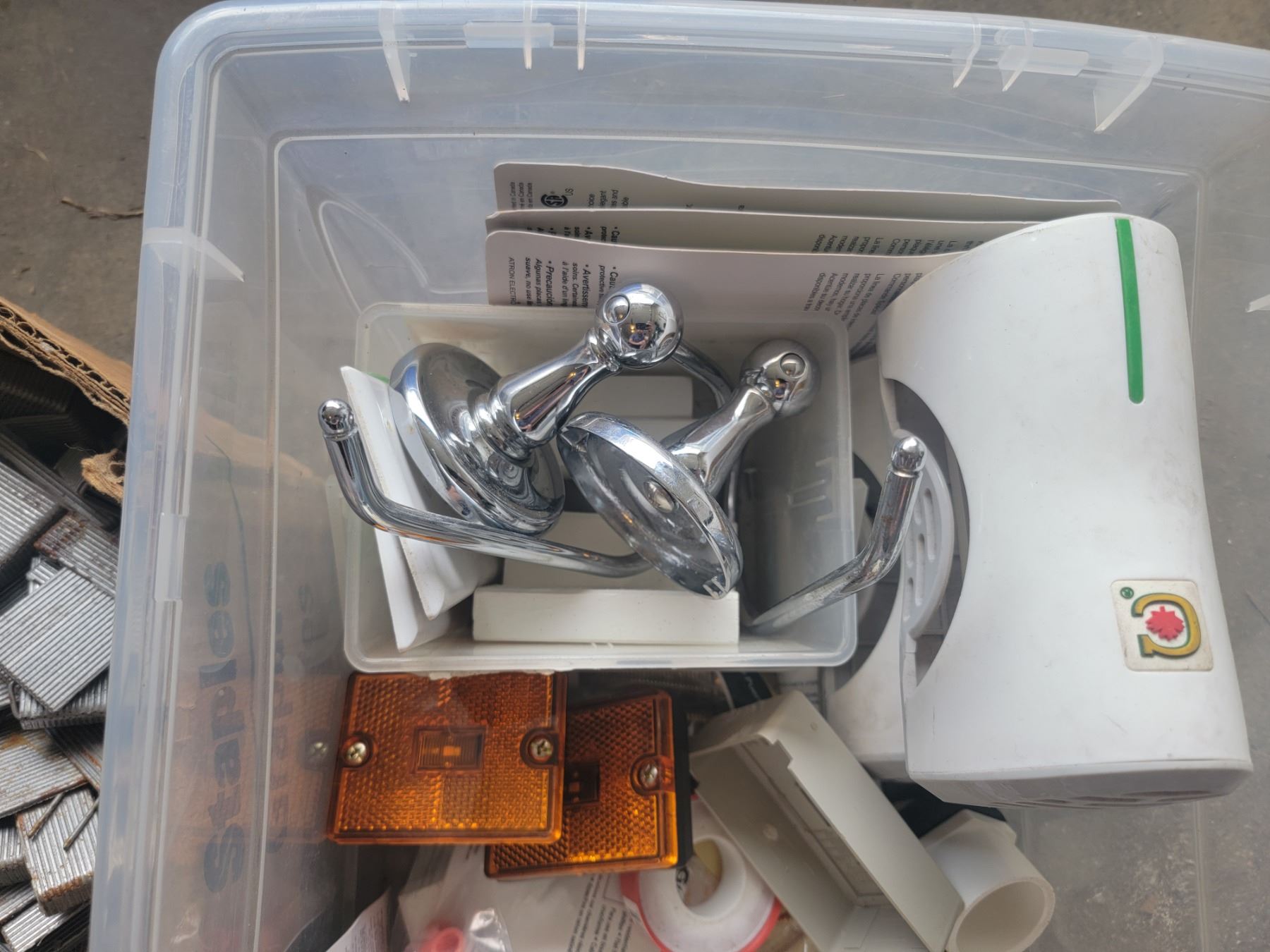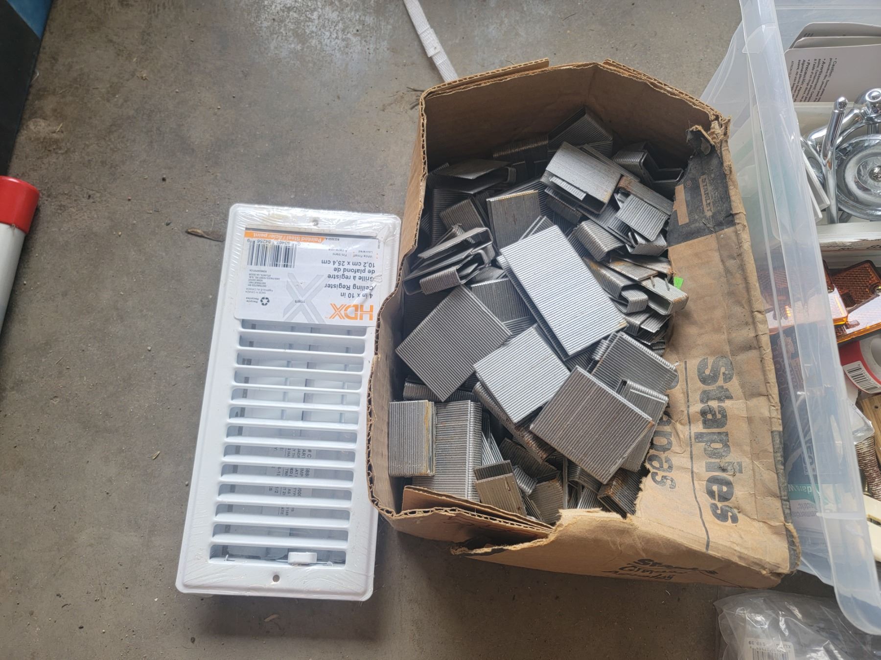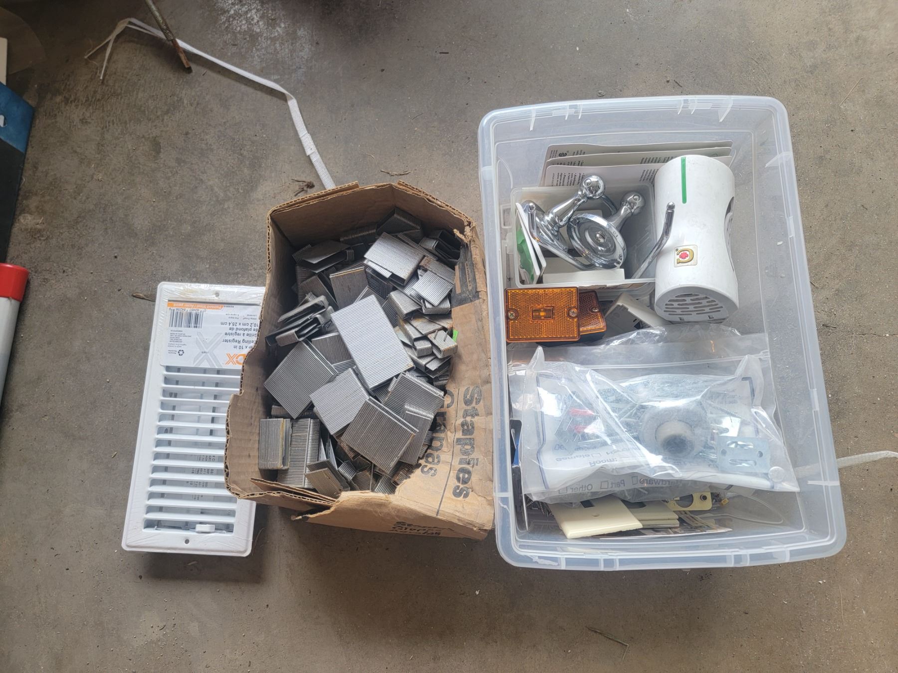 lot of hardware, staples, switch covers, screws, bathroomm to come