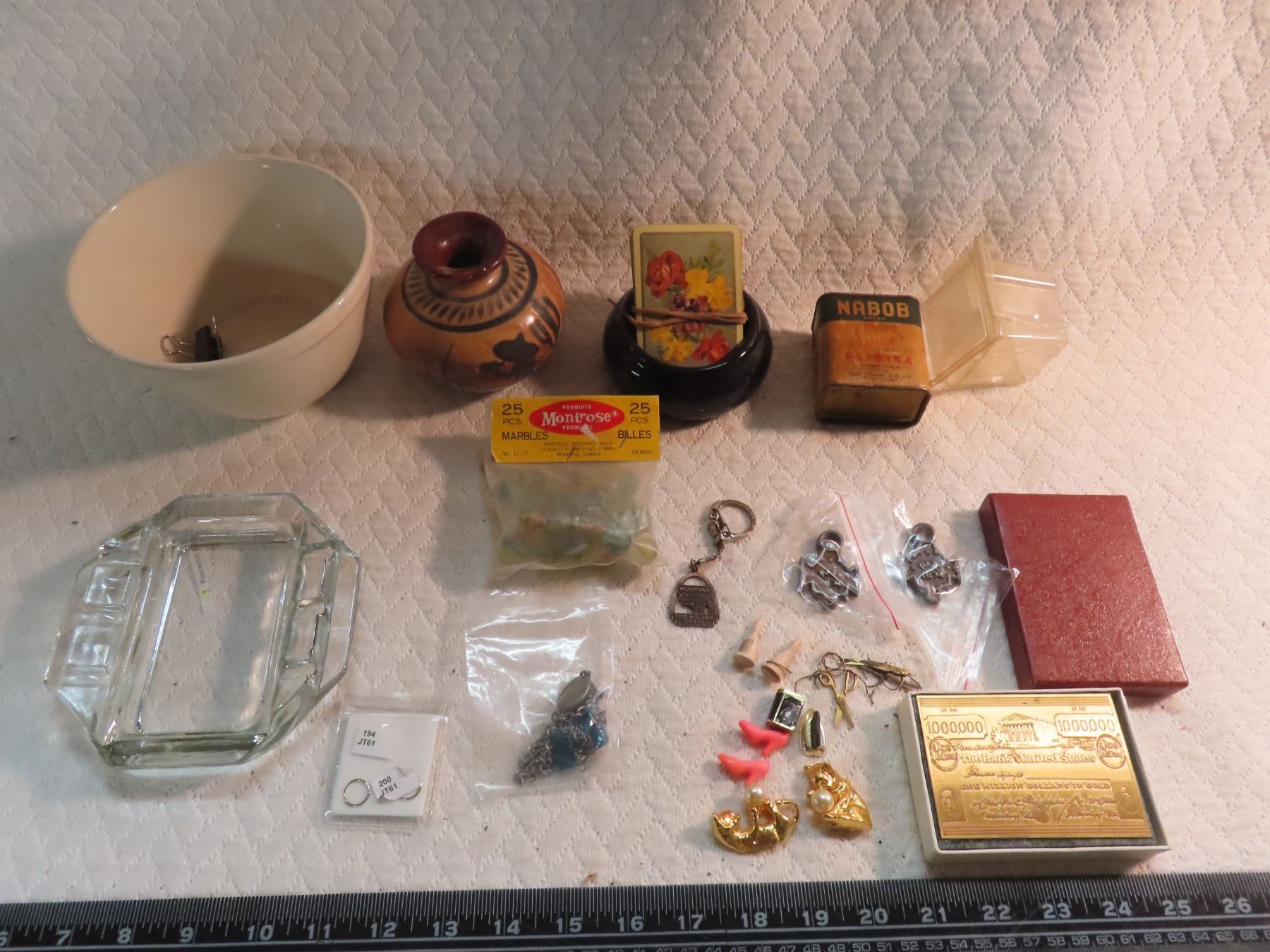 lot of jewelry, gold note, cups, vase, décor misc.