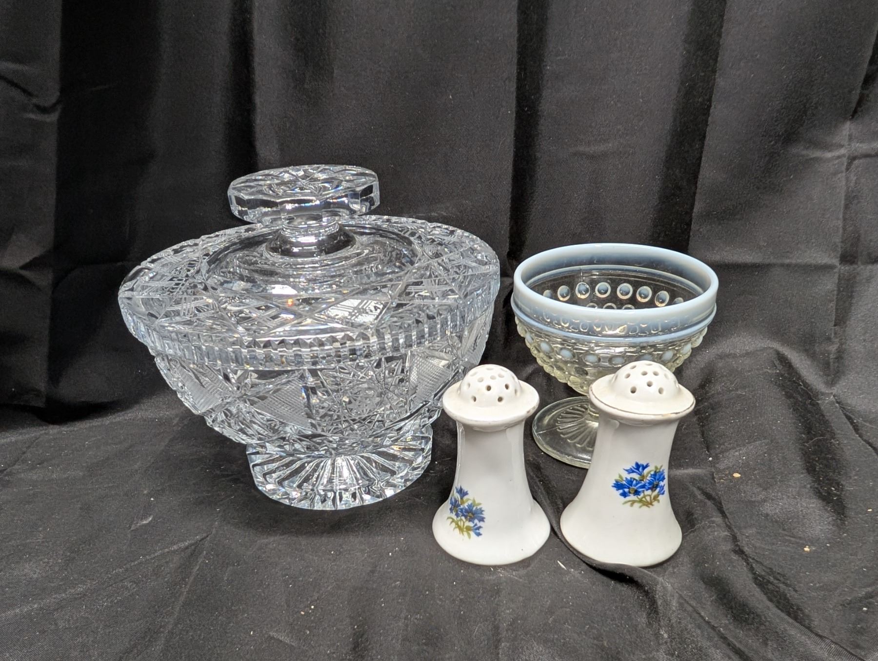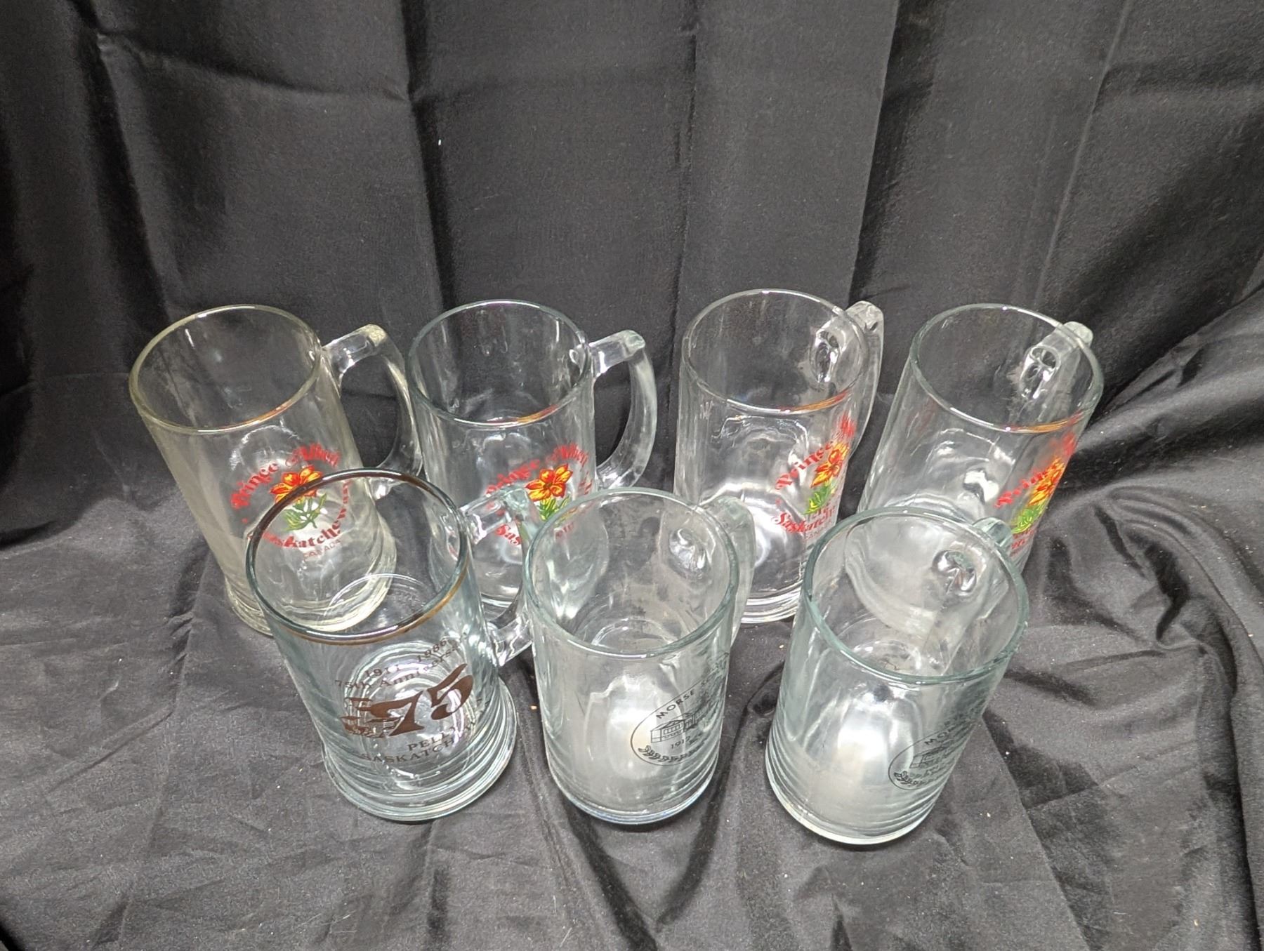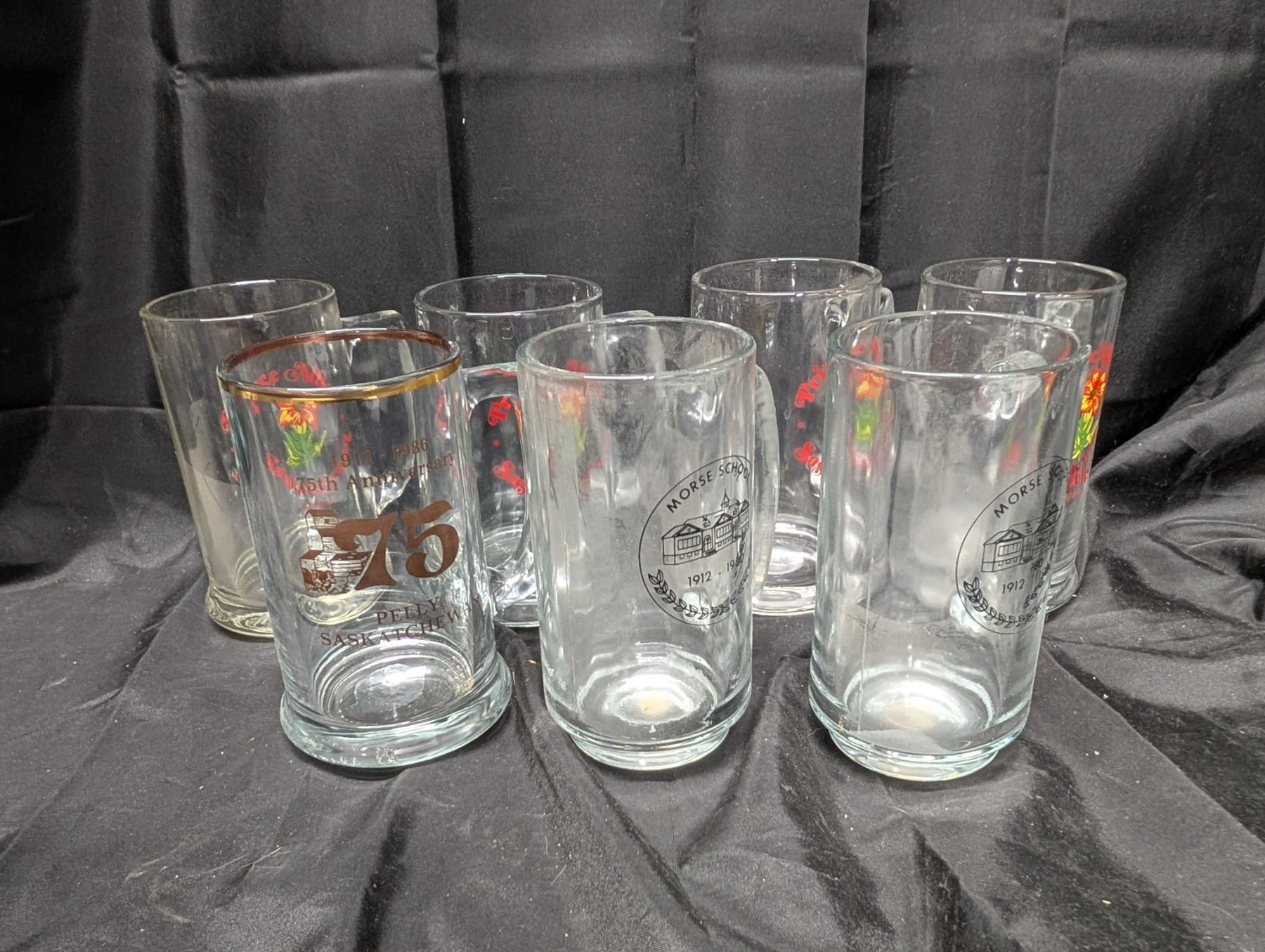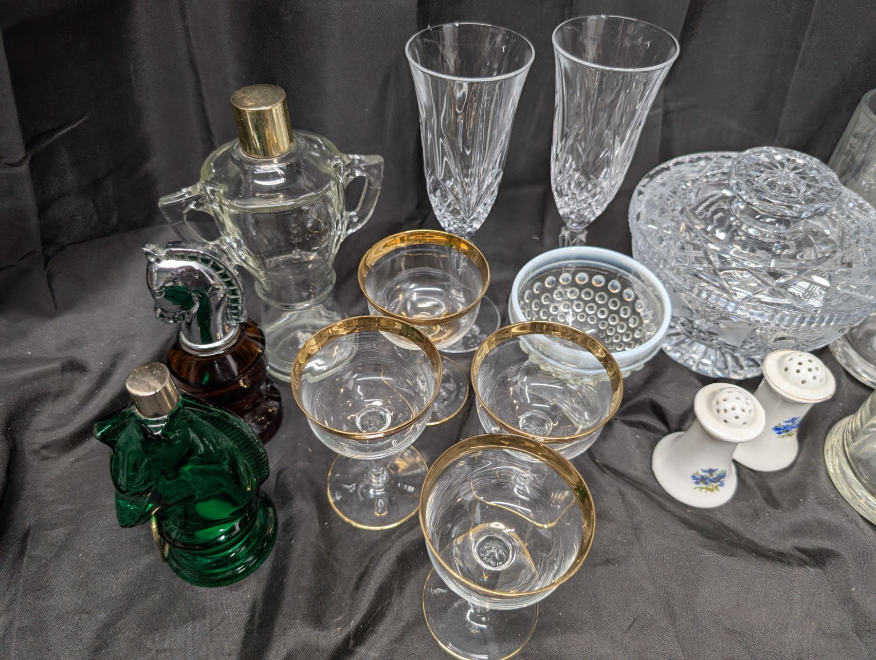 lot of multi colour glass cups, Pints, salt and pepper shakers, glass decor, and etc.