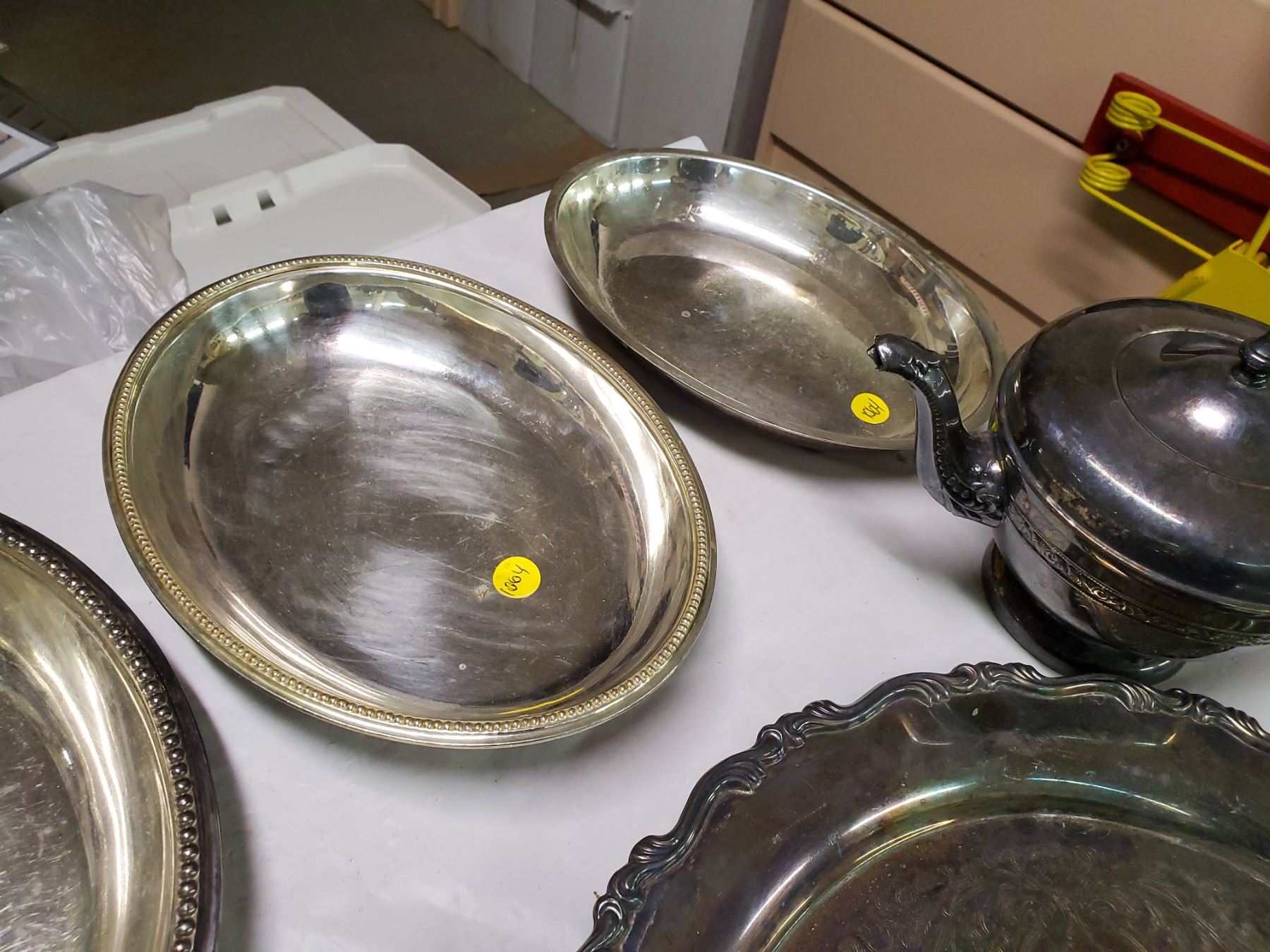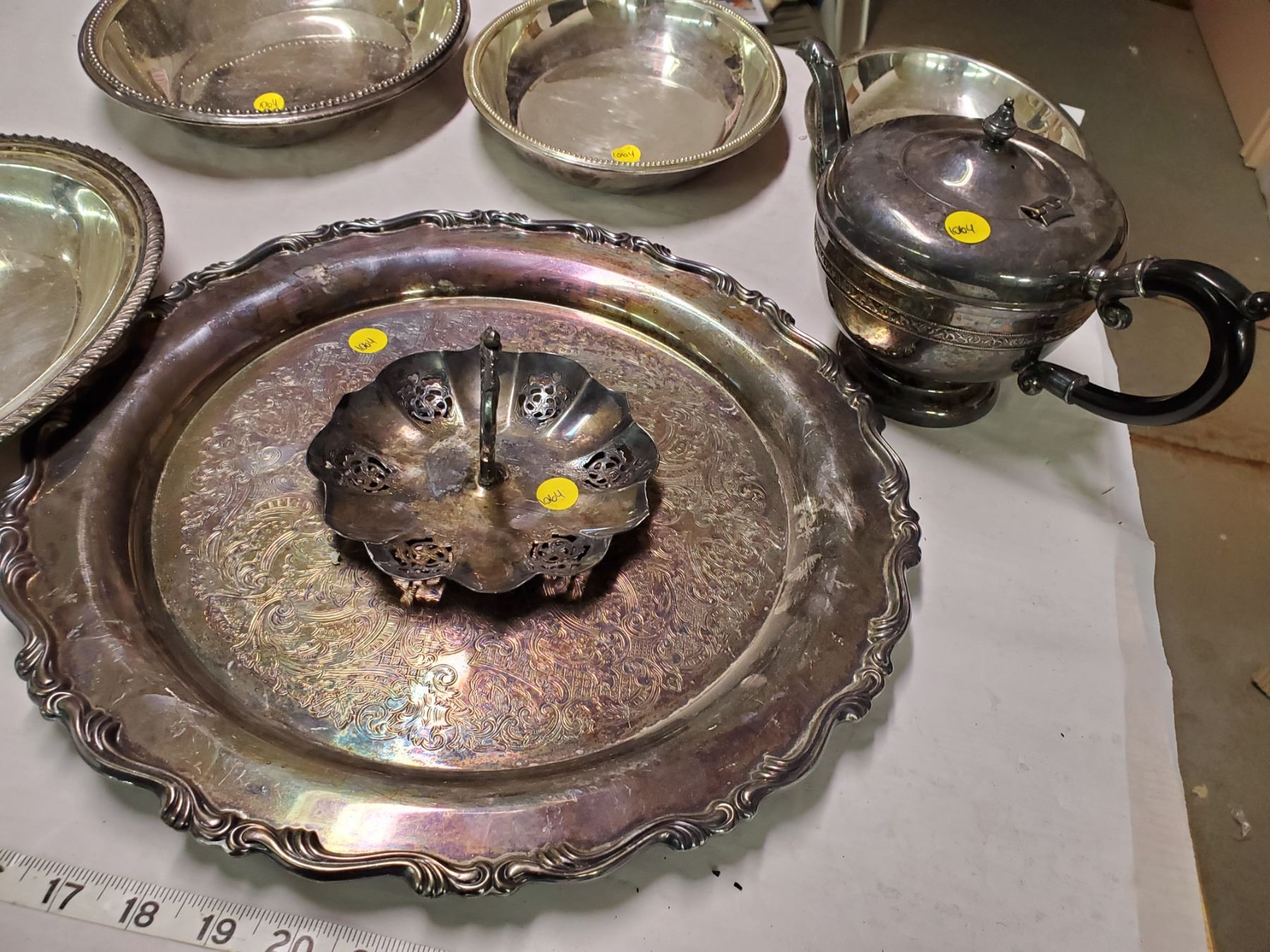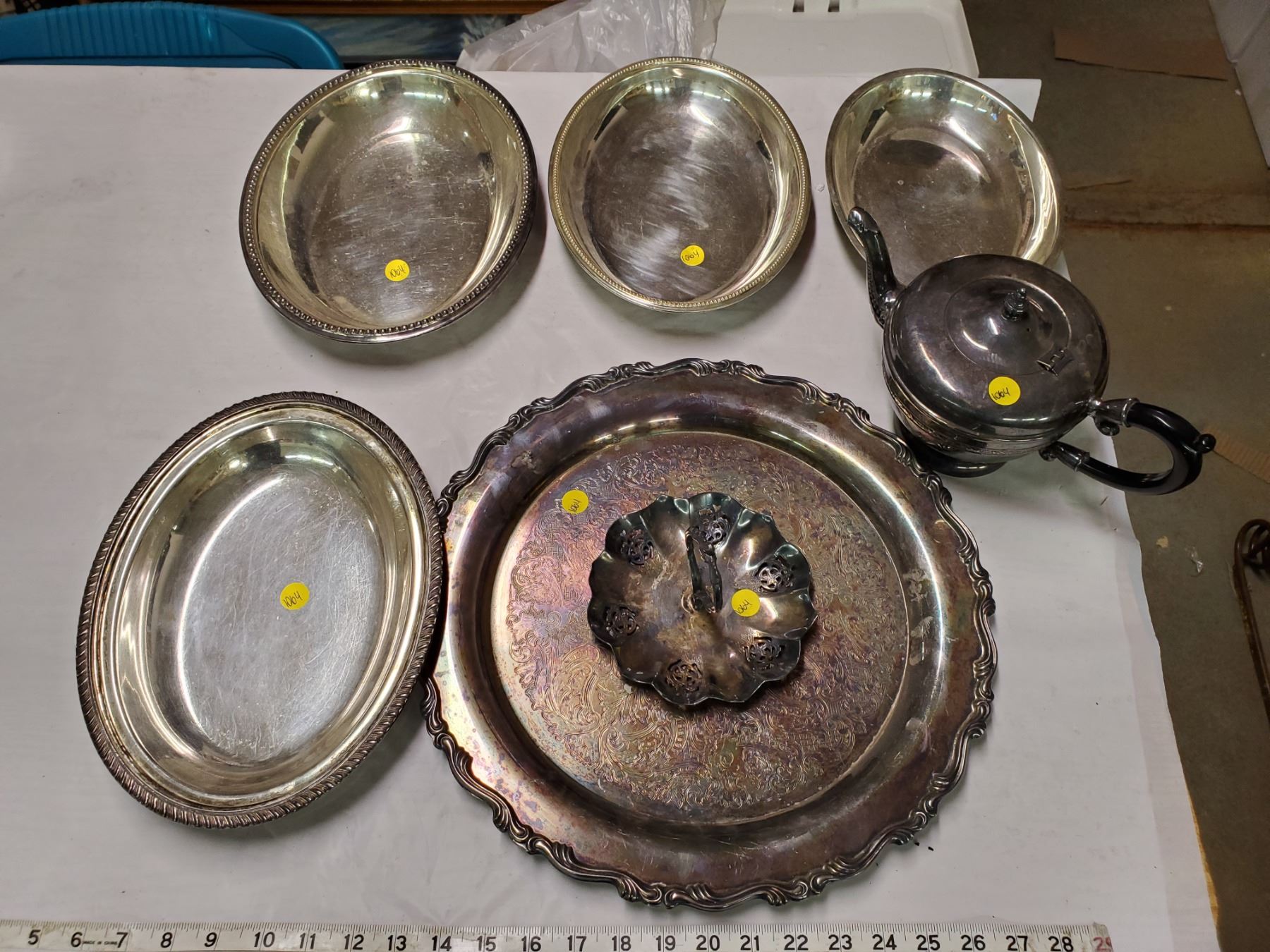 lot of silver plated trays + teapot