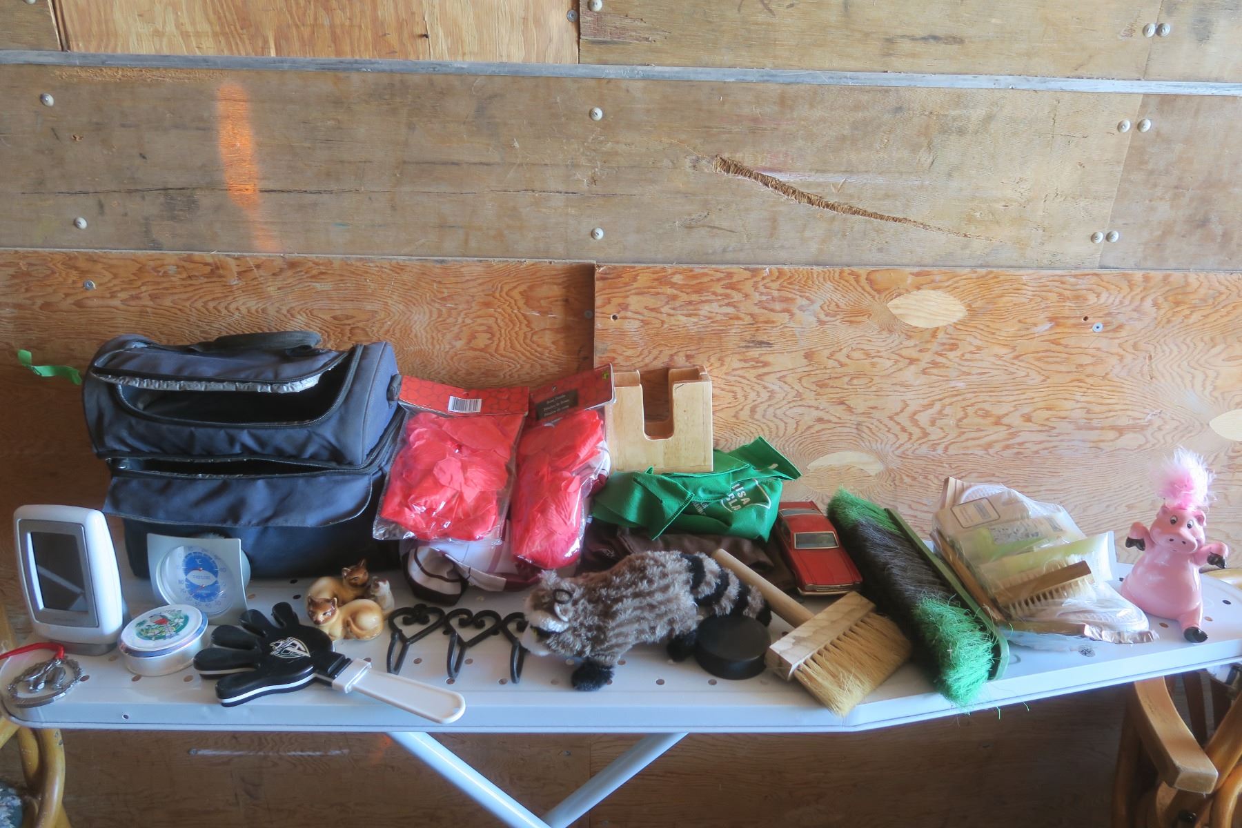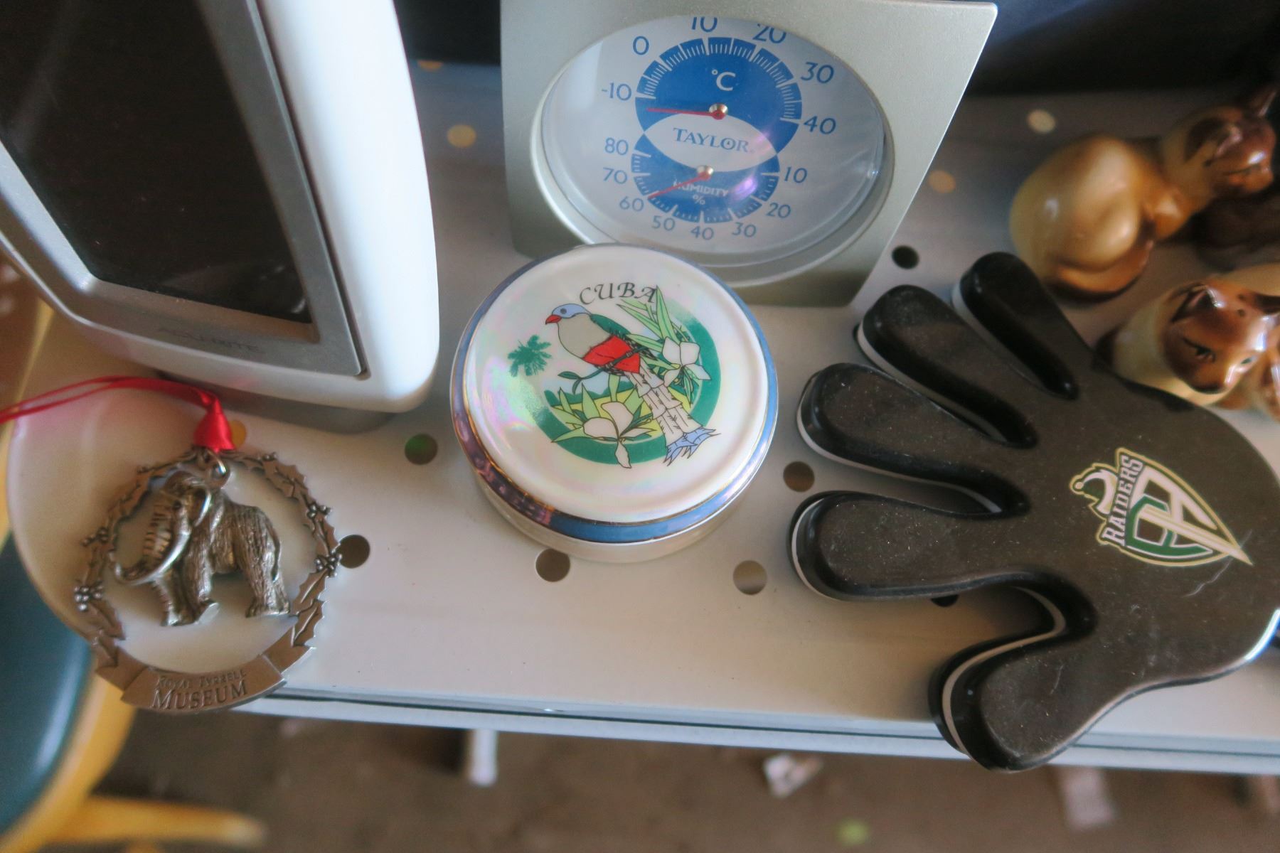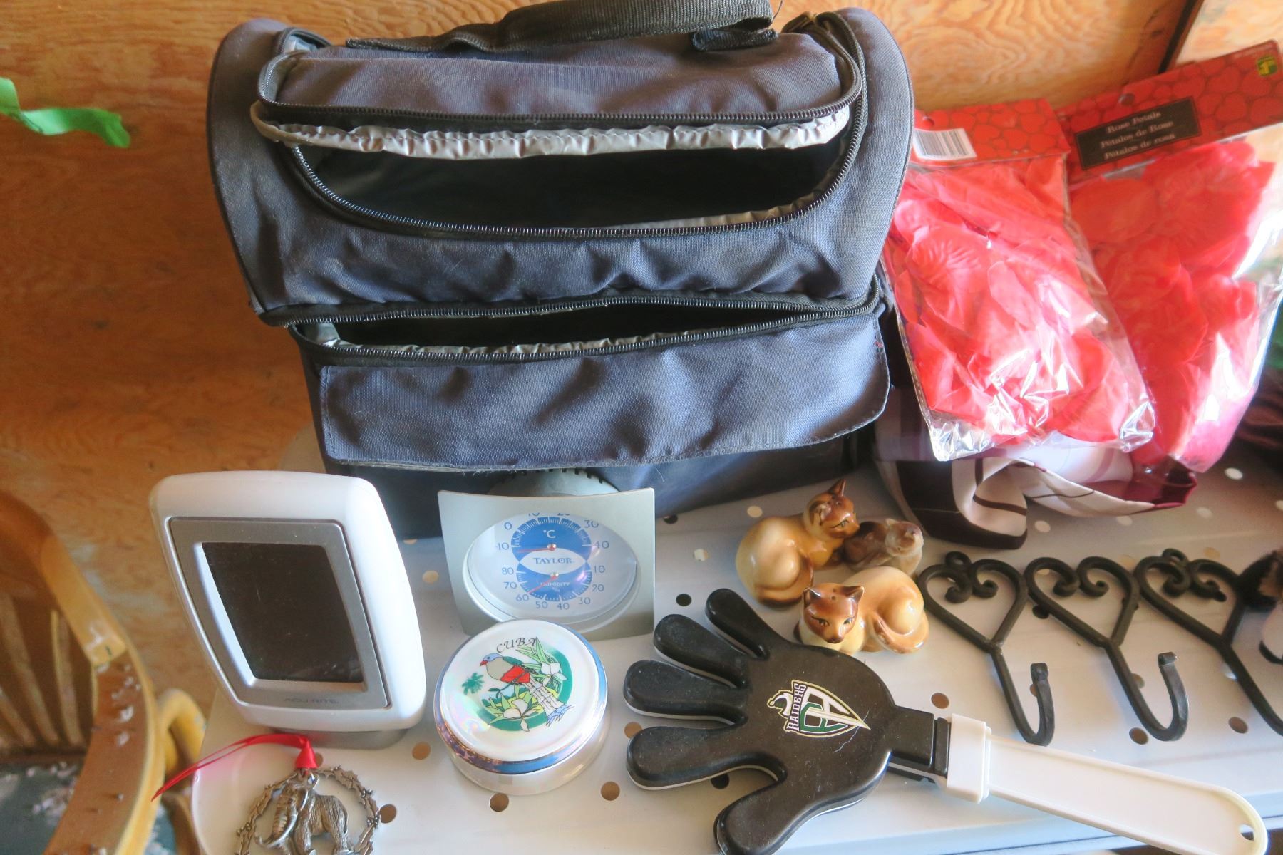 lunch bag, raider clapper, cat salt and pepper shakers, decorations, etc.