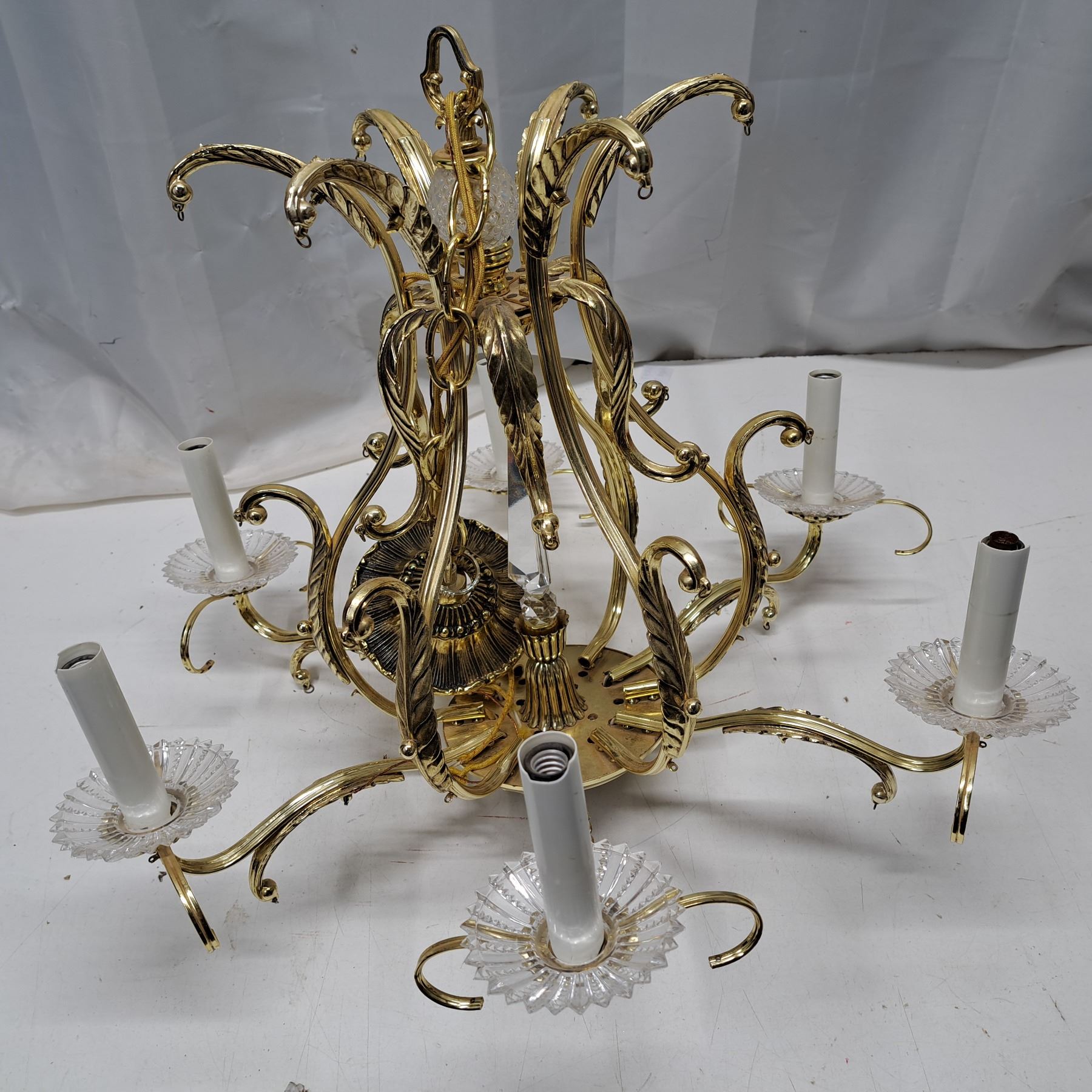 metal and plastic chandelier with candel holders 17" tall