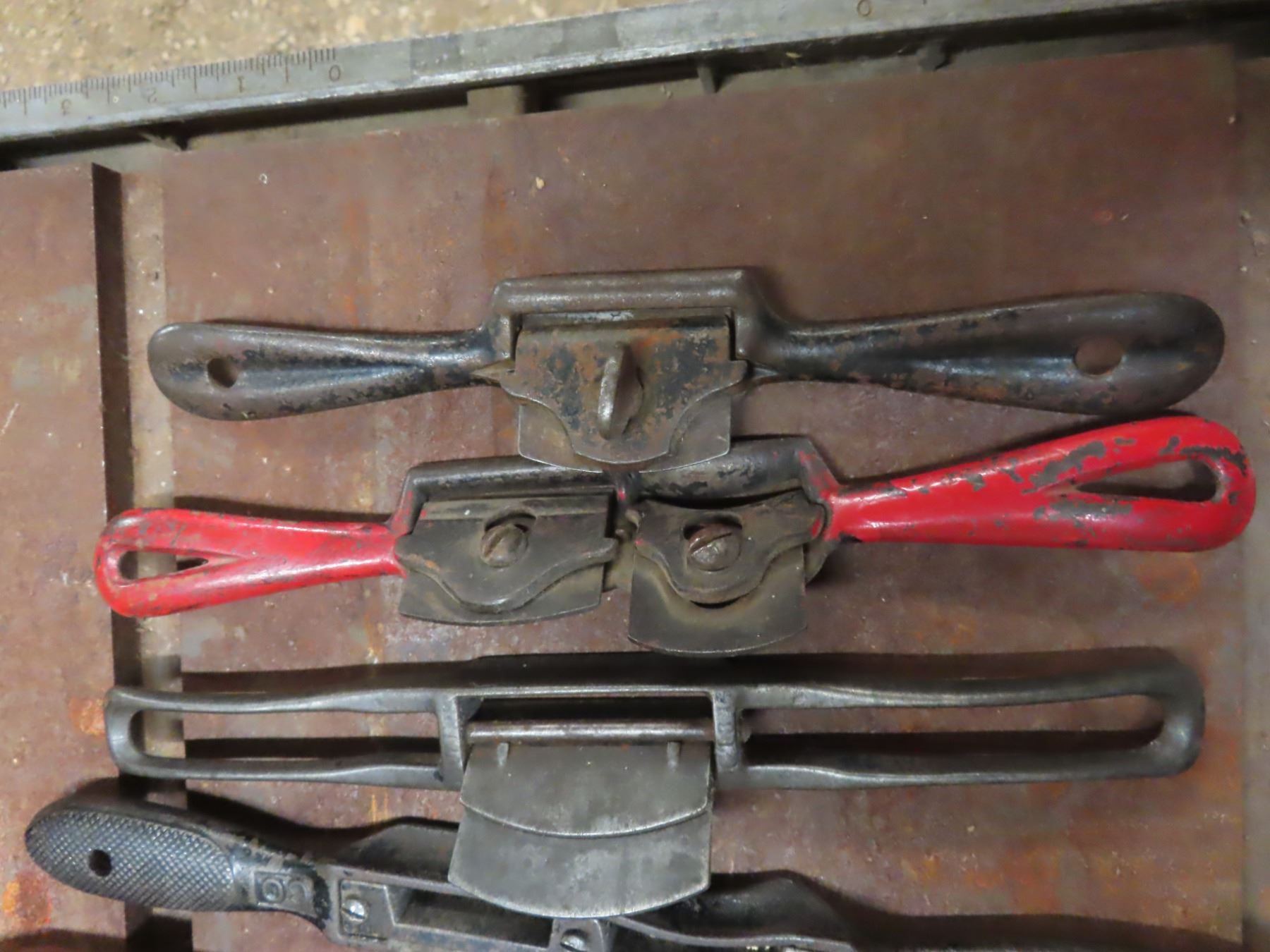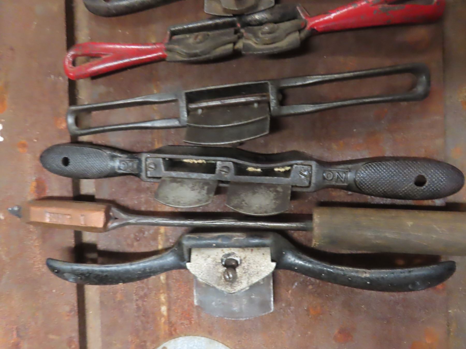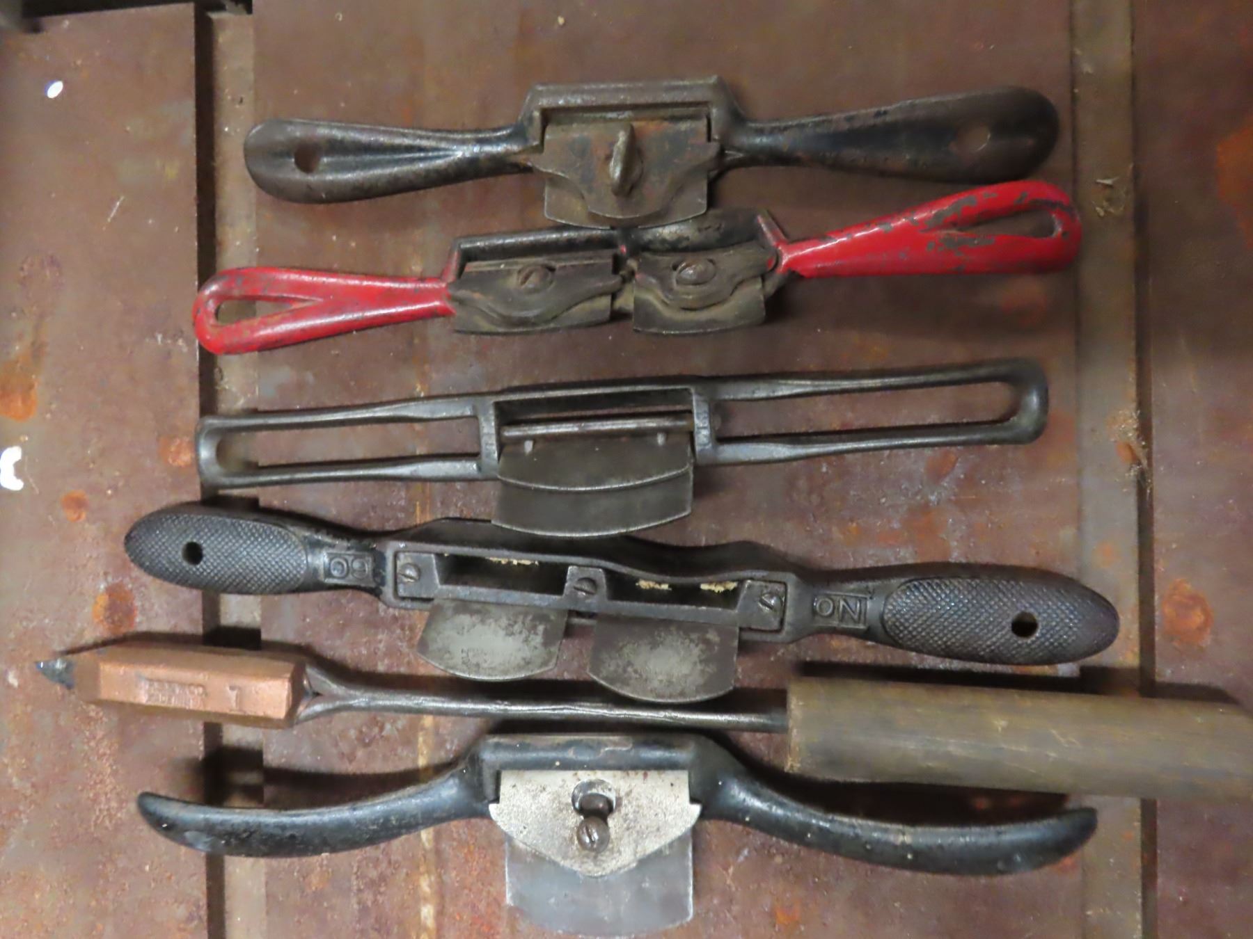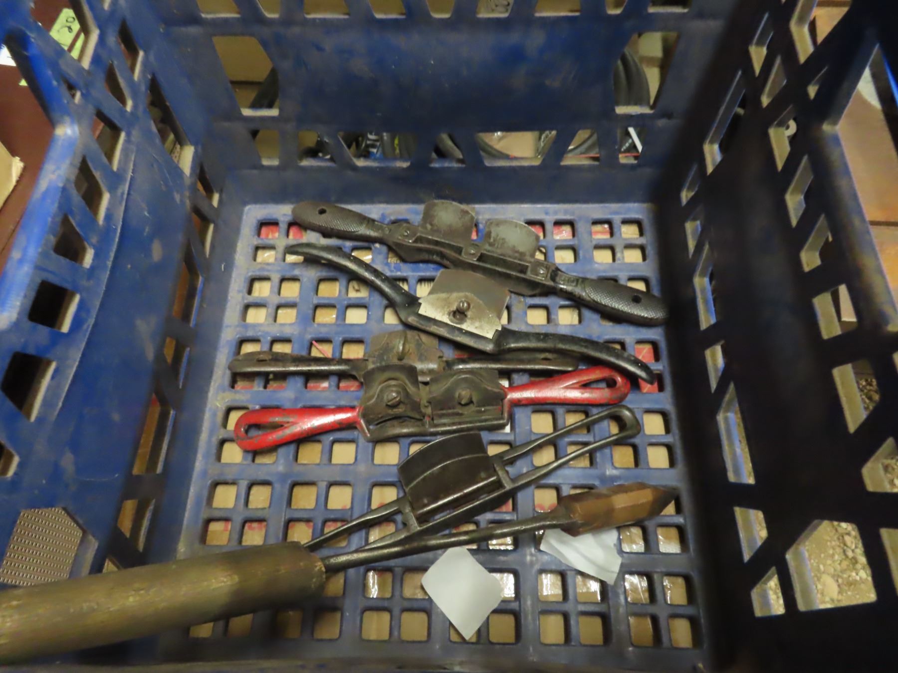 milk crate with antique hand planes
