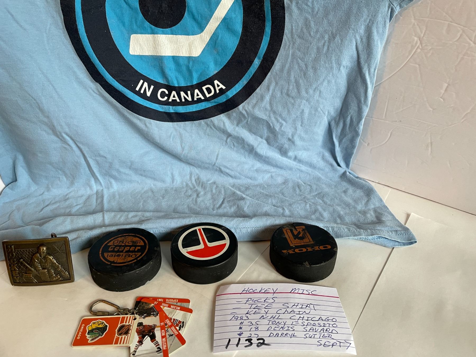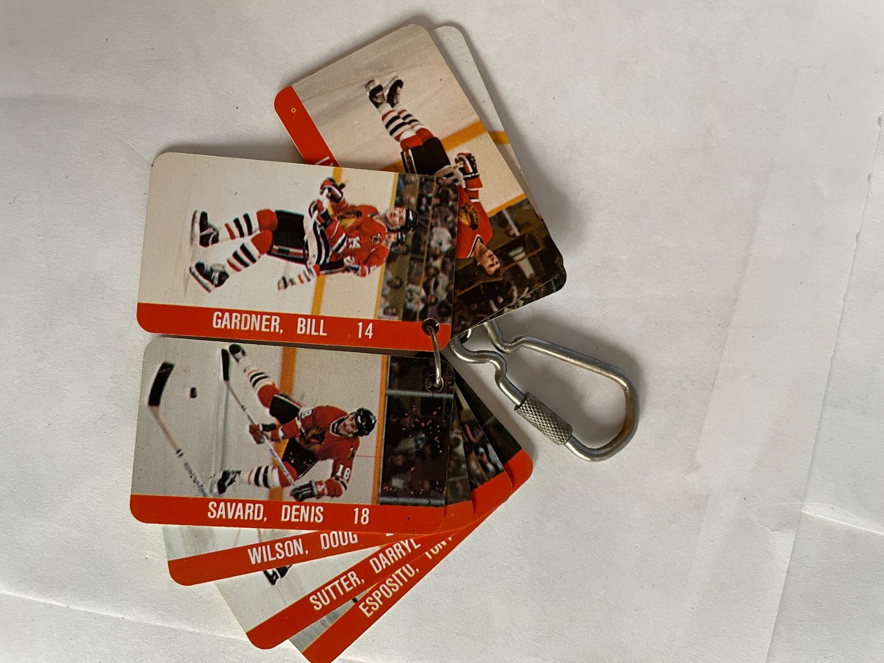 misc hockey - pucks, key chain, 1983 NHL Chicago, #35 Tony Esposito, #18 Denis Savard, #27 Darryl Sutter