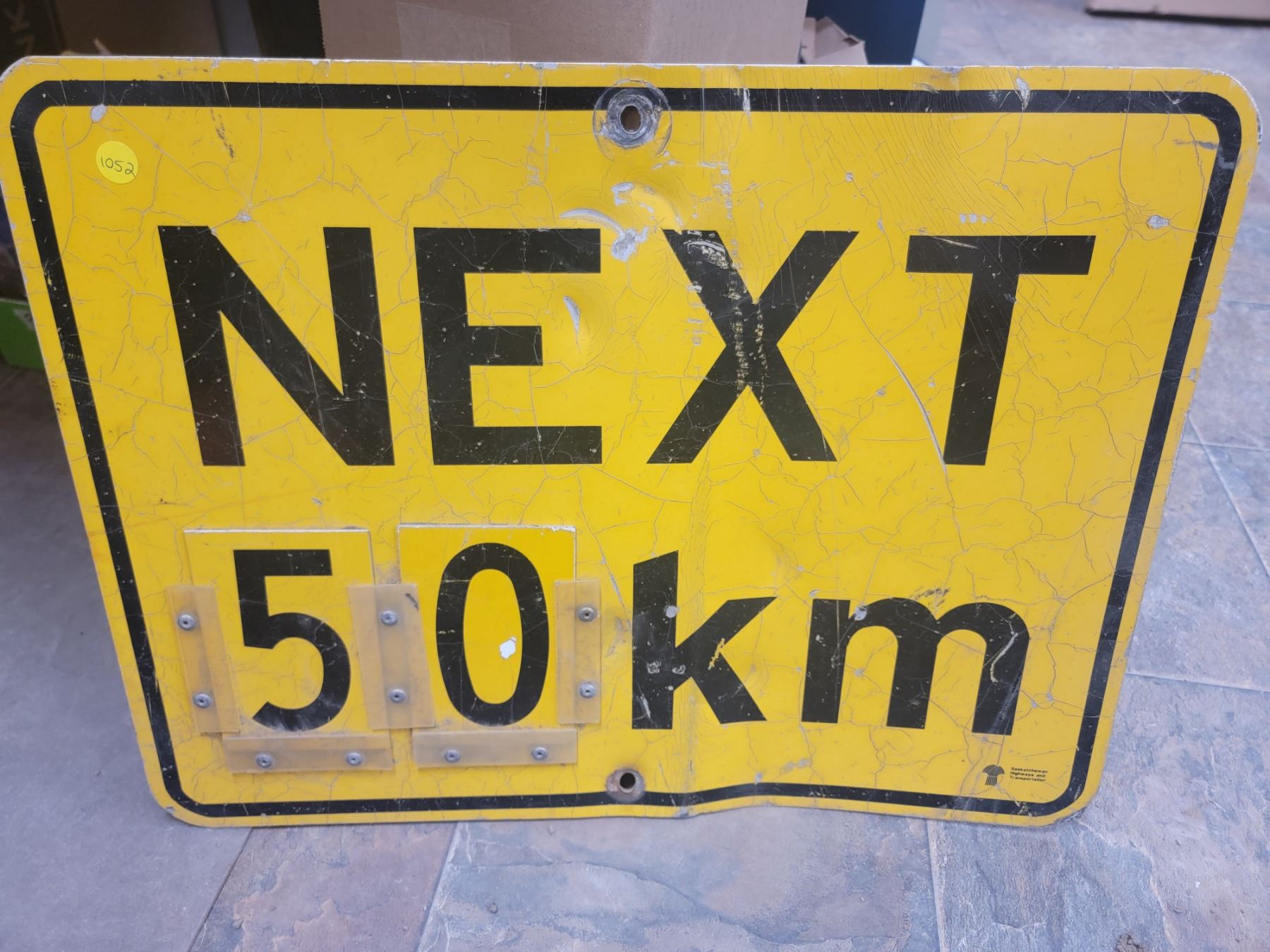next 50 KM highway sign 23.5x17.5"