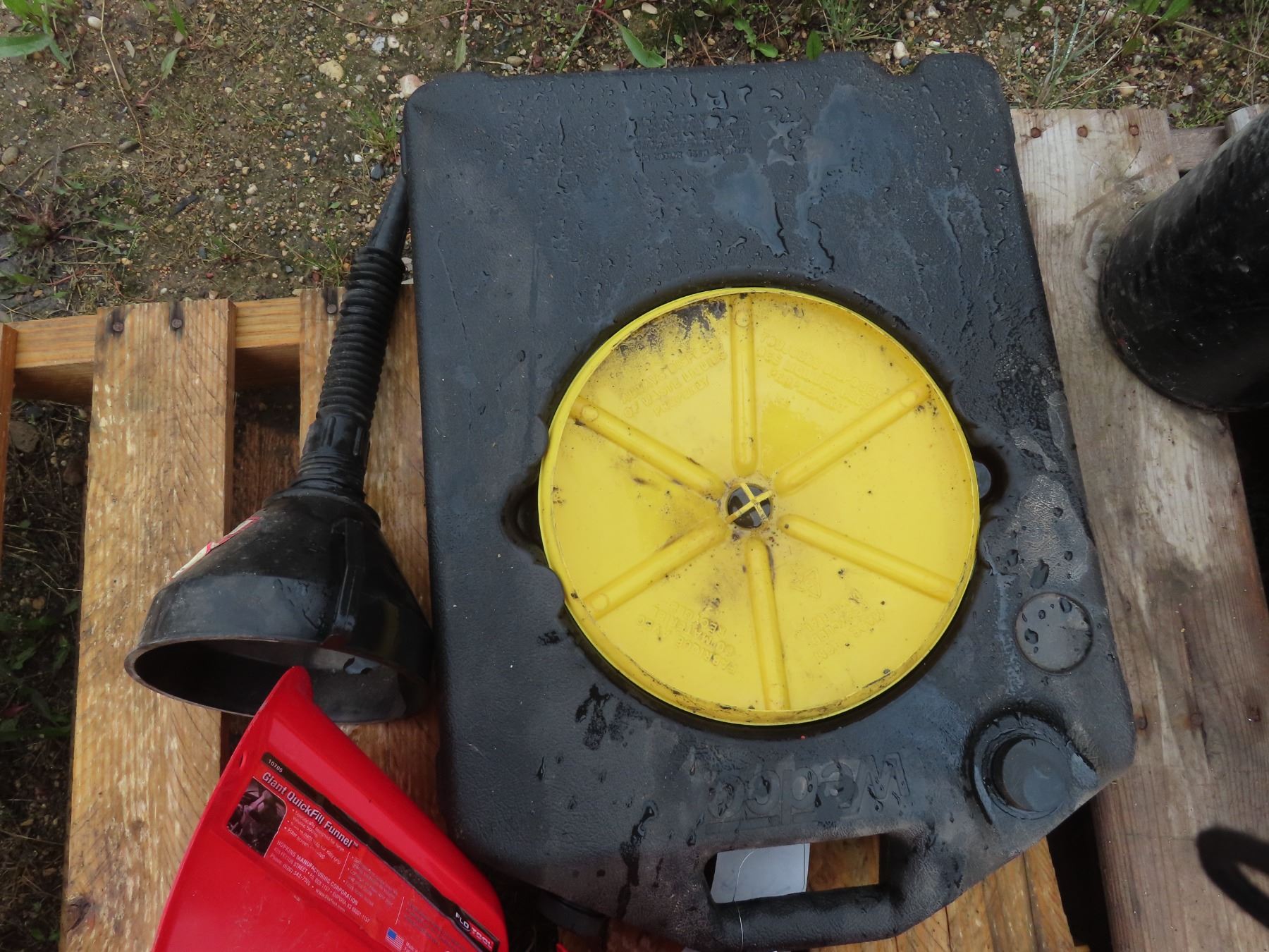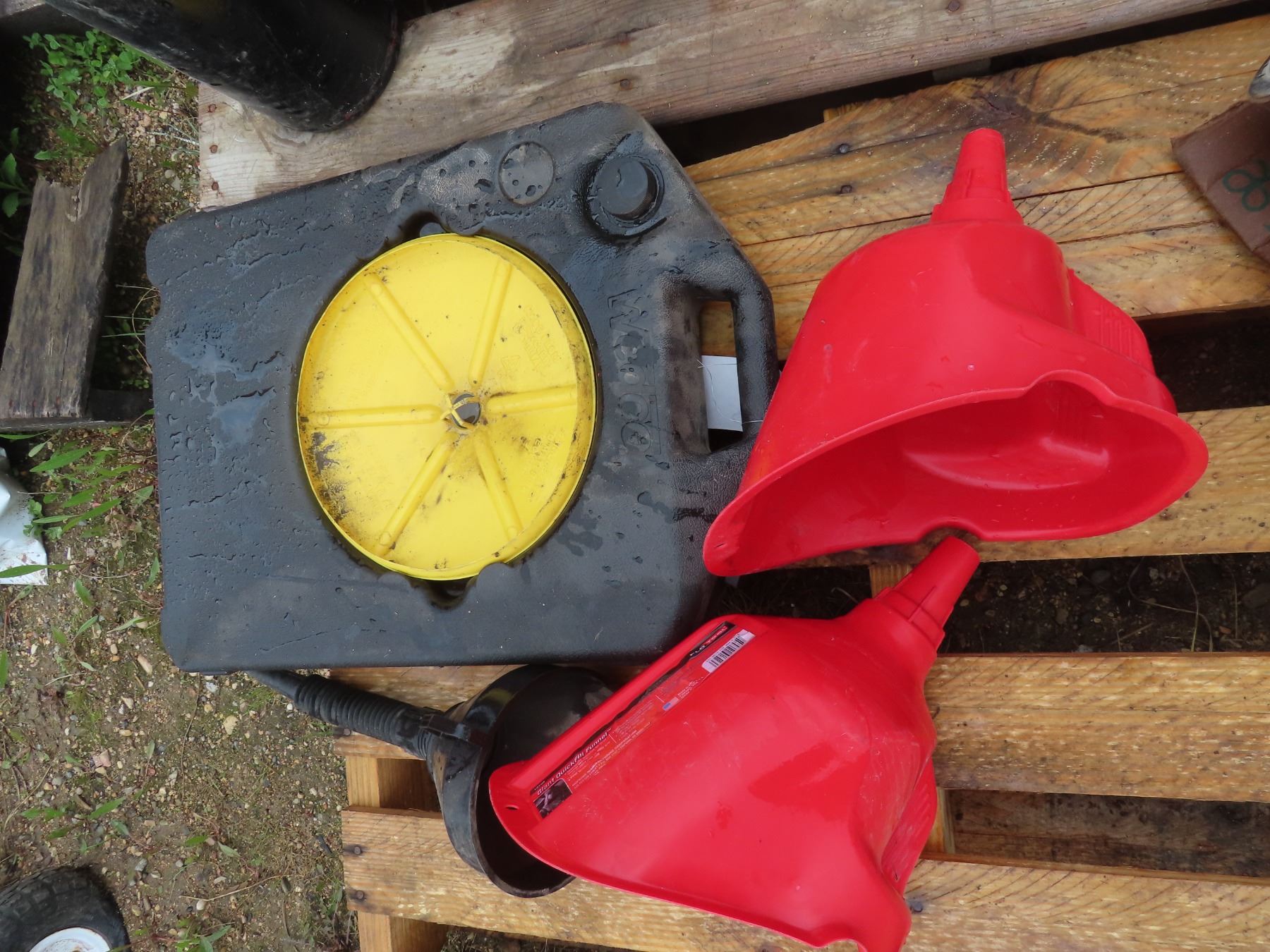oil drain pan with 3 funnels