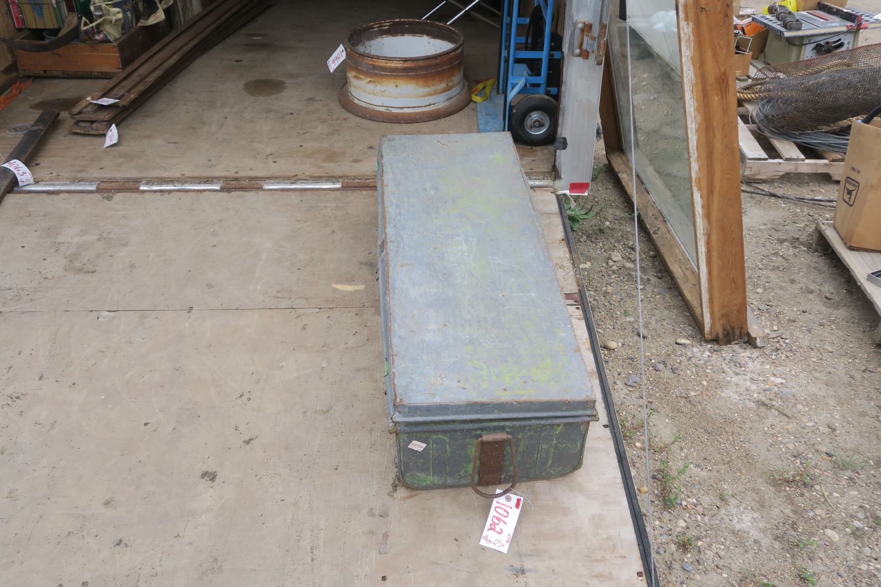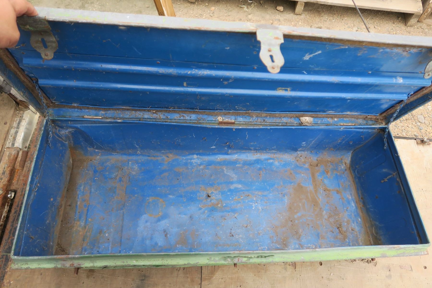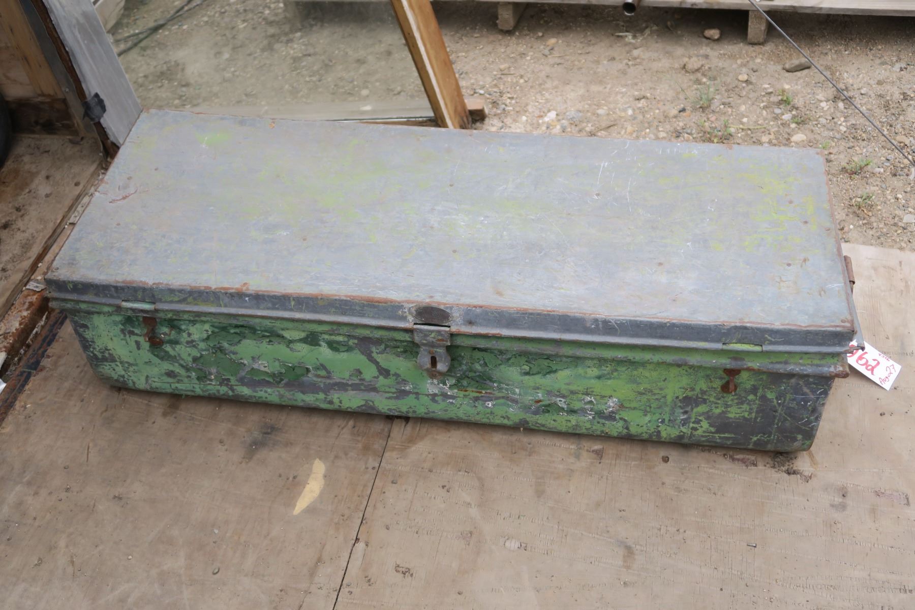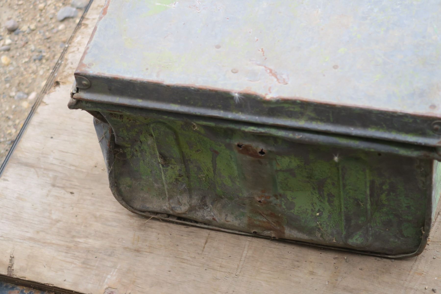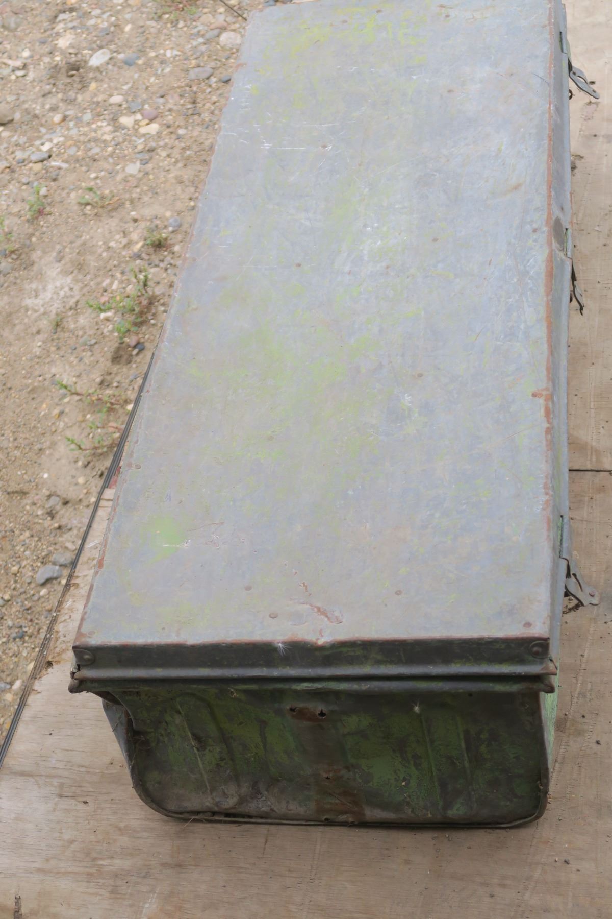 old green metal tool box, well used.