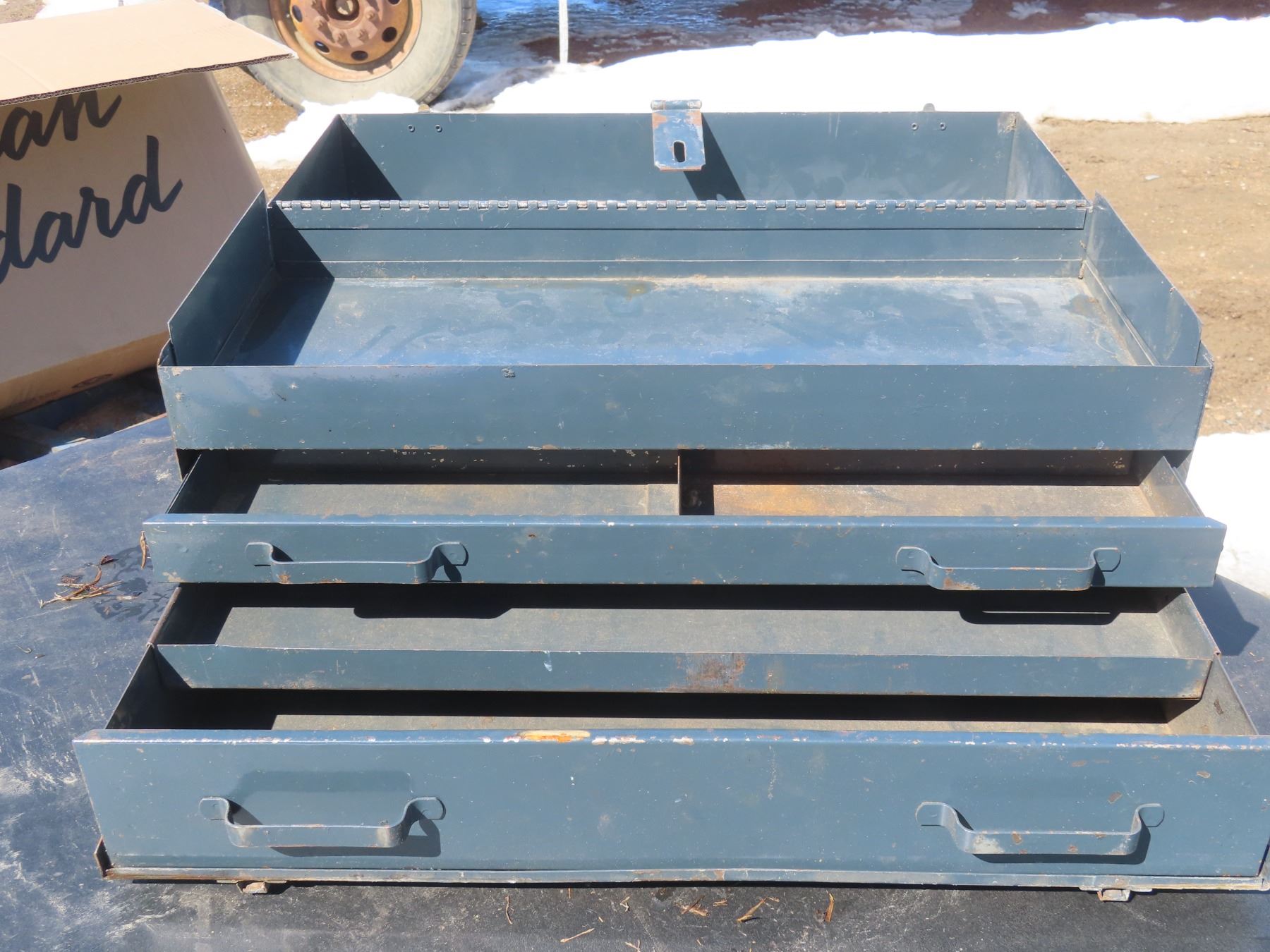 older metal tool box good shape