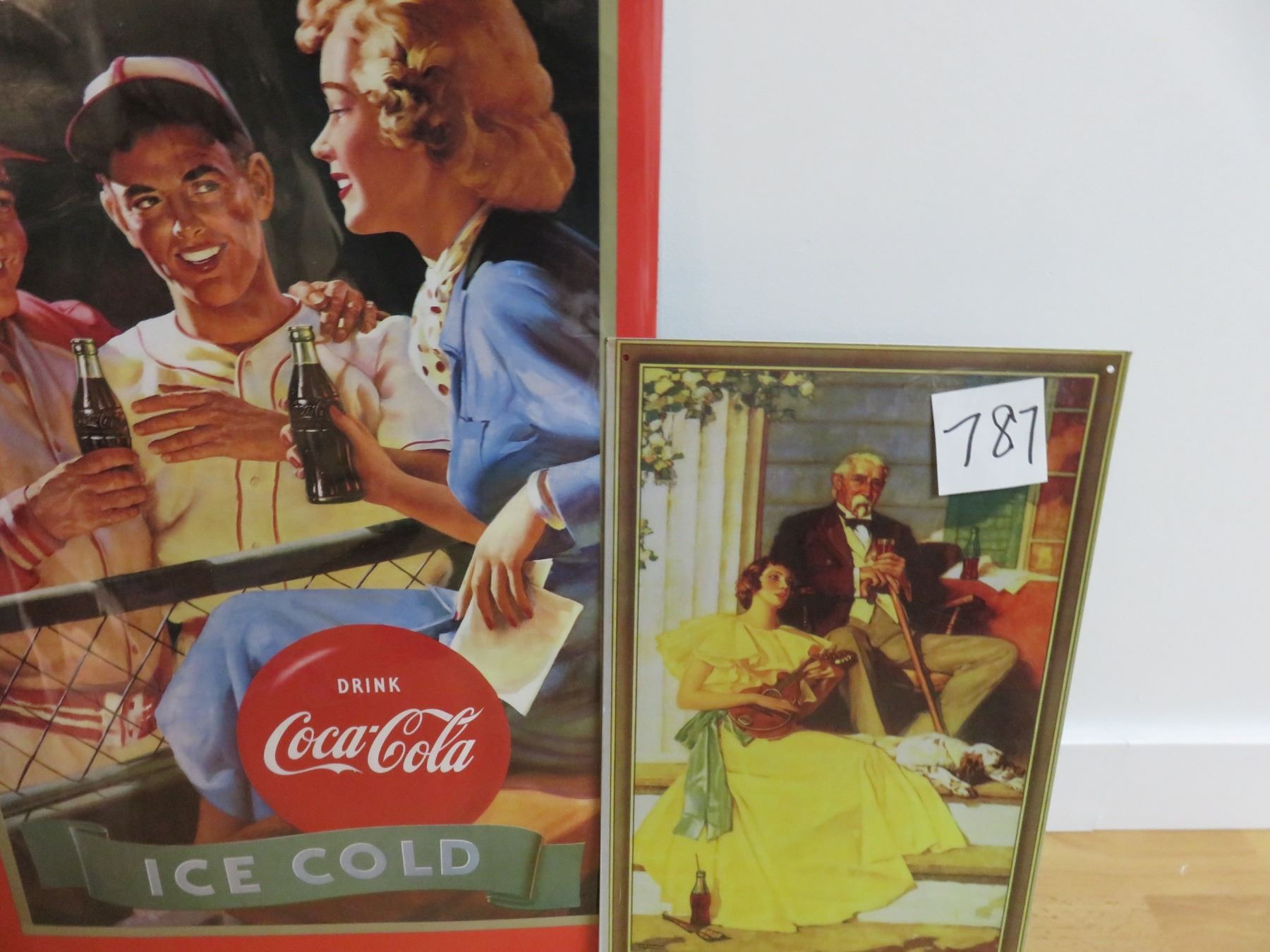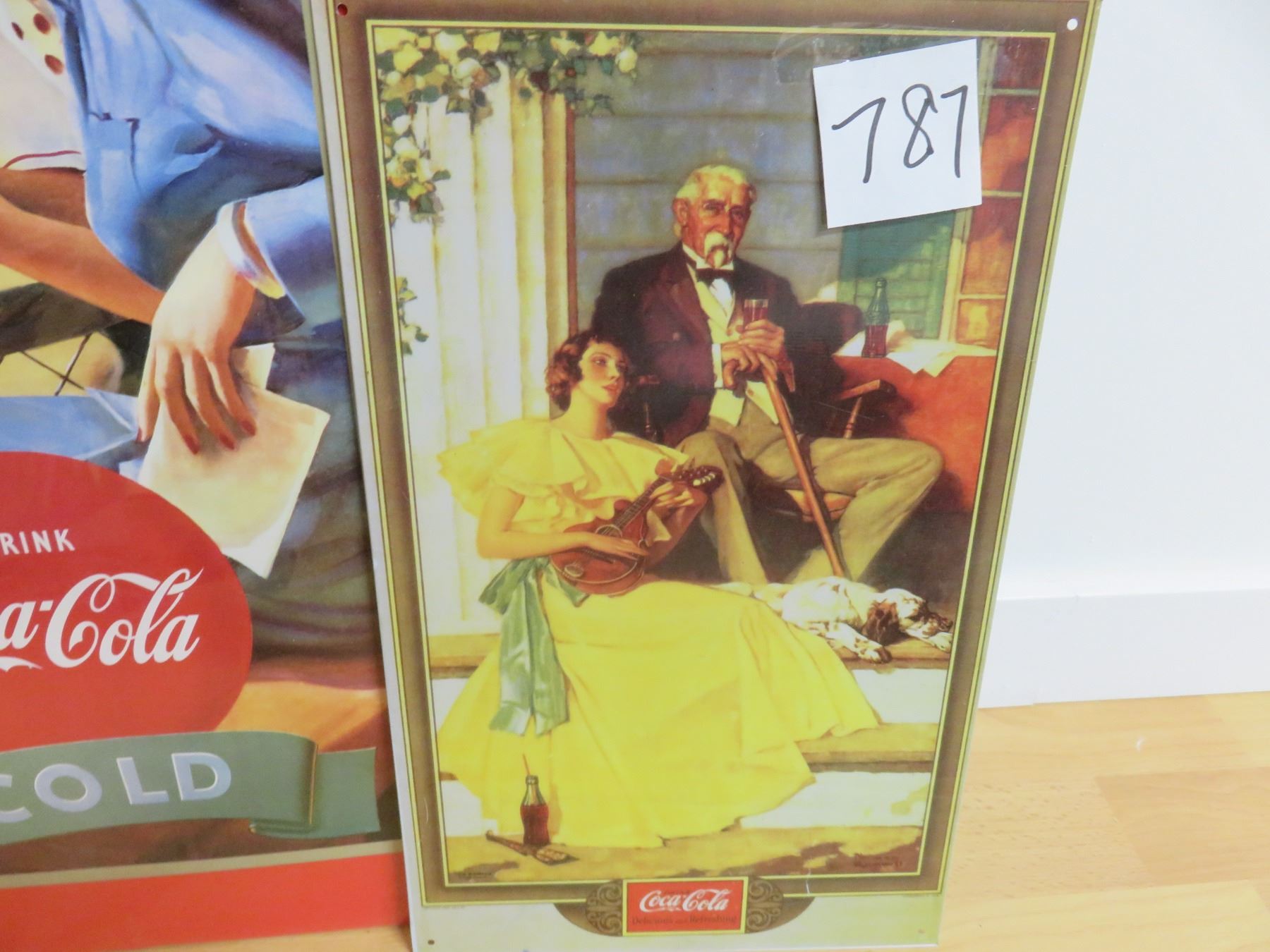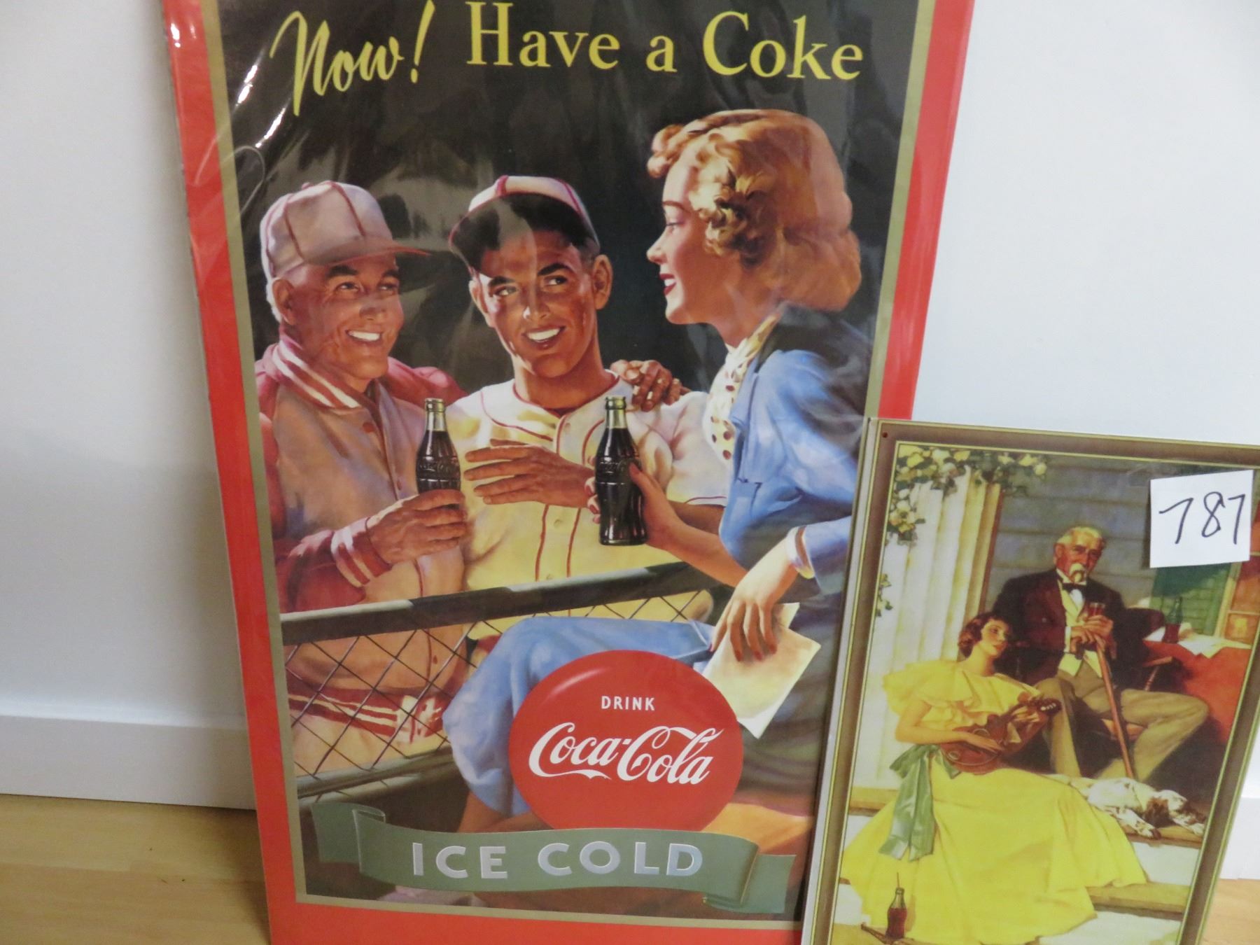 one tin, 9" X 16" Coke picture, 15" X 26" paper Coke poster