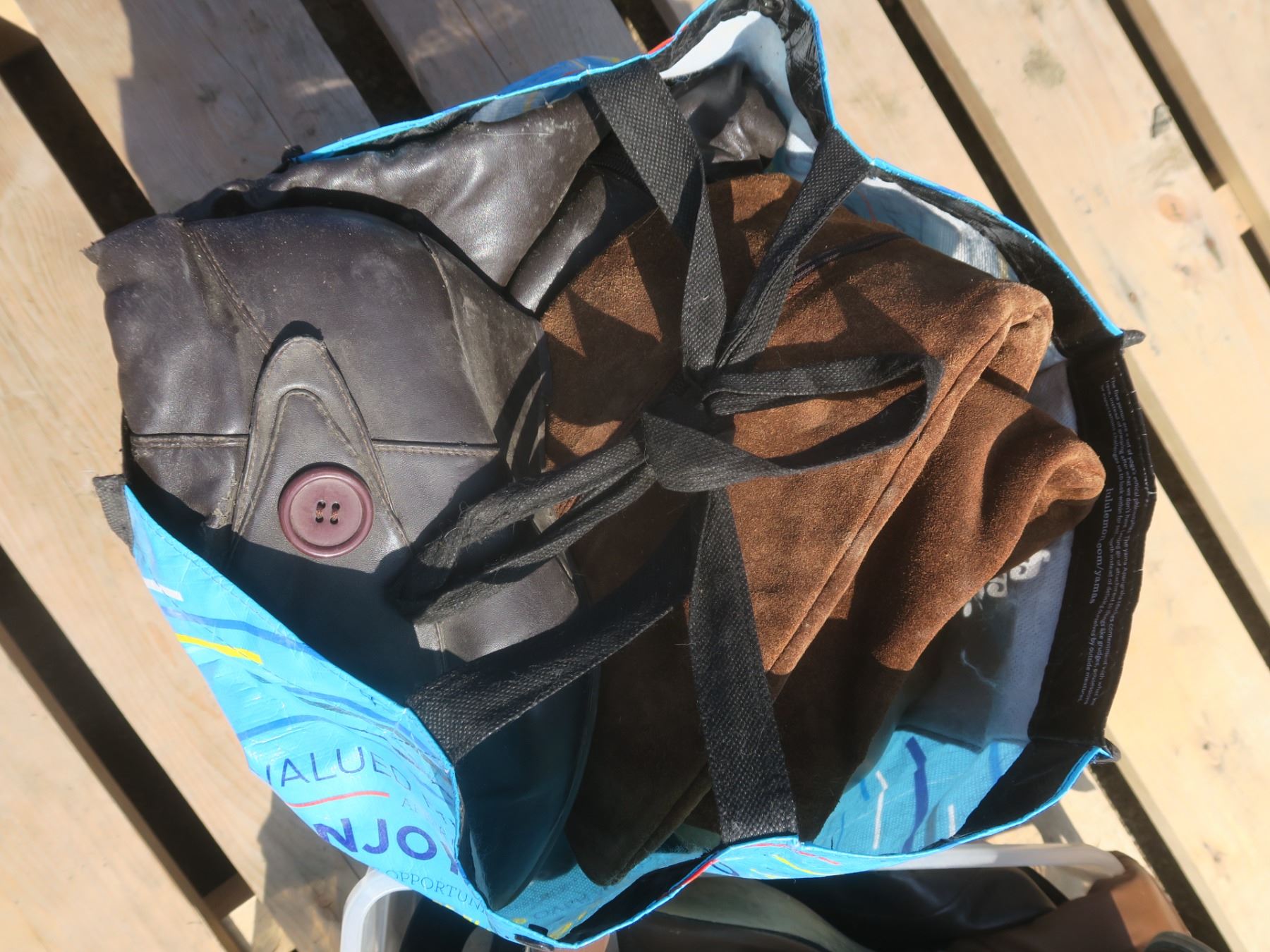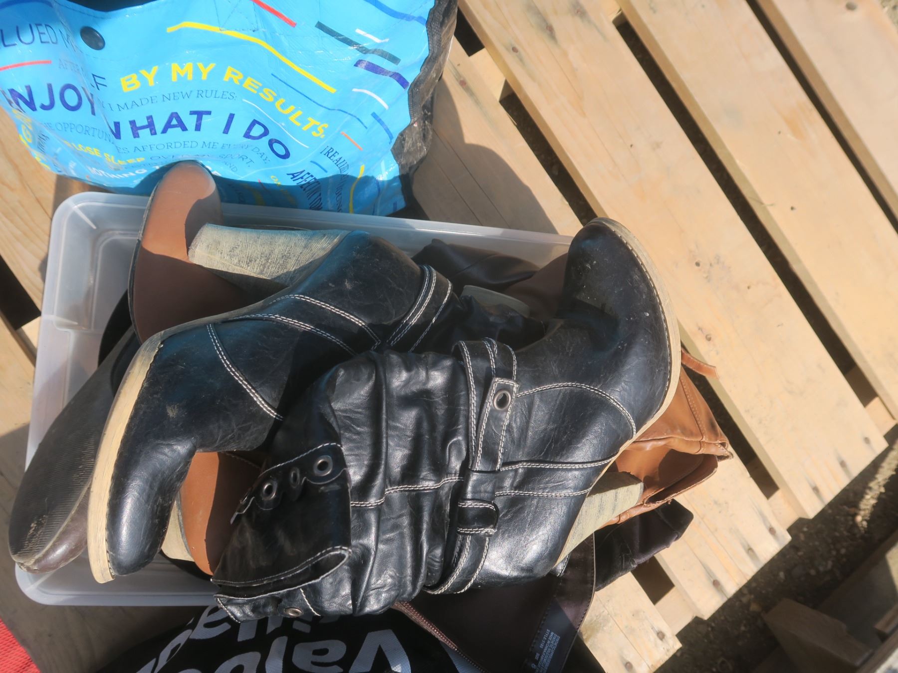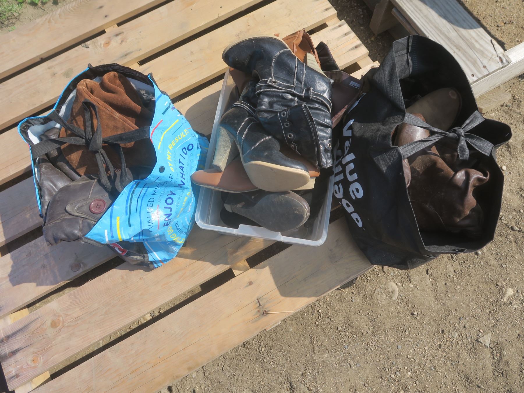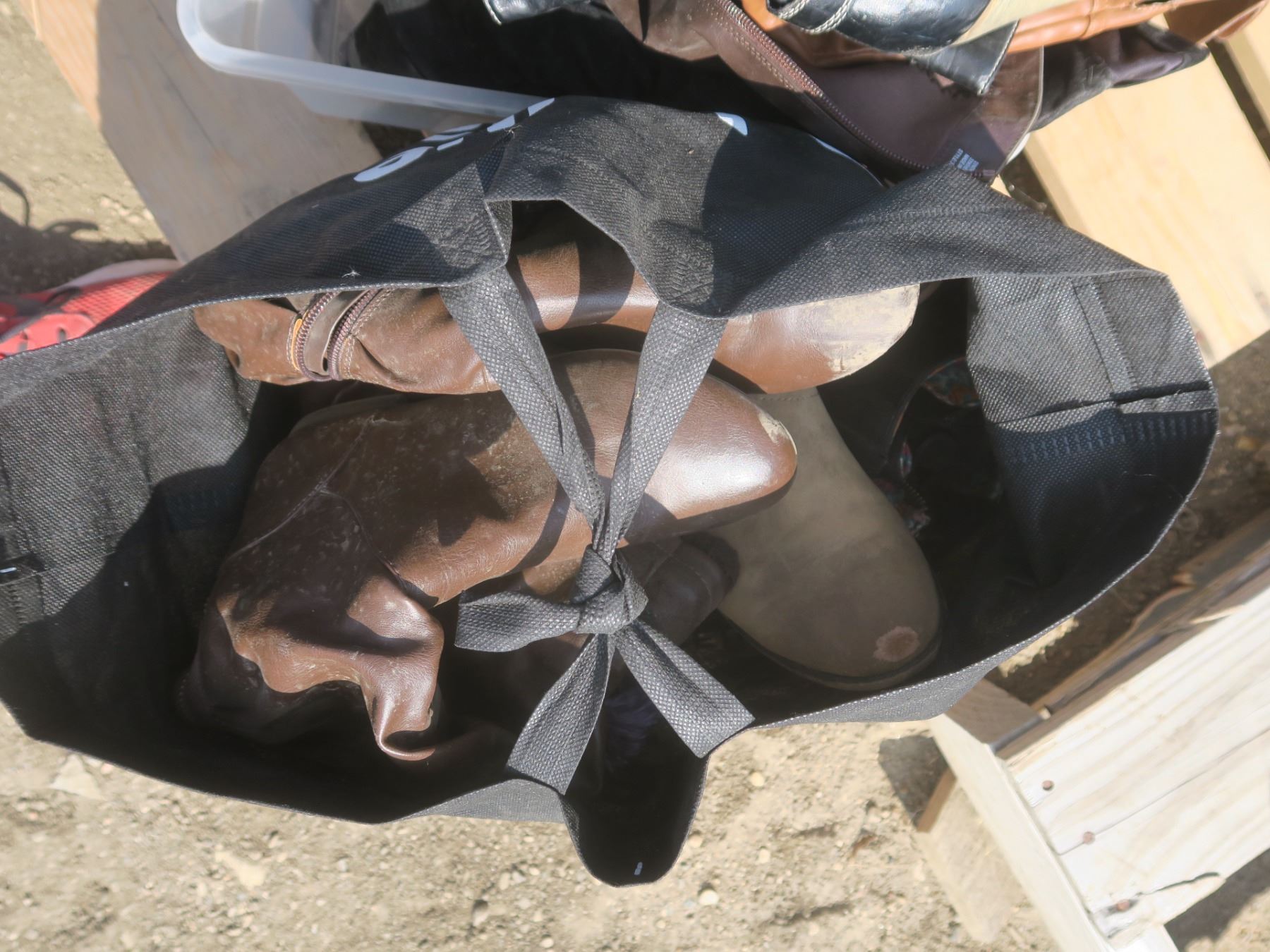 one tote and two bags of womens shoes