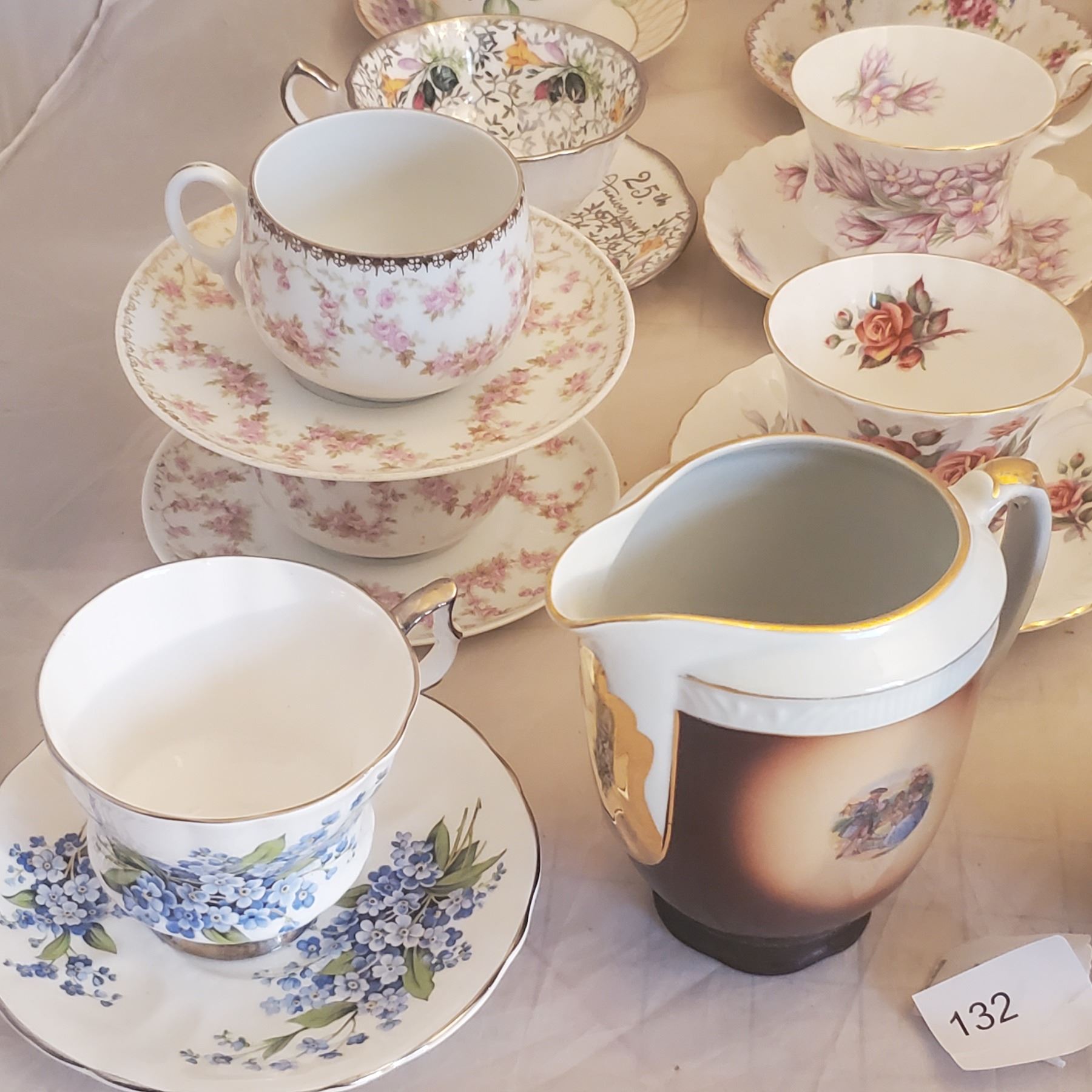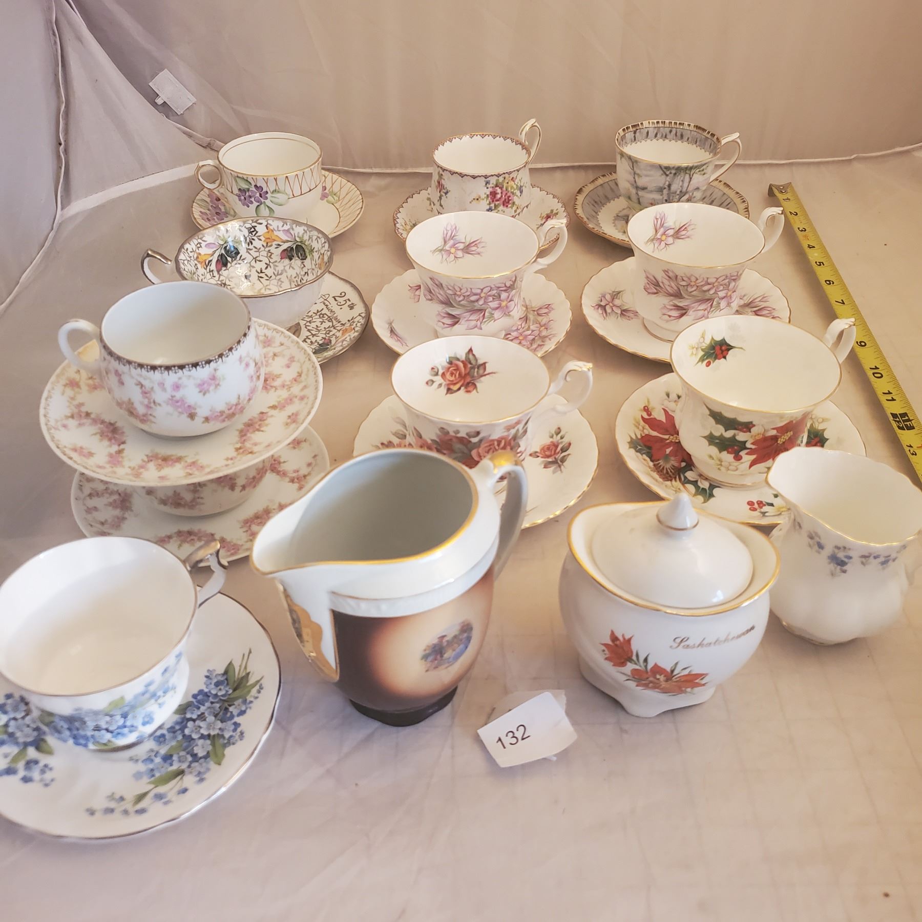 over dozen Royal Albert + other fine china pieces- Silver Birch, Petit Point, Memory Lane, Centennial Rose, 2 Prairie Crocus, Poinsetta, cup saucer, creamer, plus