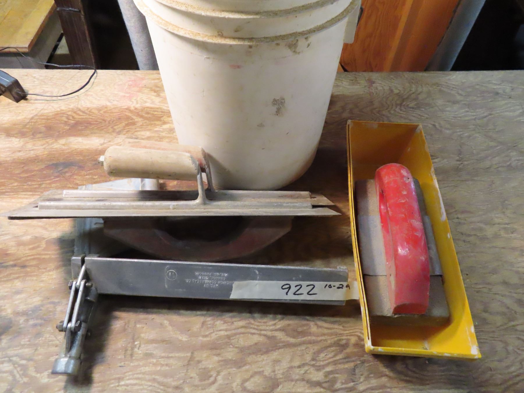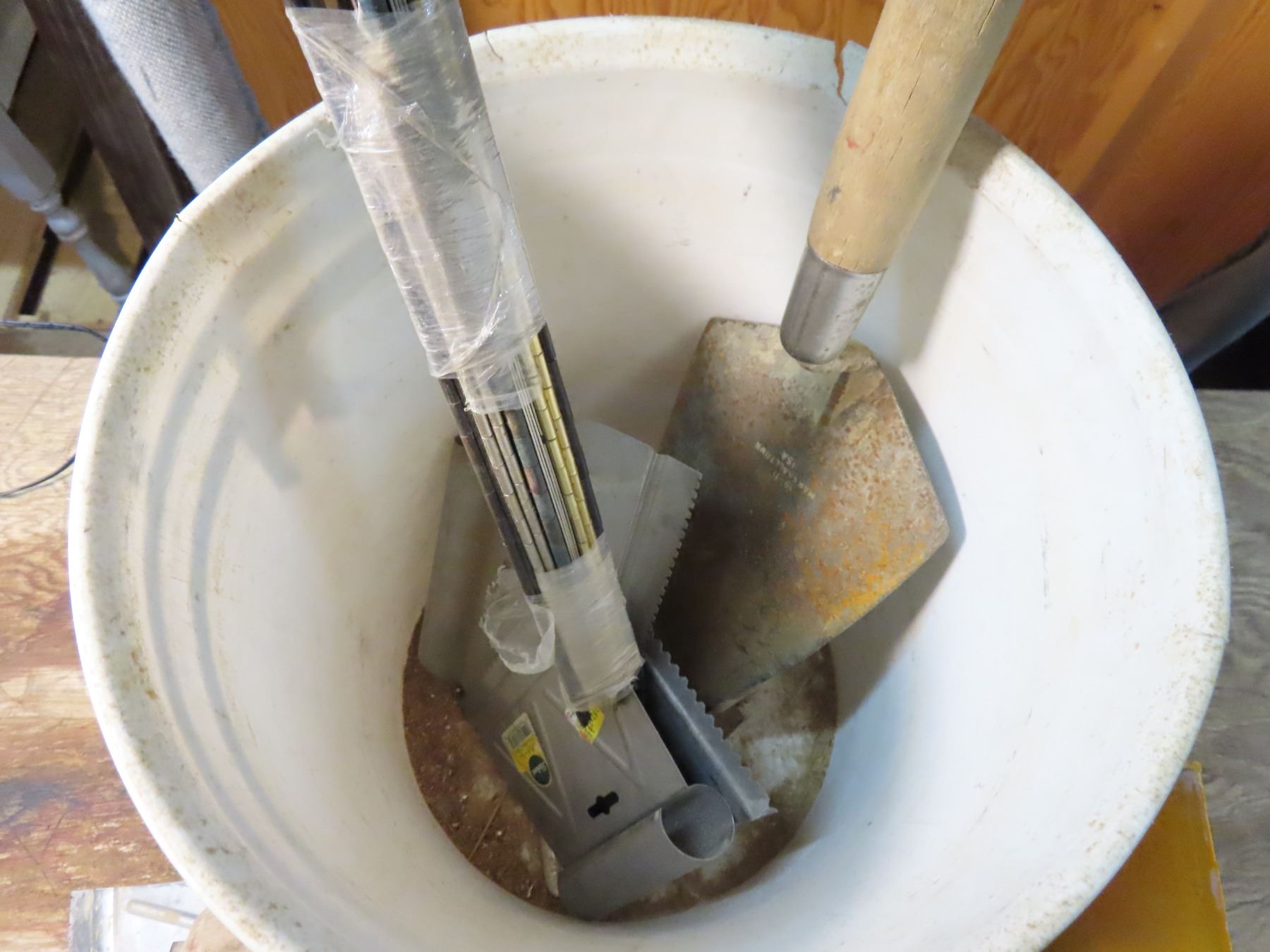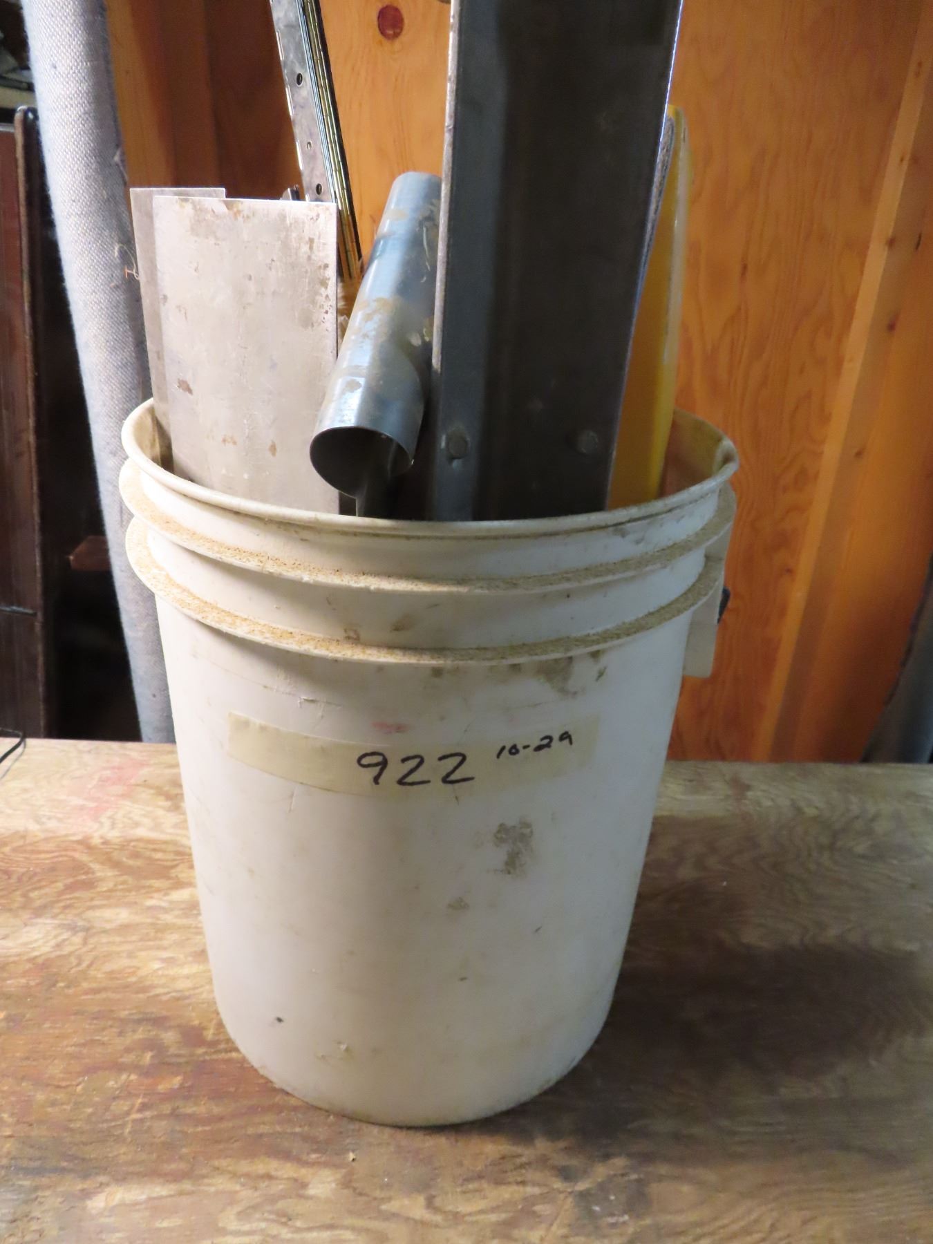 pail full of drywall tools