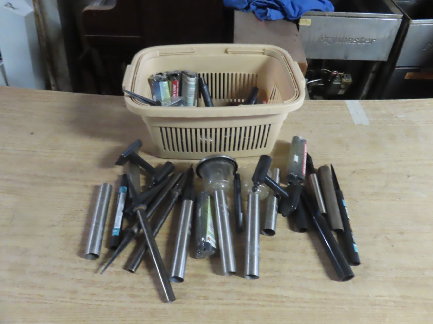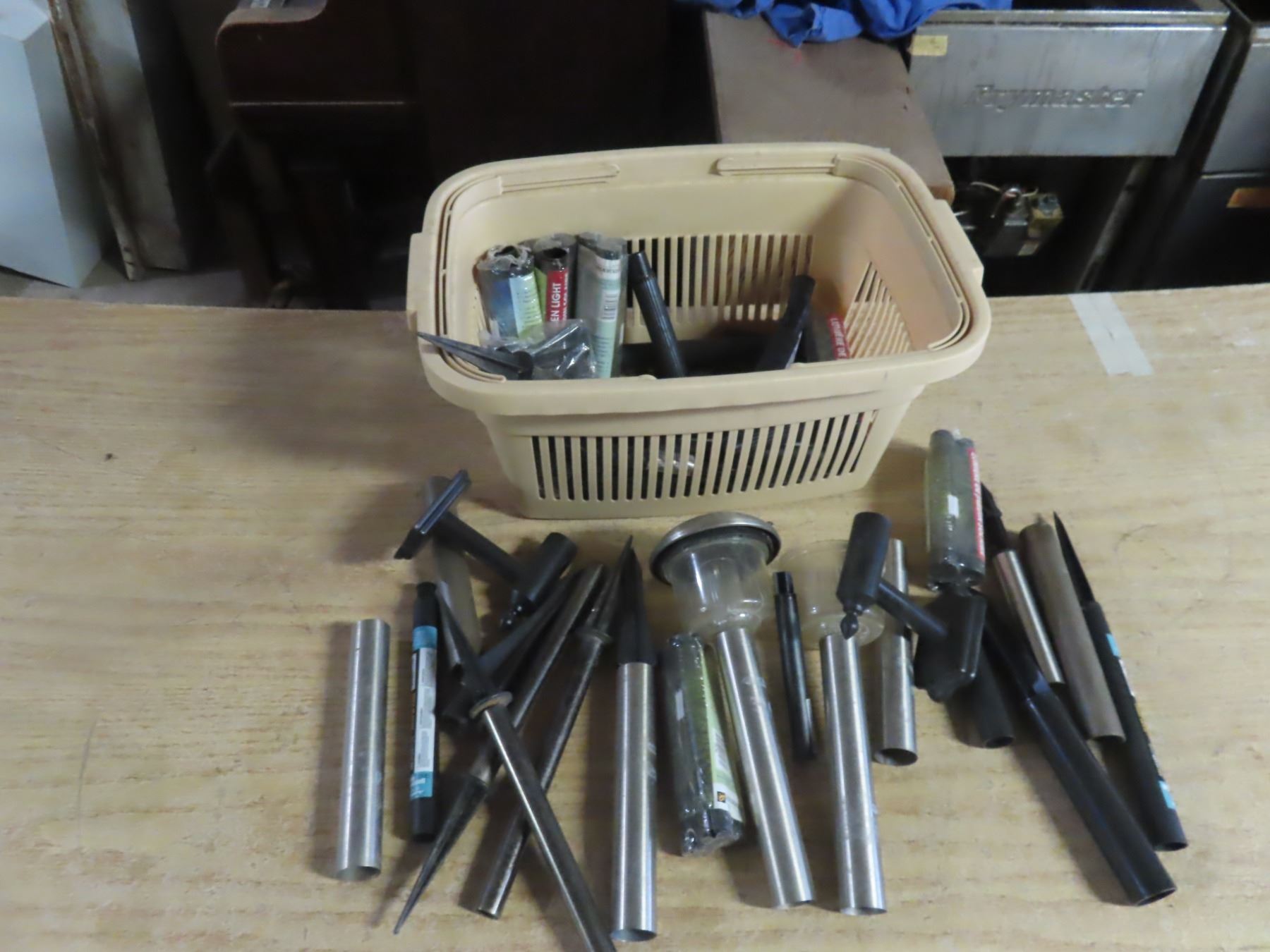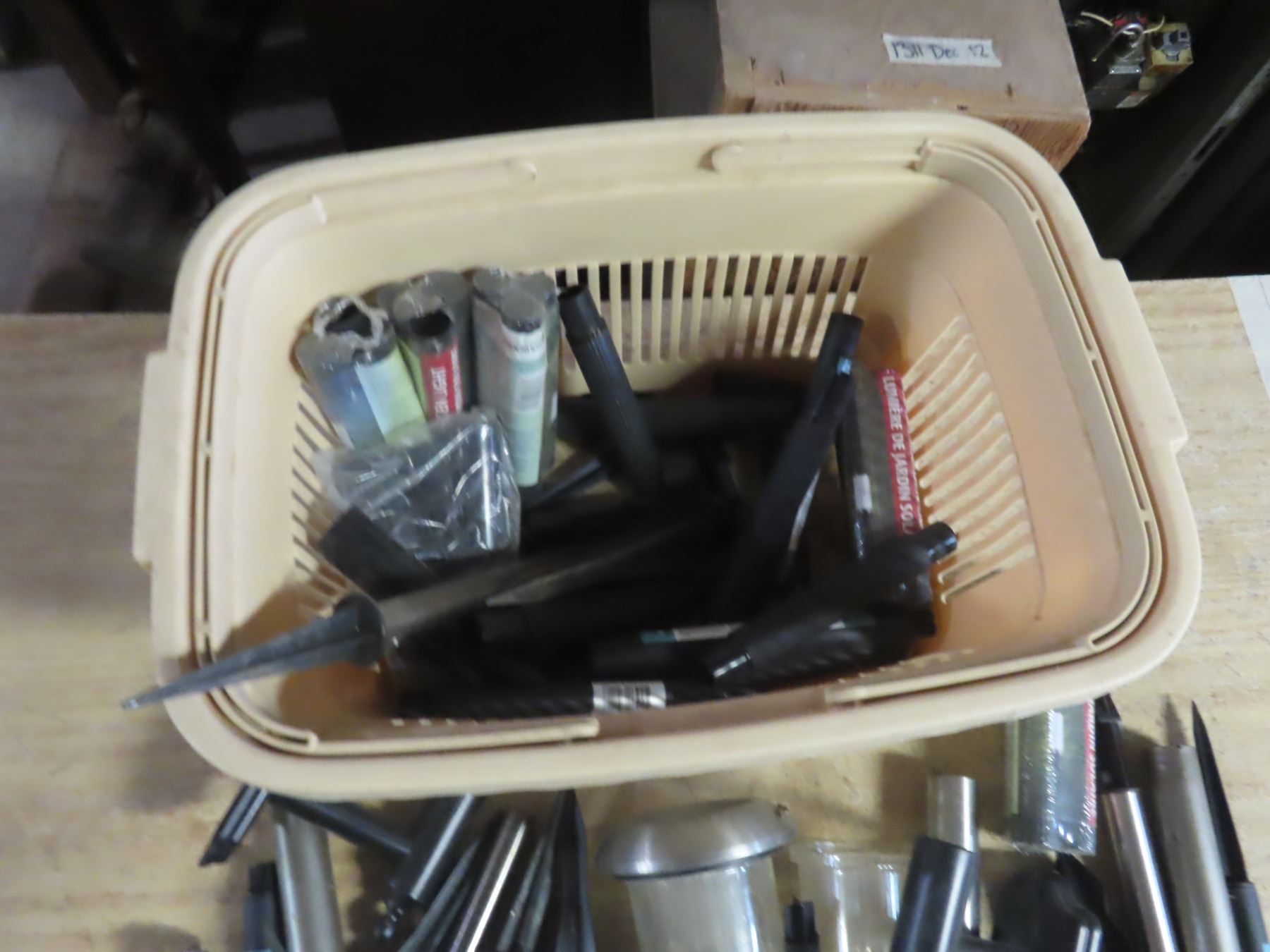 pail of solar light pegs