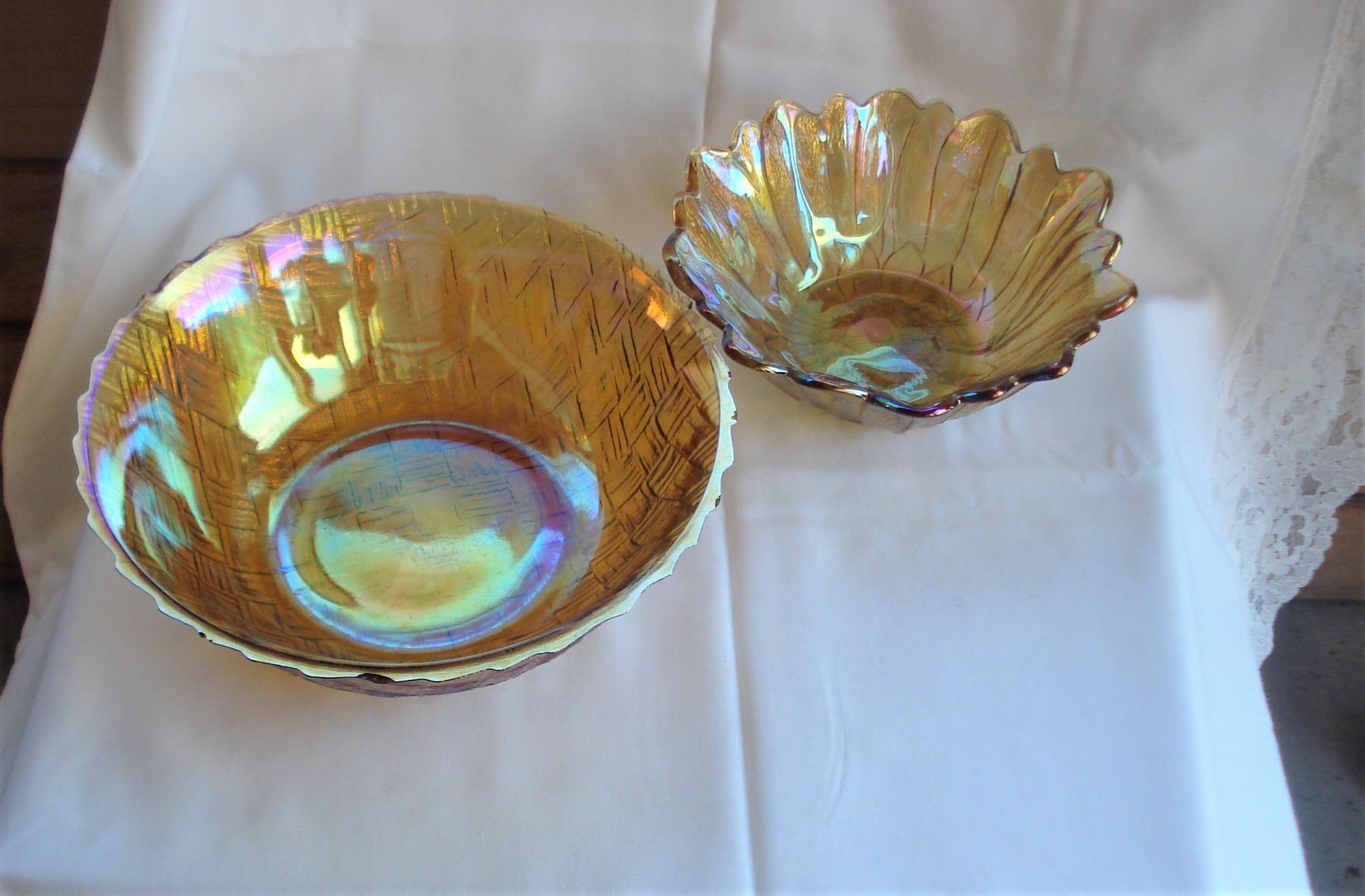 pair Carnival bowls 1970,s large bowl has small rim chip