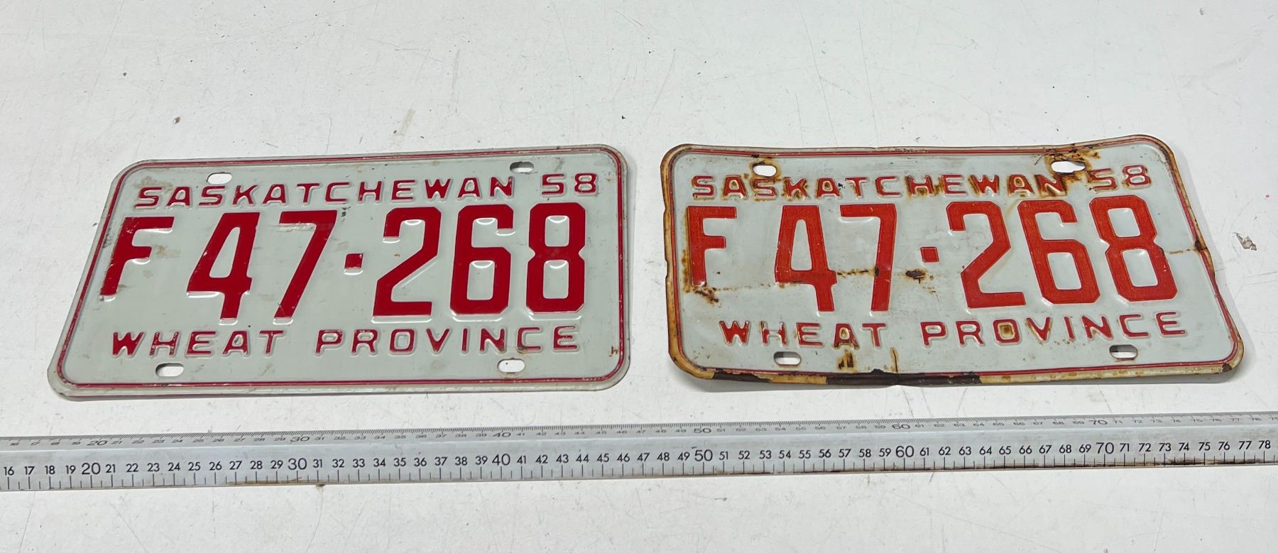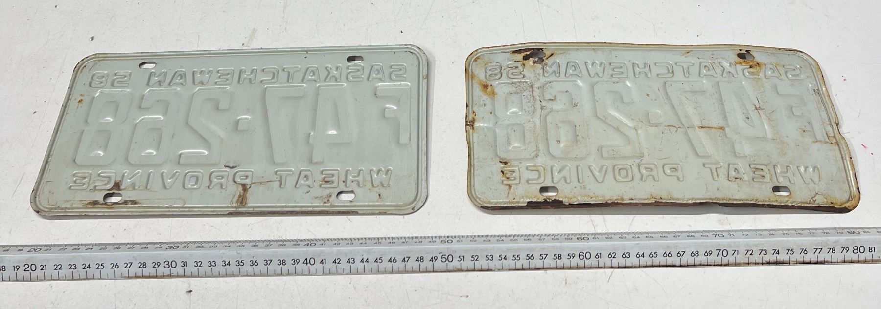 pair of 1958 Saskatchewan farm Plates