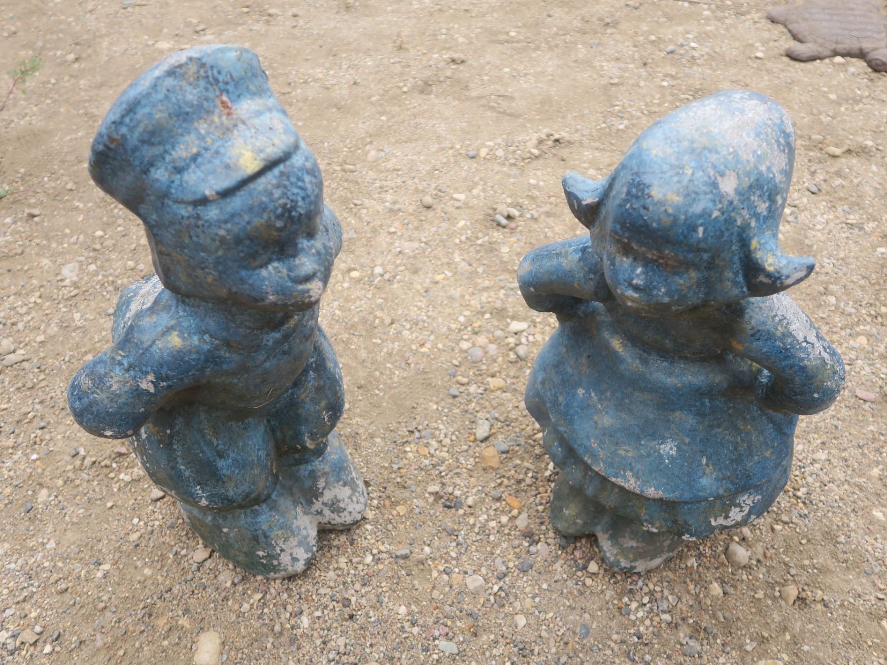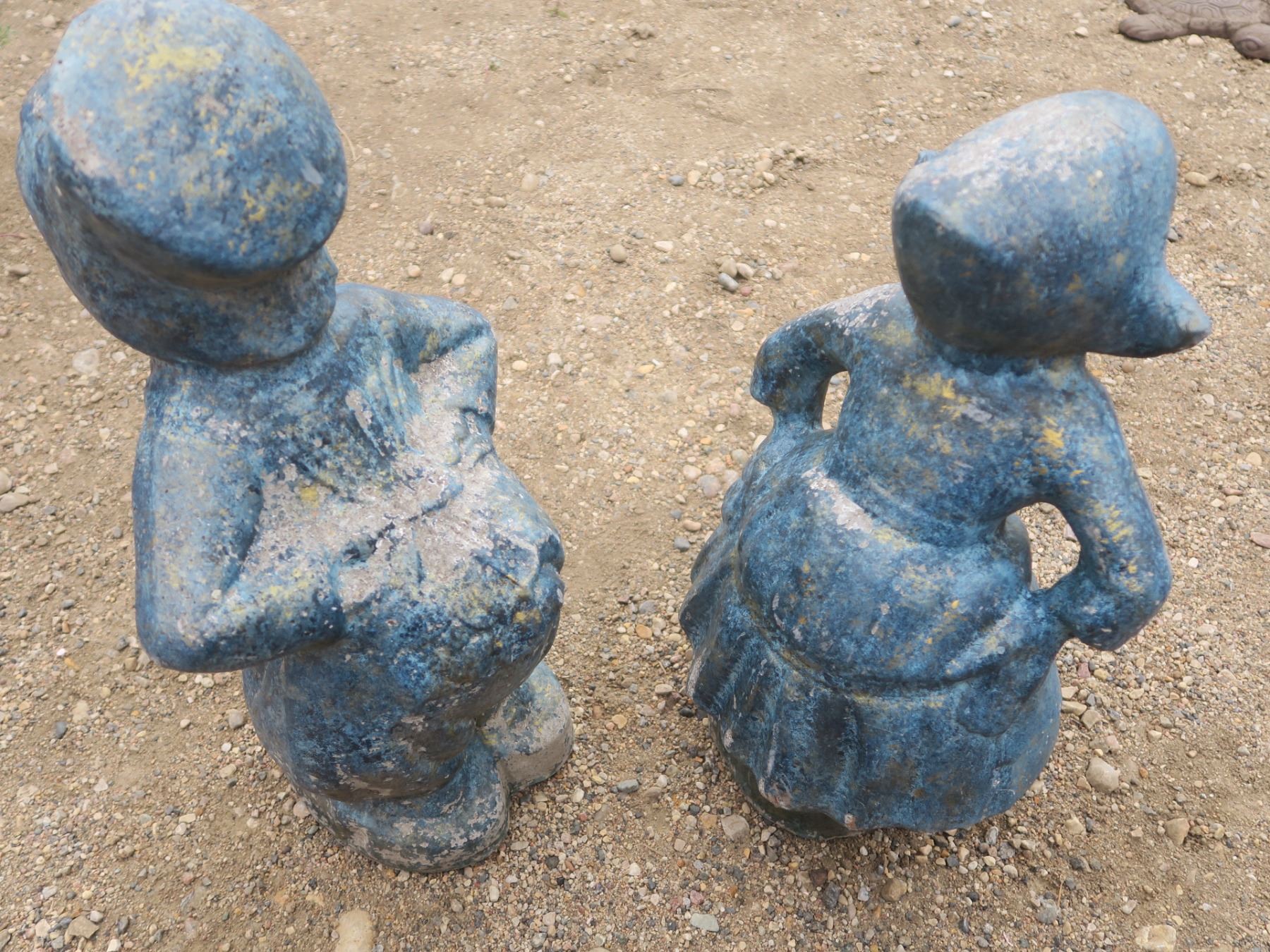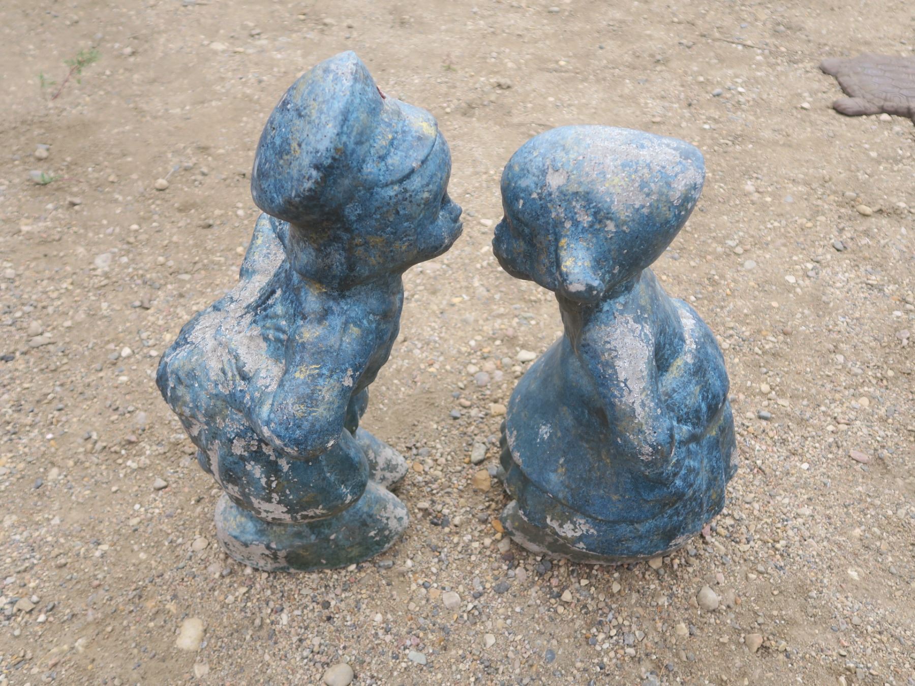 pair of kissing cement Dutch boy and girl