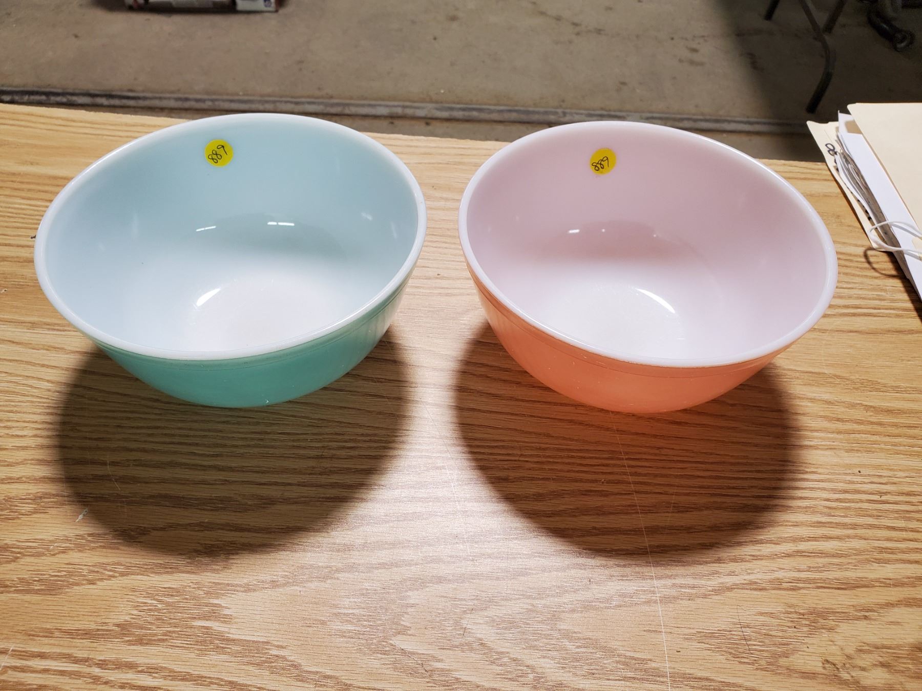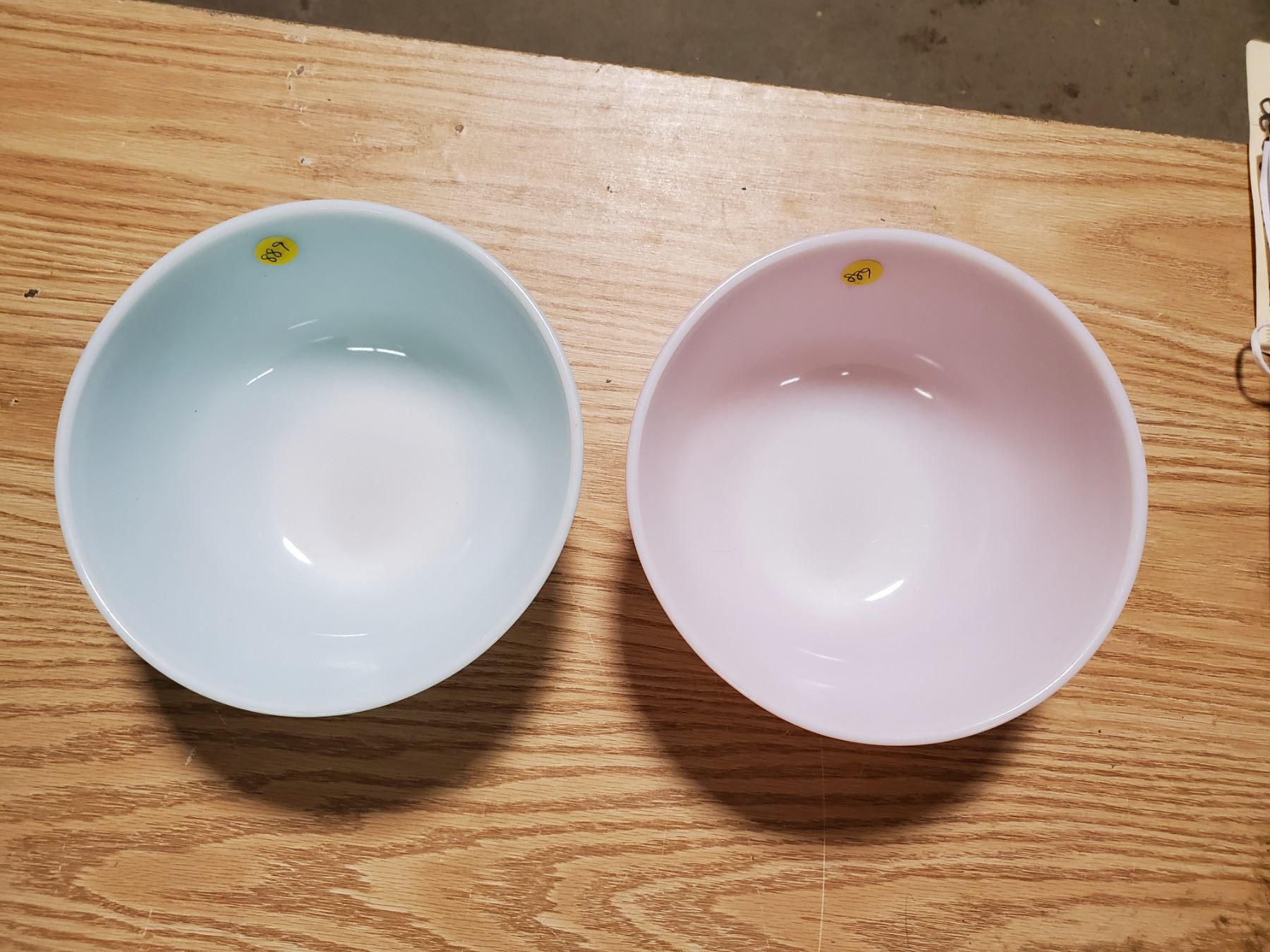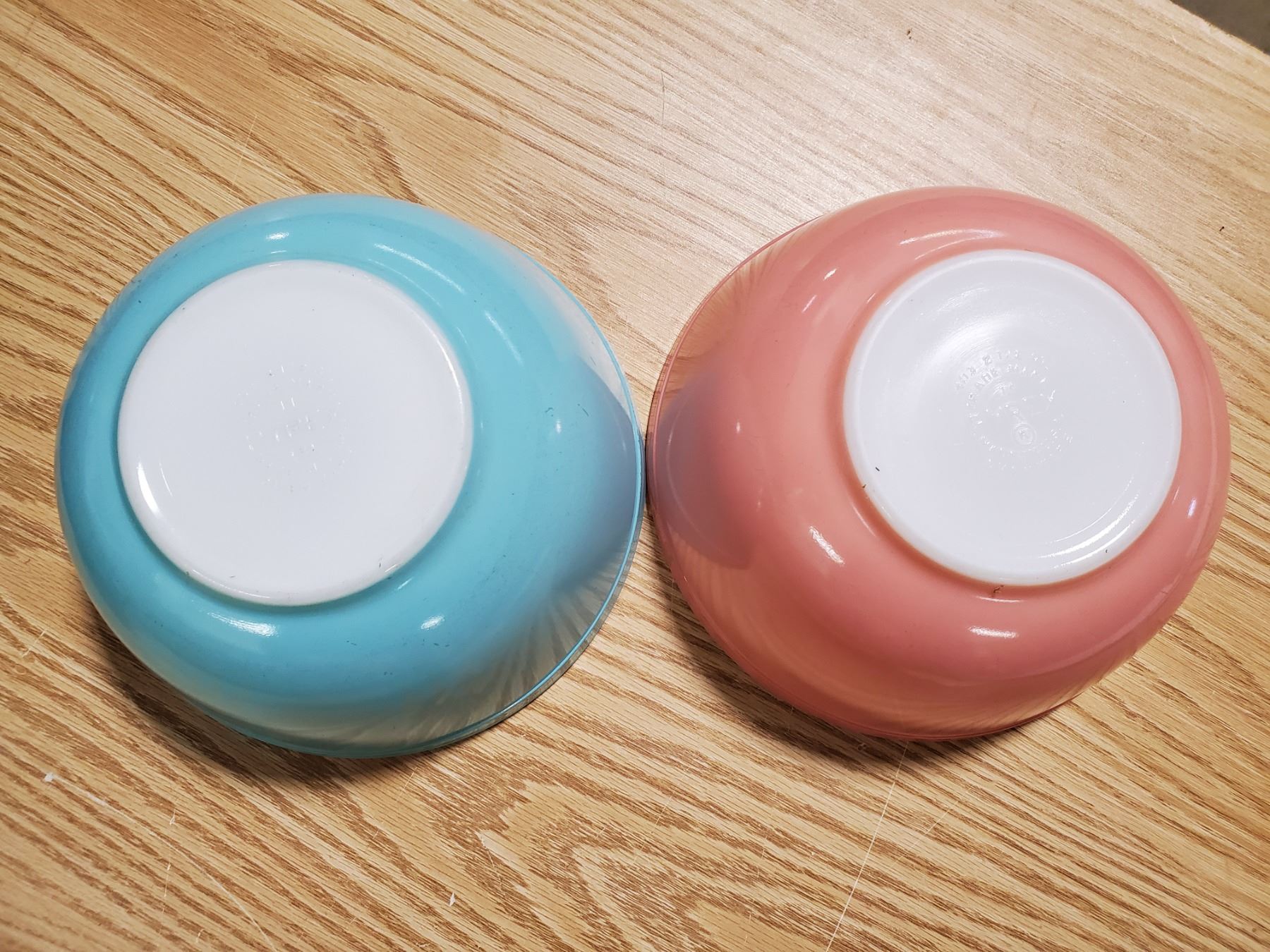 pair of pyrex bowls (pink & blue) 8.75"