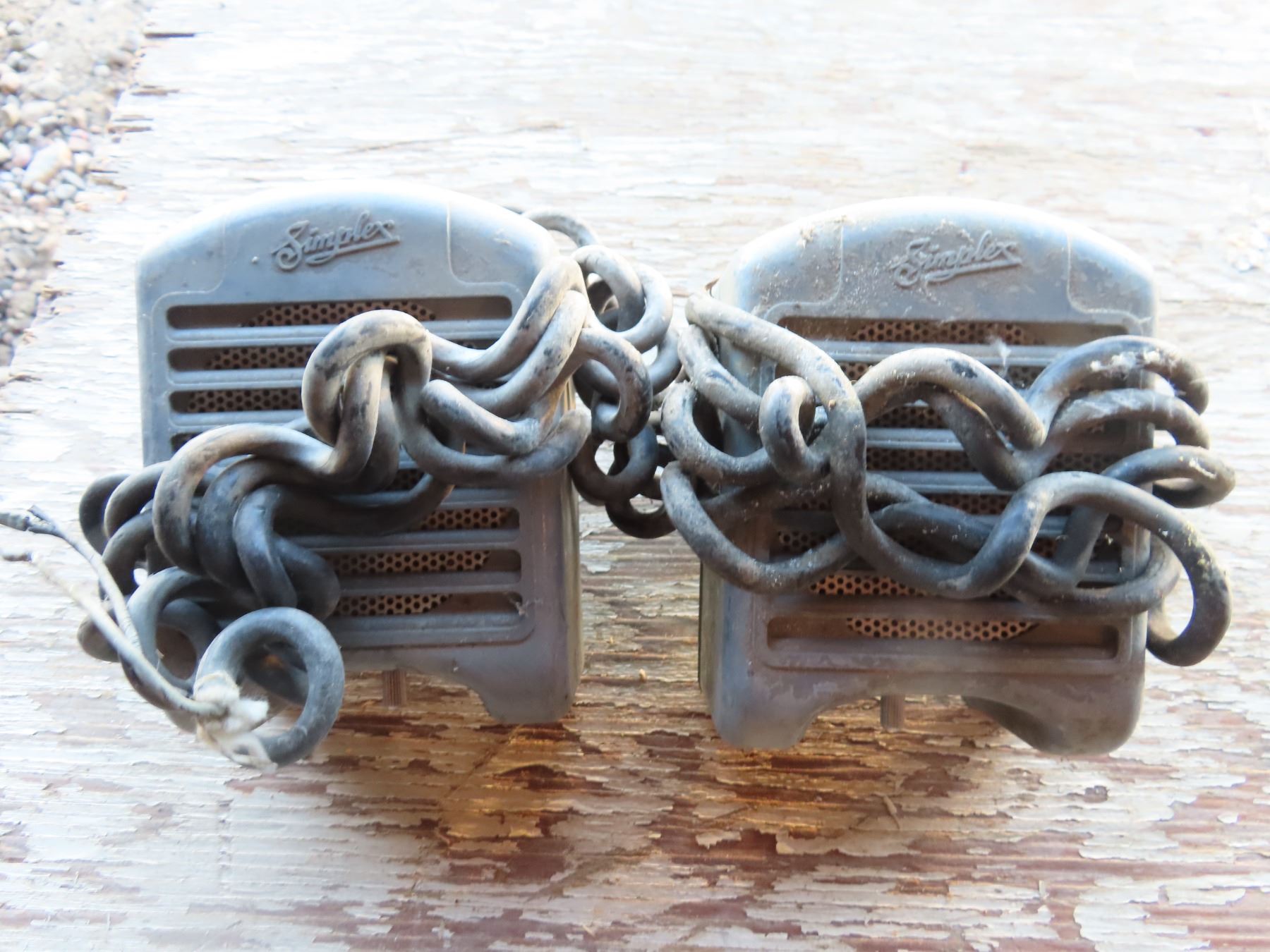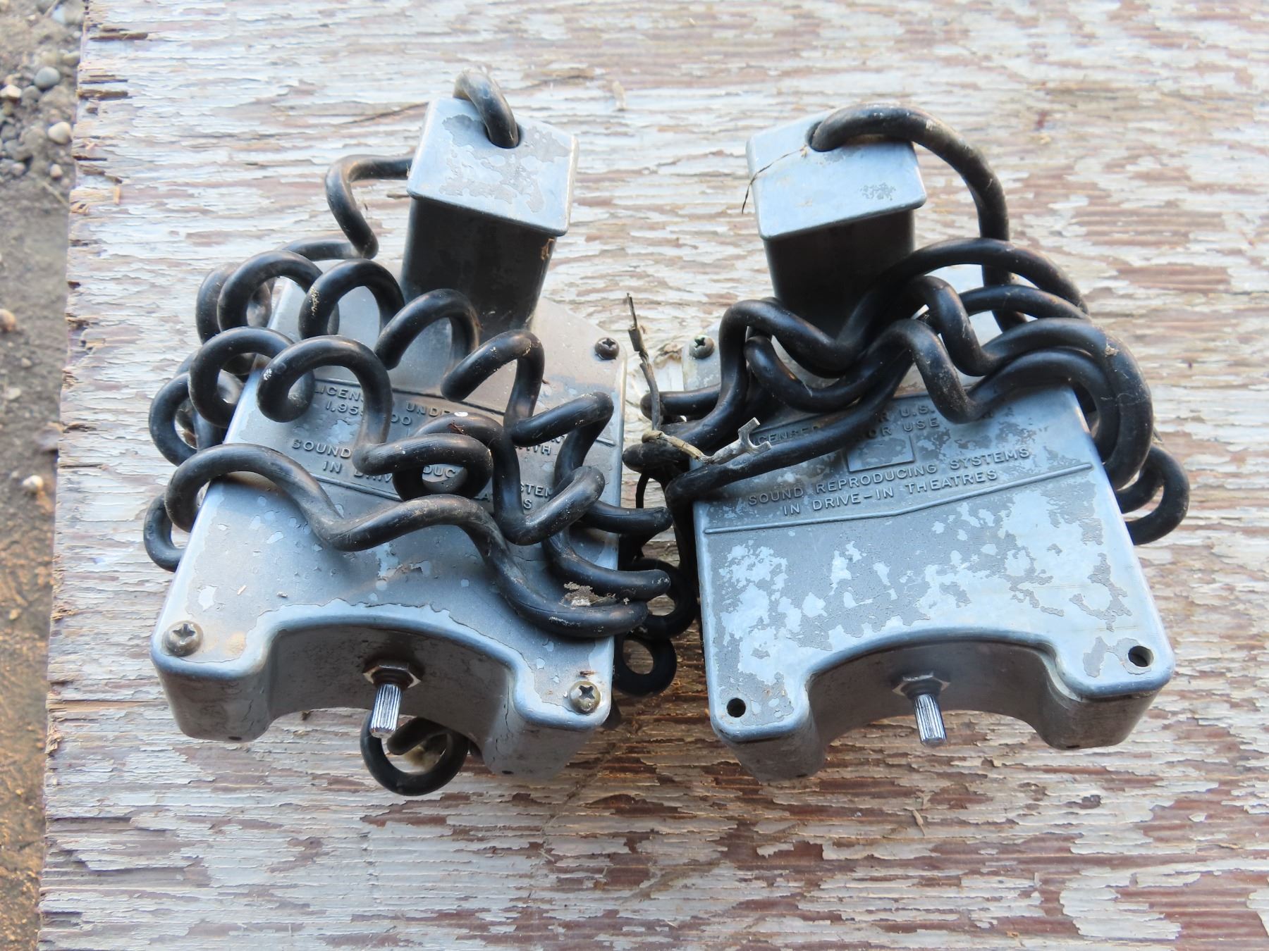 pair of vintage drive-in theatre speakers