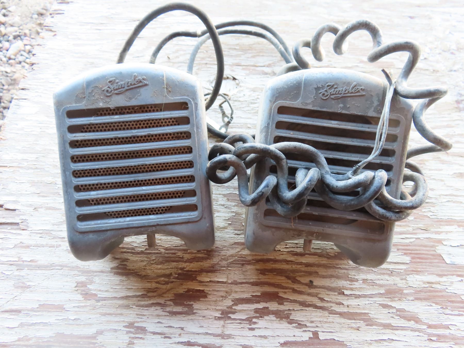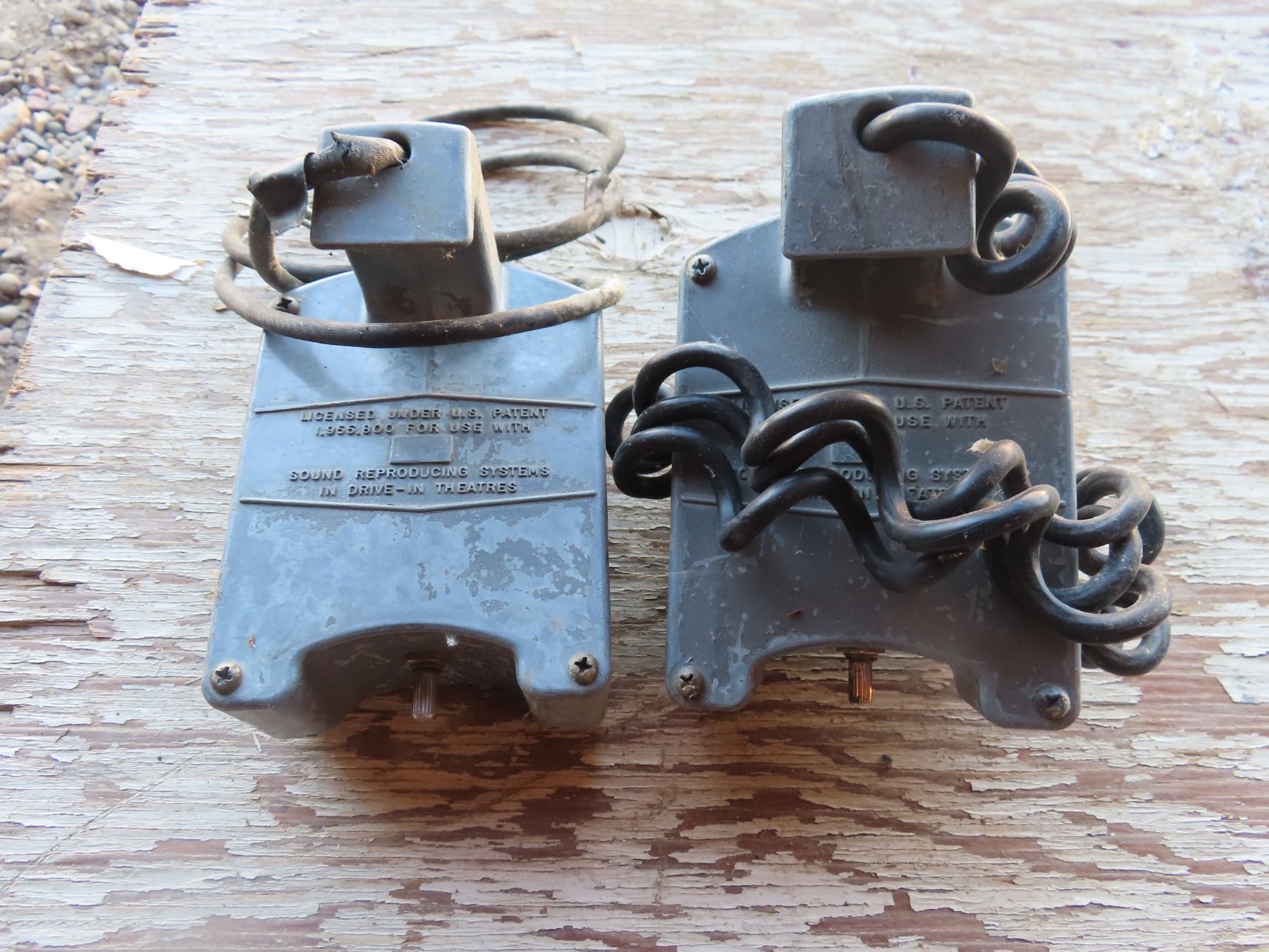 pair of vintage drive-in theatre speakers