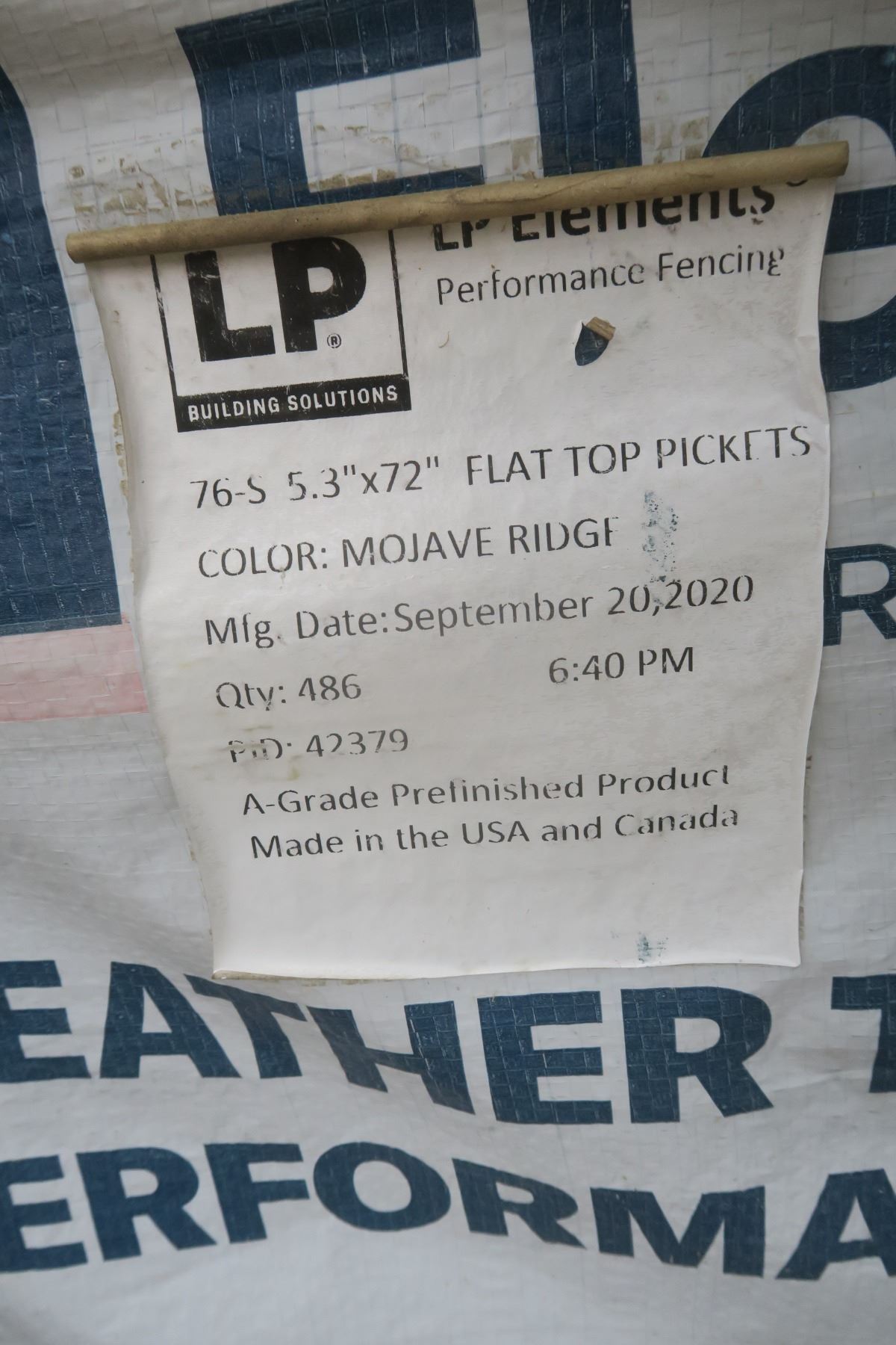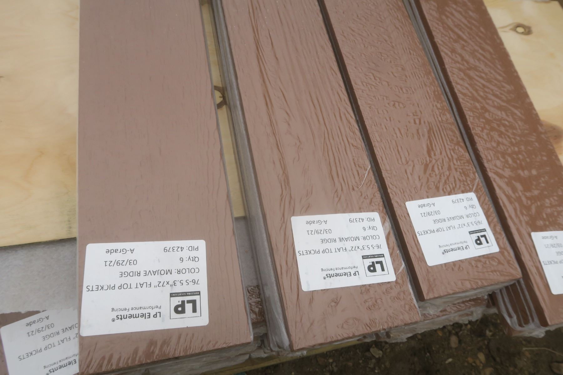 pallet of 486 LP Elements flat top fence pickets - 0.5"x5.3"x72", brown/mojave ridge