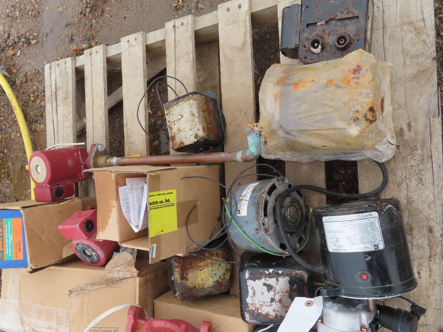 pallet of gas , electrical boxes , assorted fittings