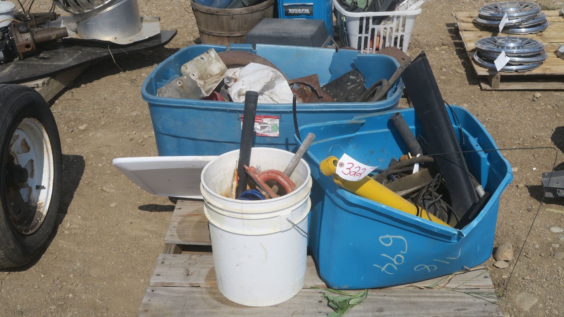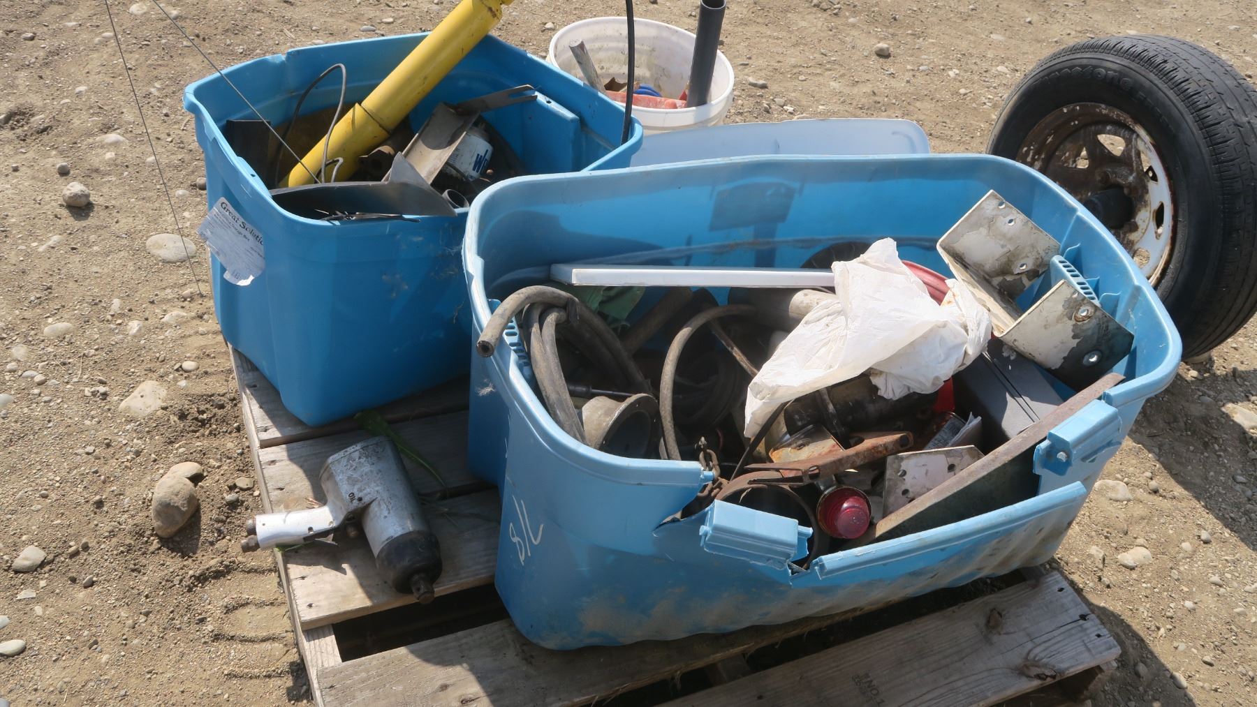pallet of mechanic items, tools, wires, shock, 3/4"