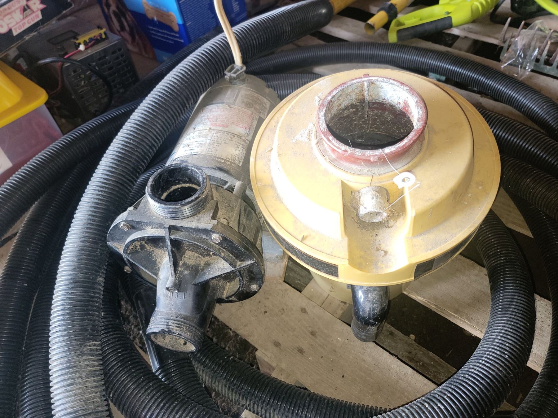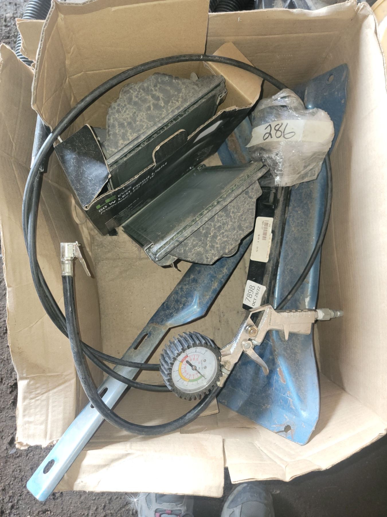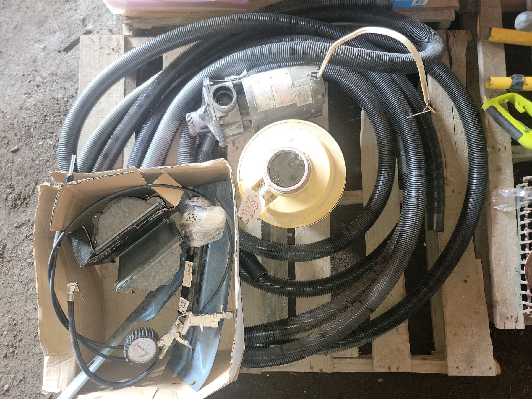 pallet of unclaimed merchandise (must take all) water pump, halogen light, air gauge, discharge hose