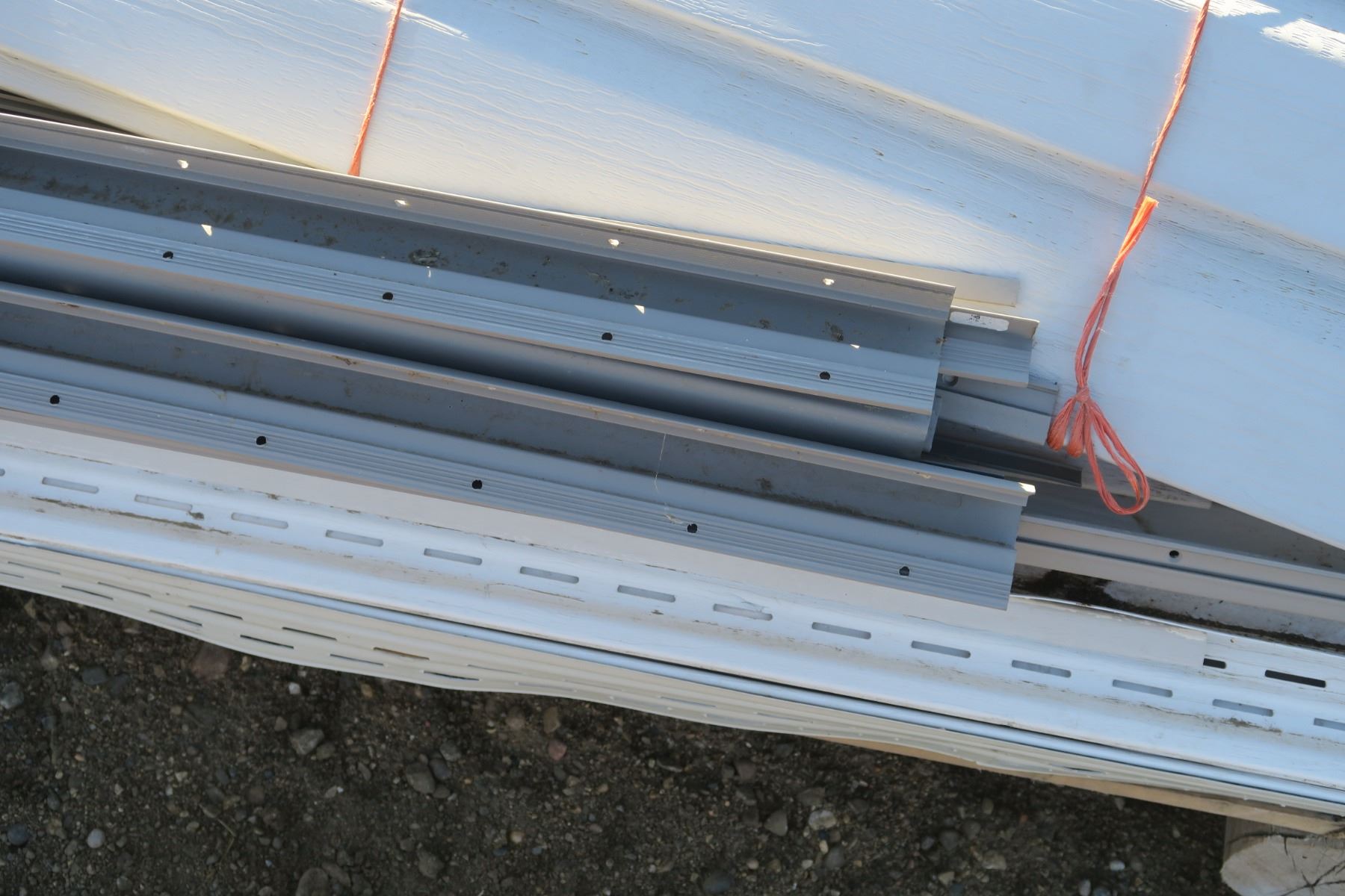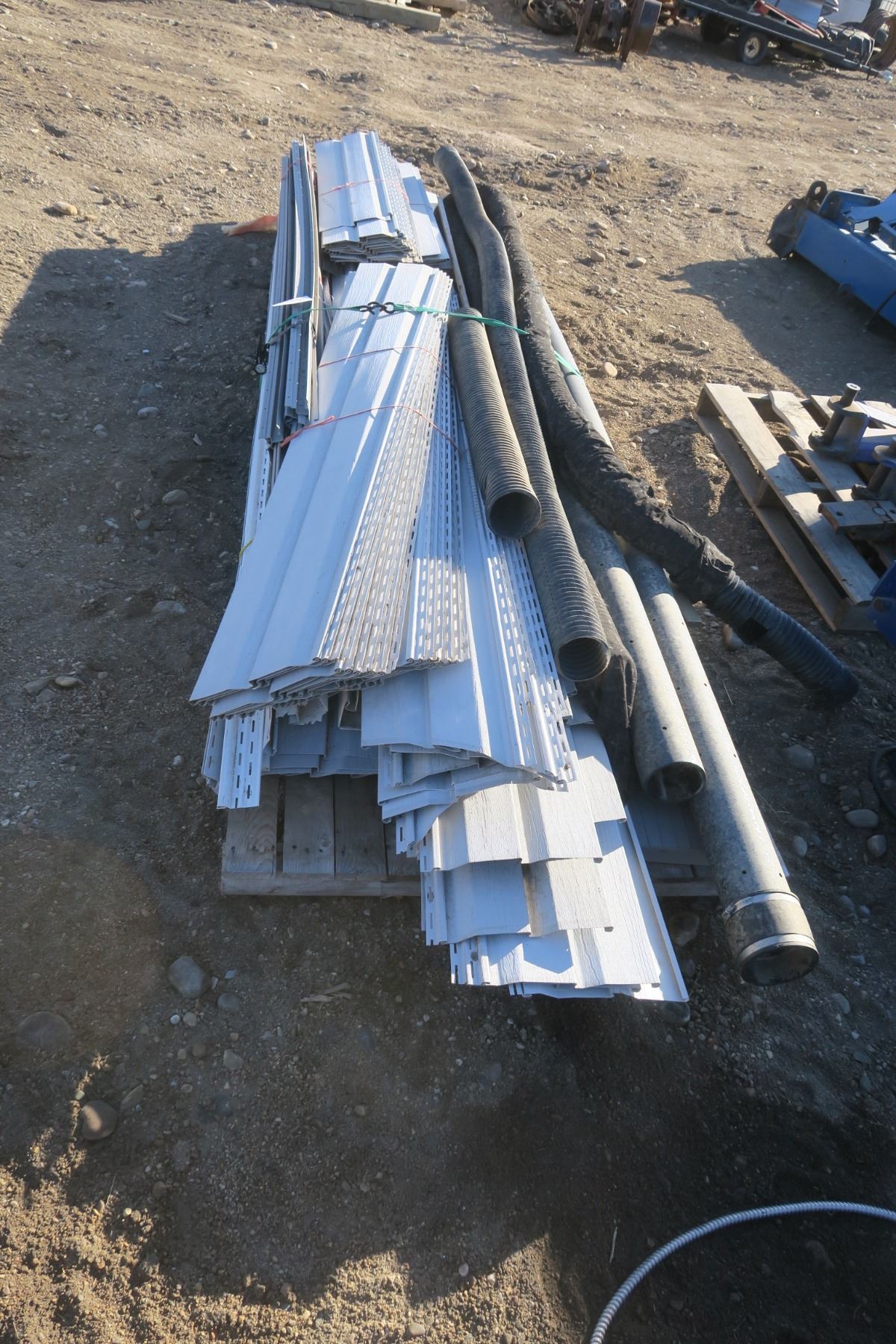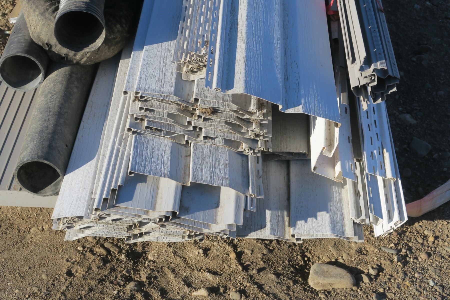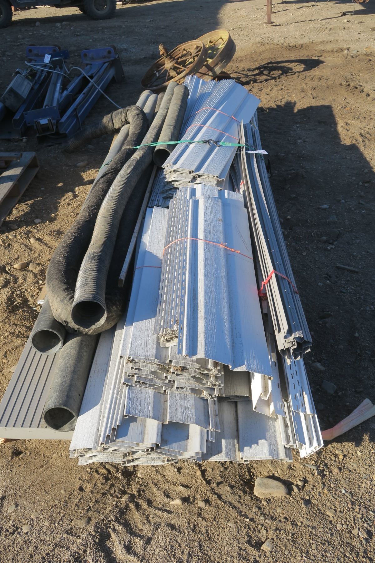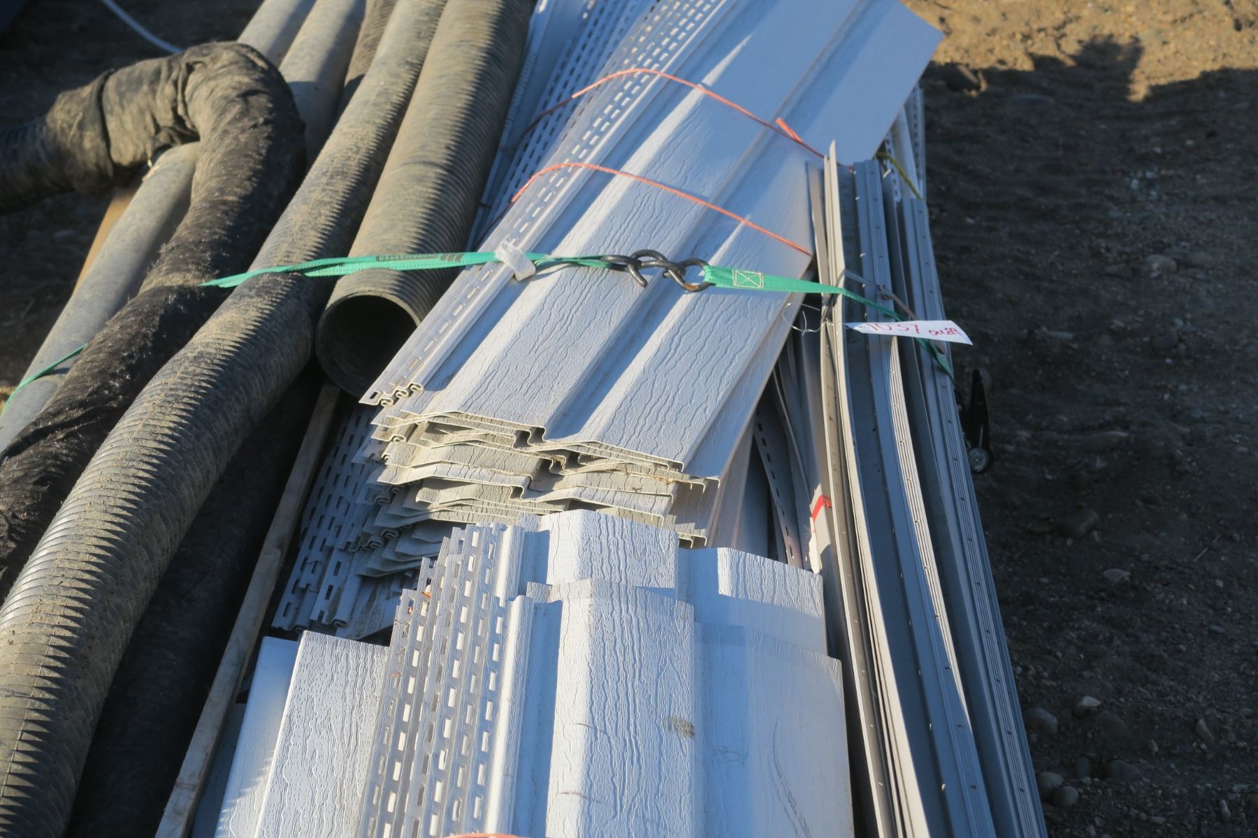 pallet of vinyl siding, varous lenghts, 200 to 600 Sq FT, misc other items.