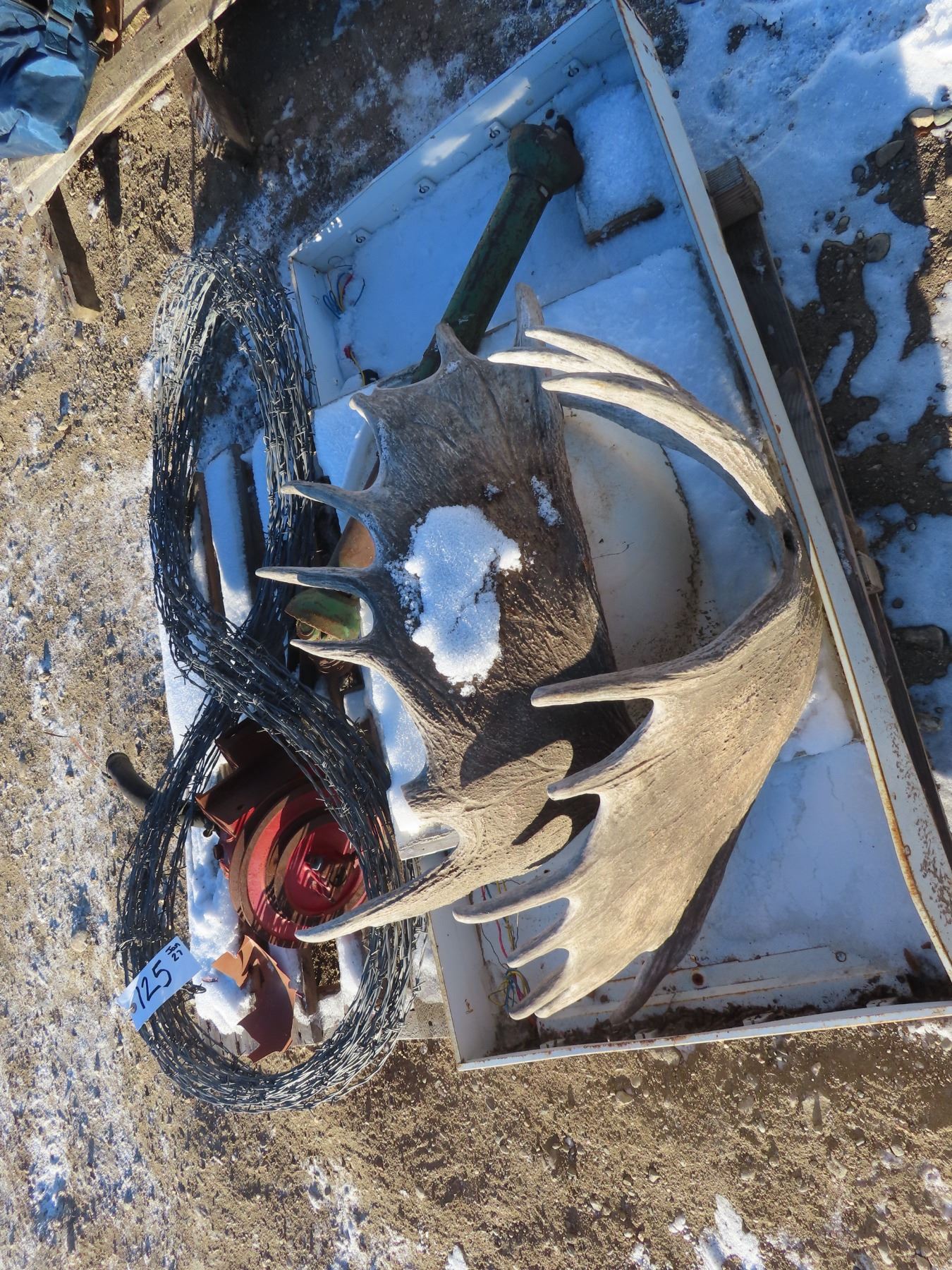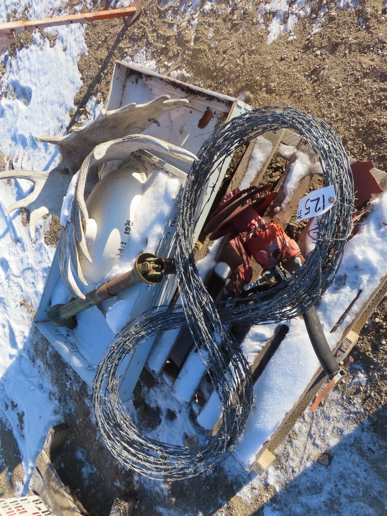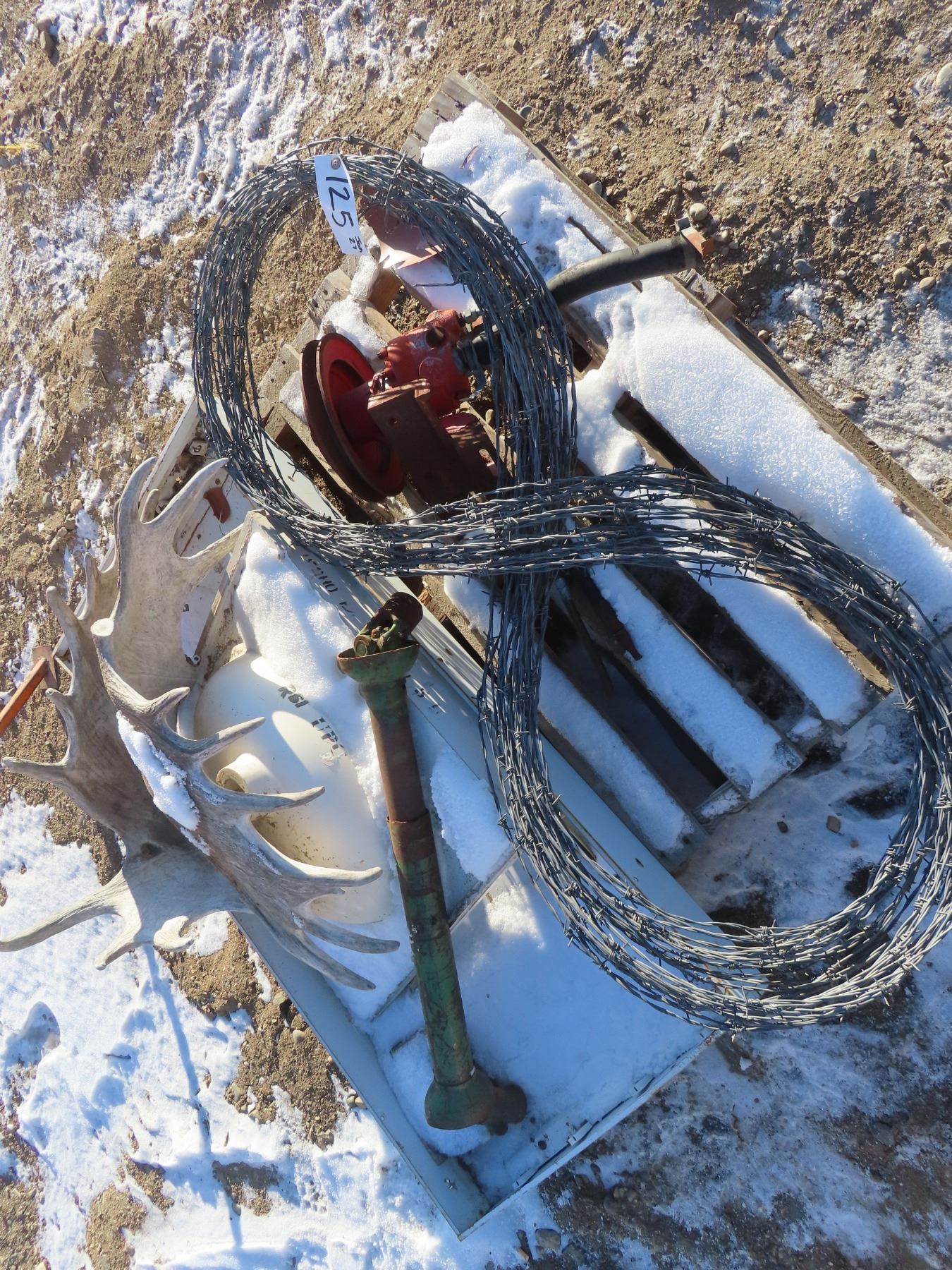 pallet with barbed wire , antlers , 3point attachment , fuel transfer pump