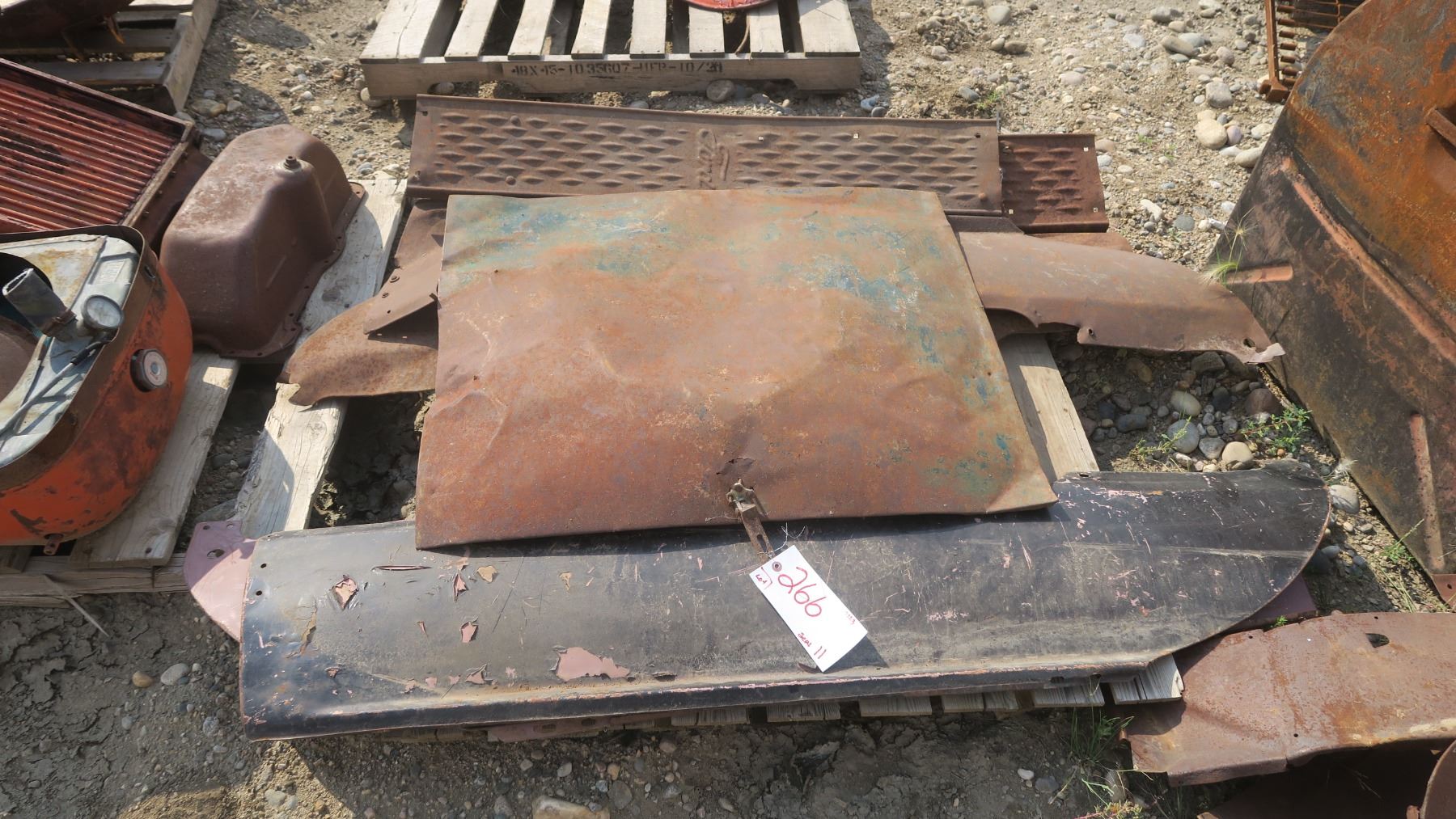 pallet with side skirts , fenders, trunk lid from a Ford model A or T