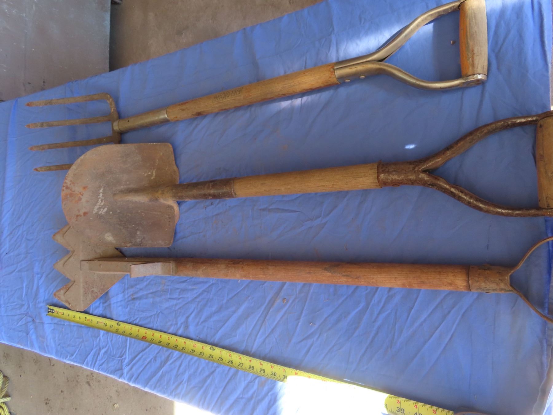 pitch fork , shovel , hay cutter