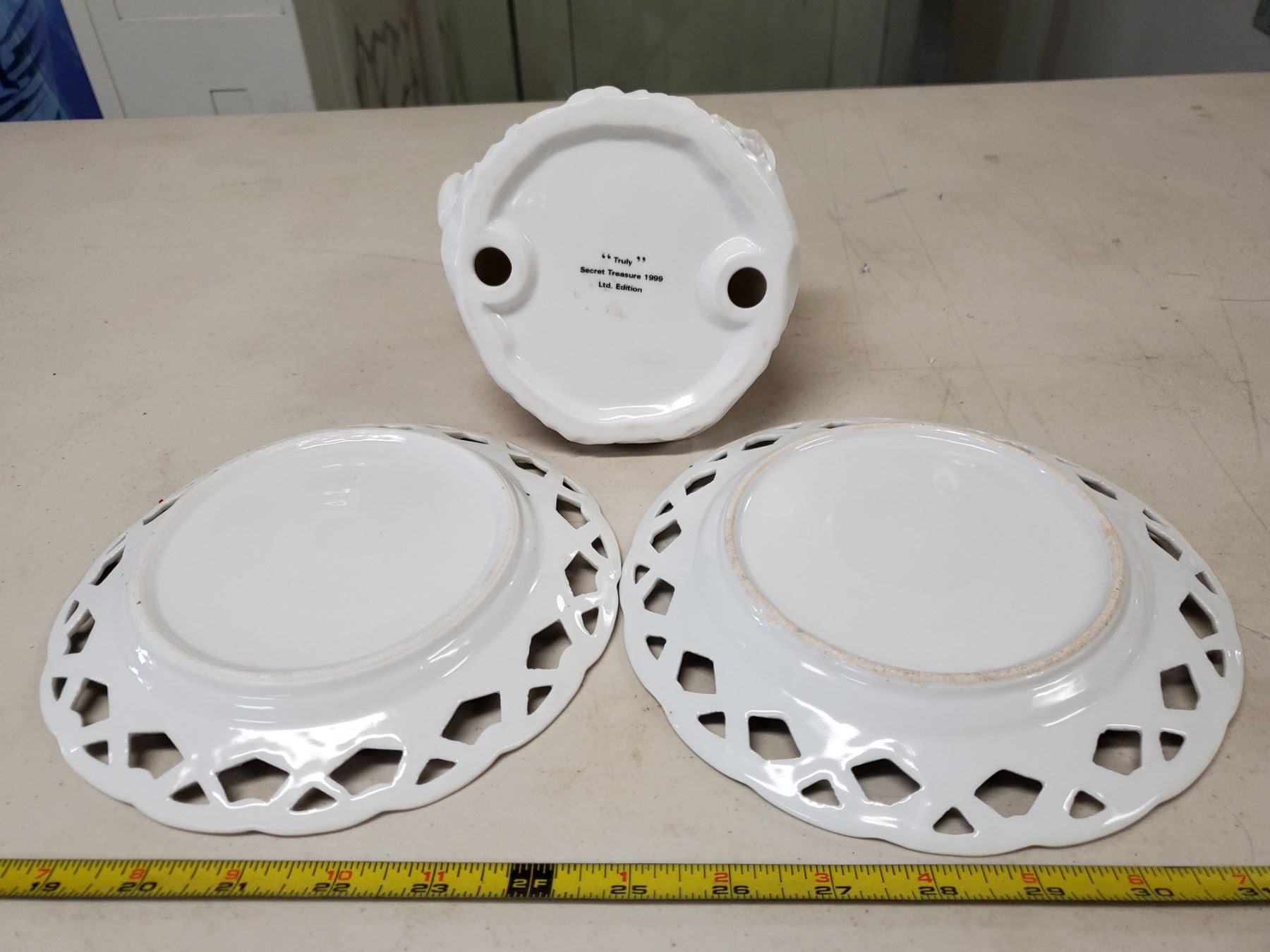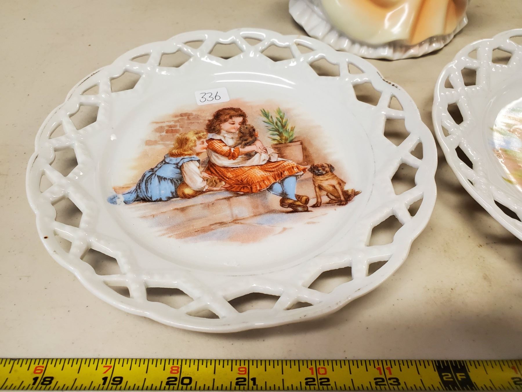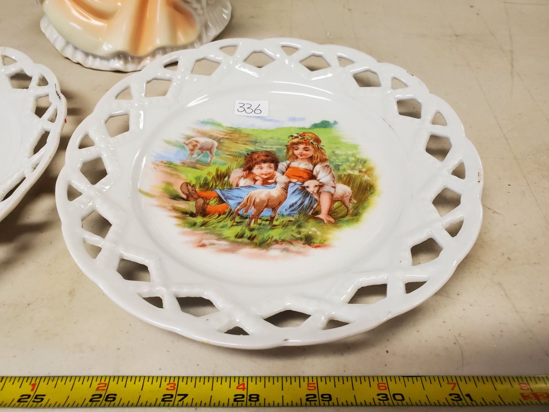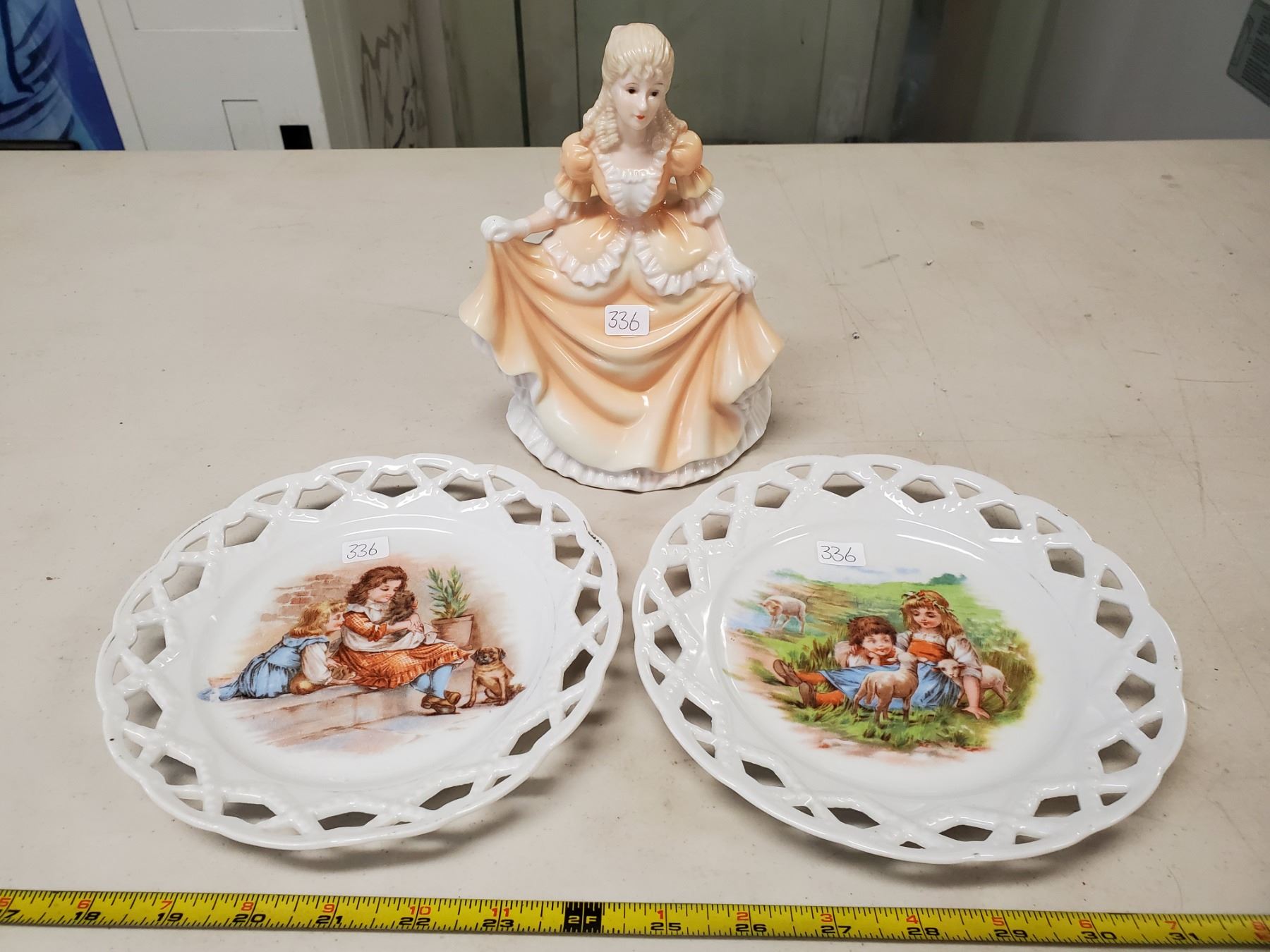 porcelain dancing lady & 2 matching decorative plates