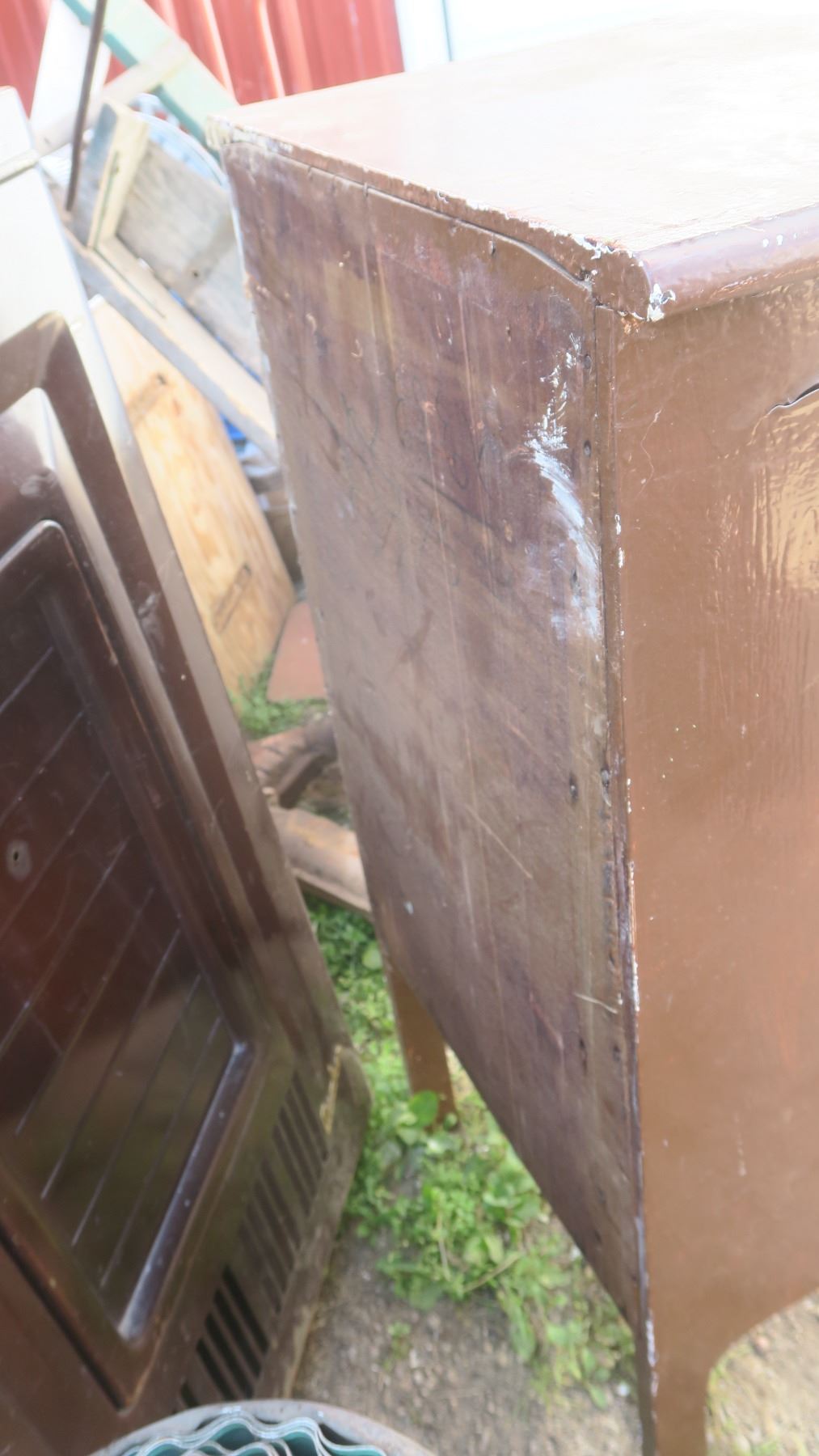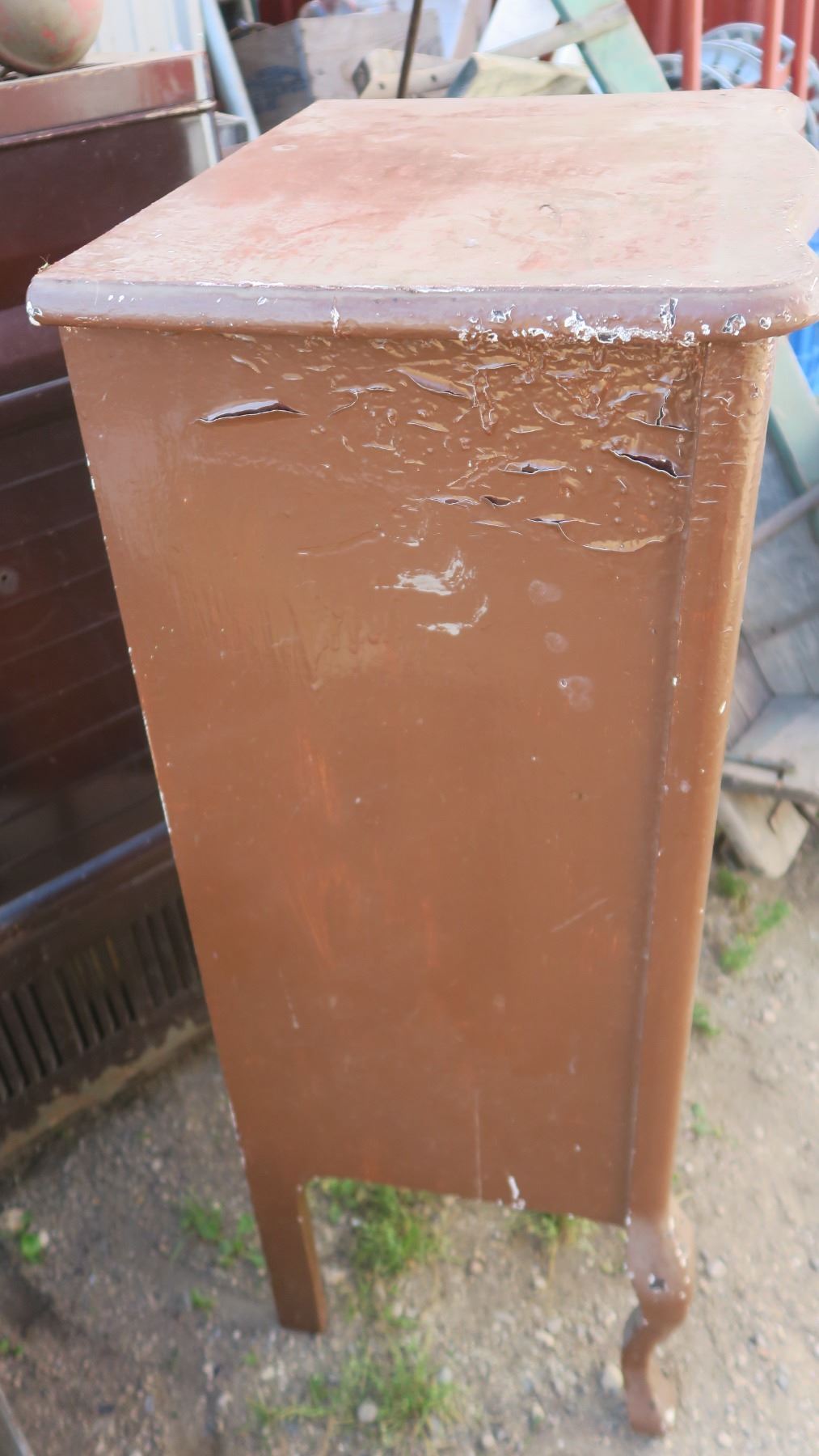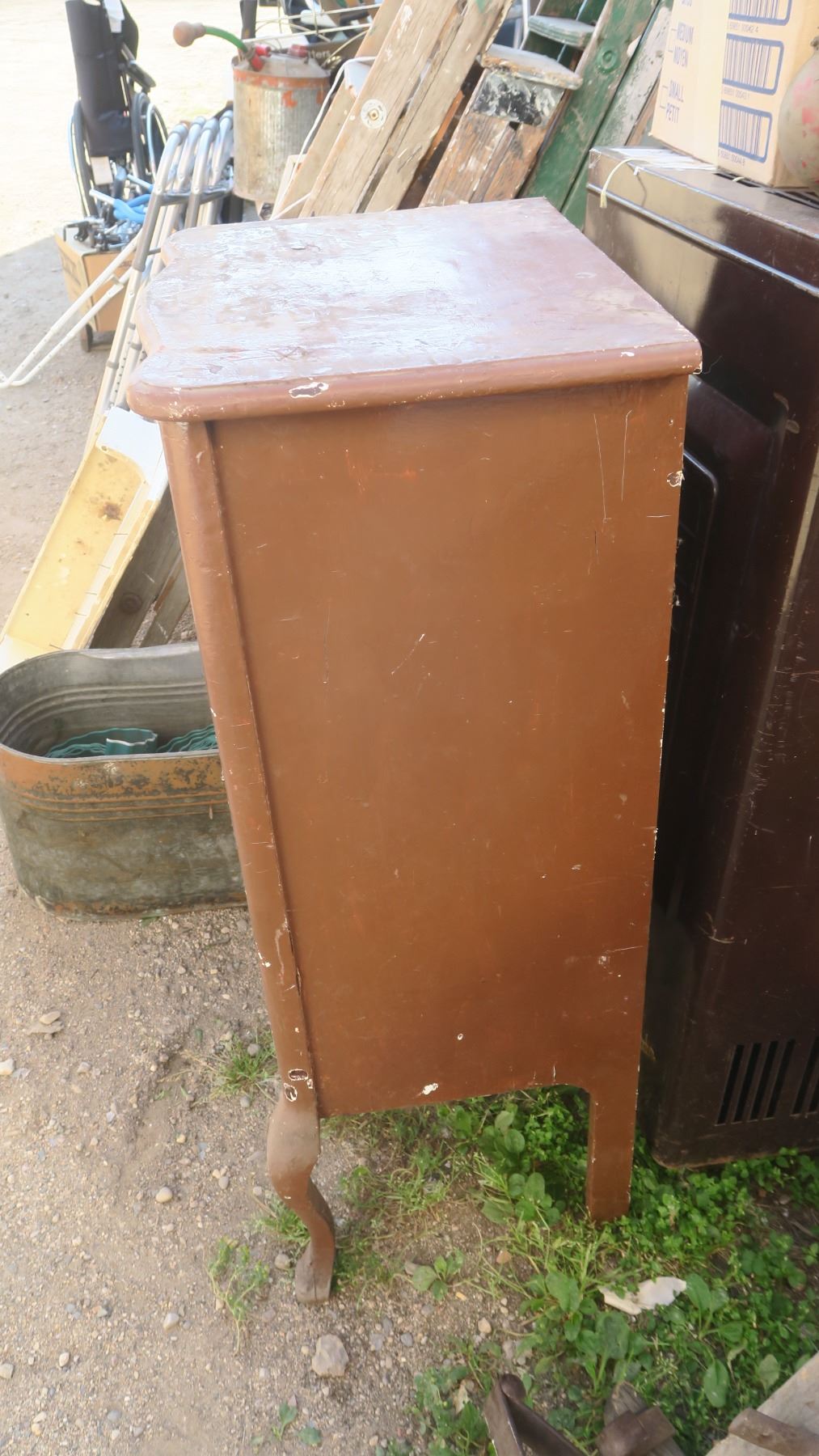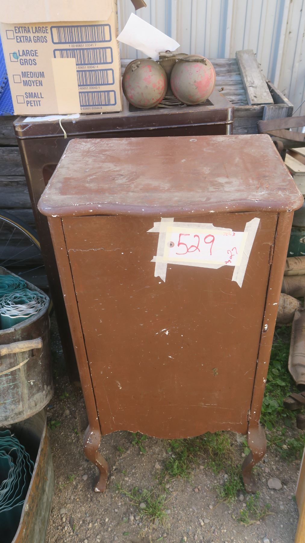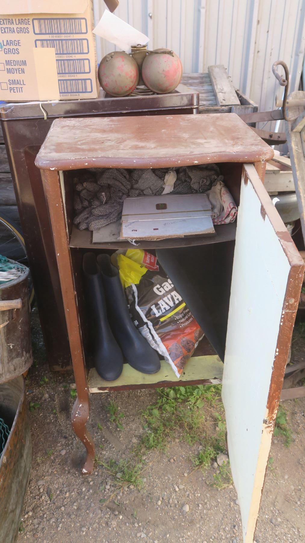 record cabinet, with misc items inside.