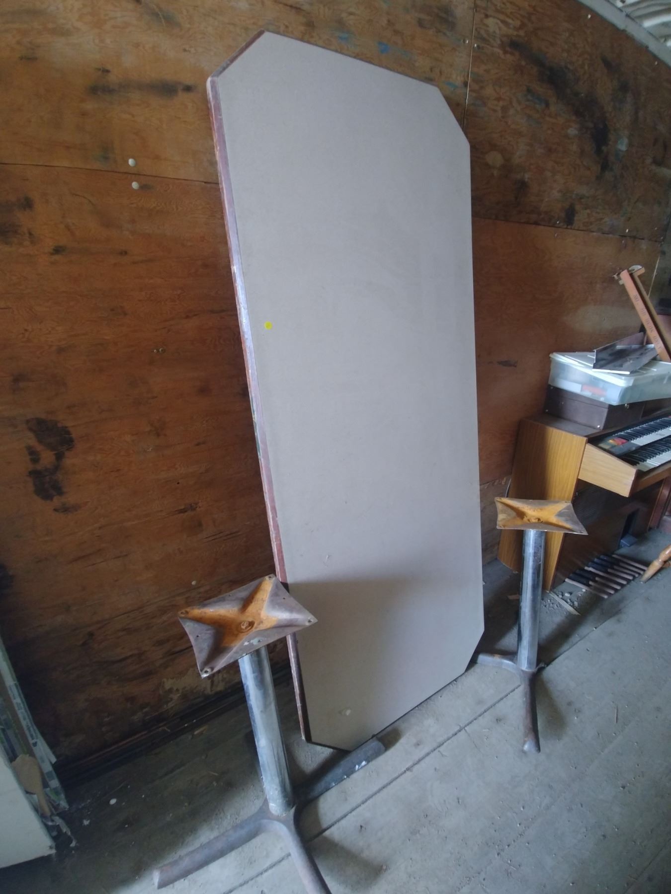 rectangluar table top approx 8ft long and 2 bases