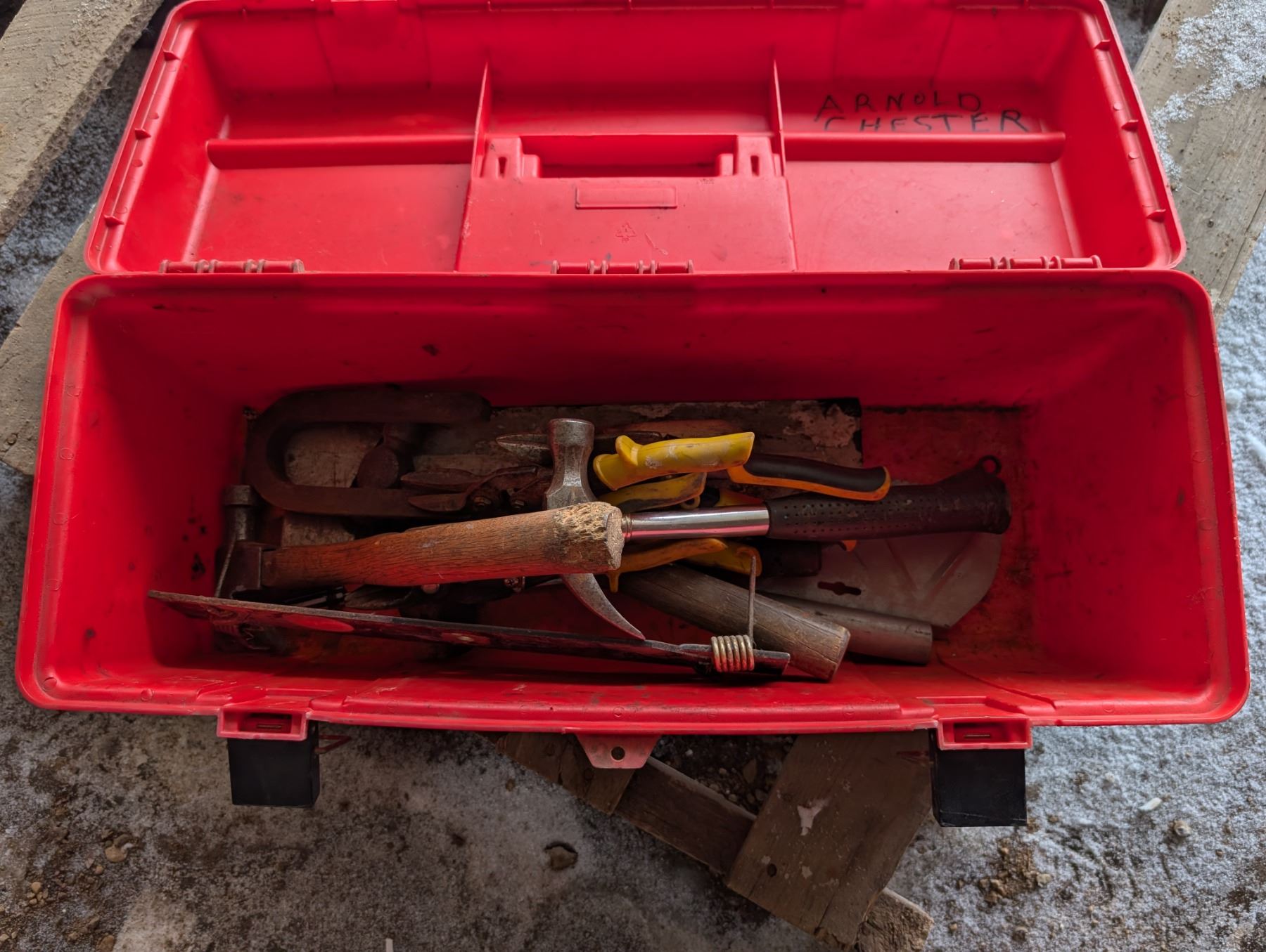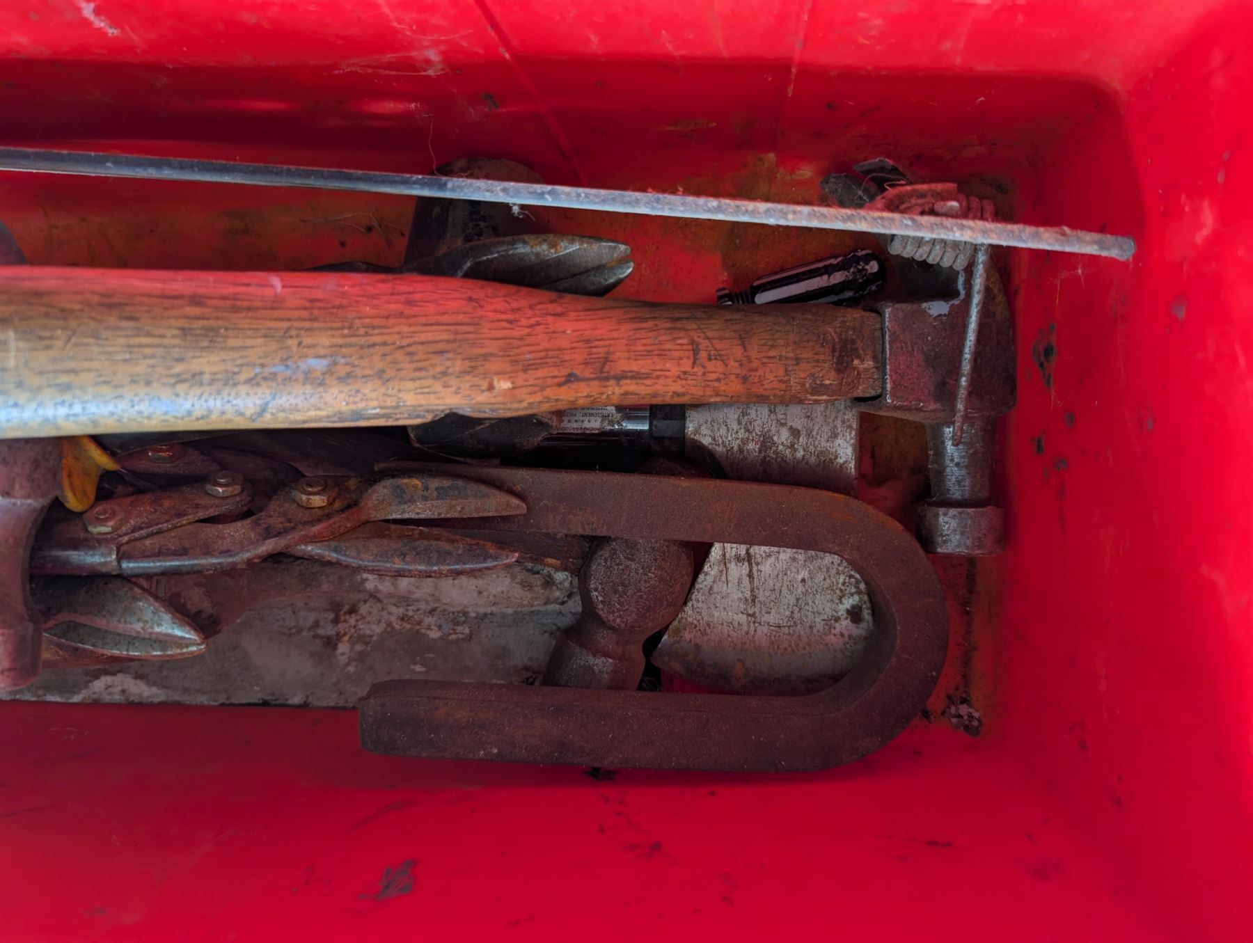 red Tool box w/ misc. tools As Shown