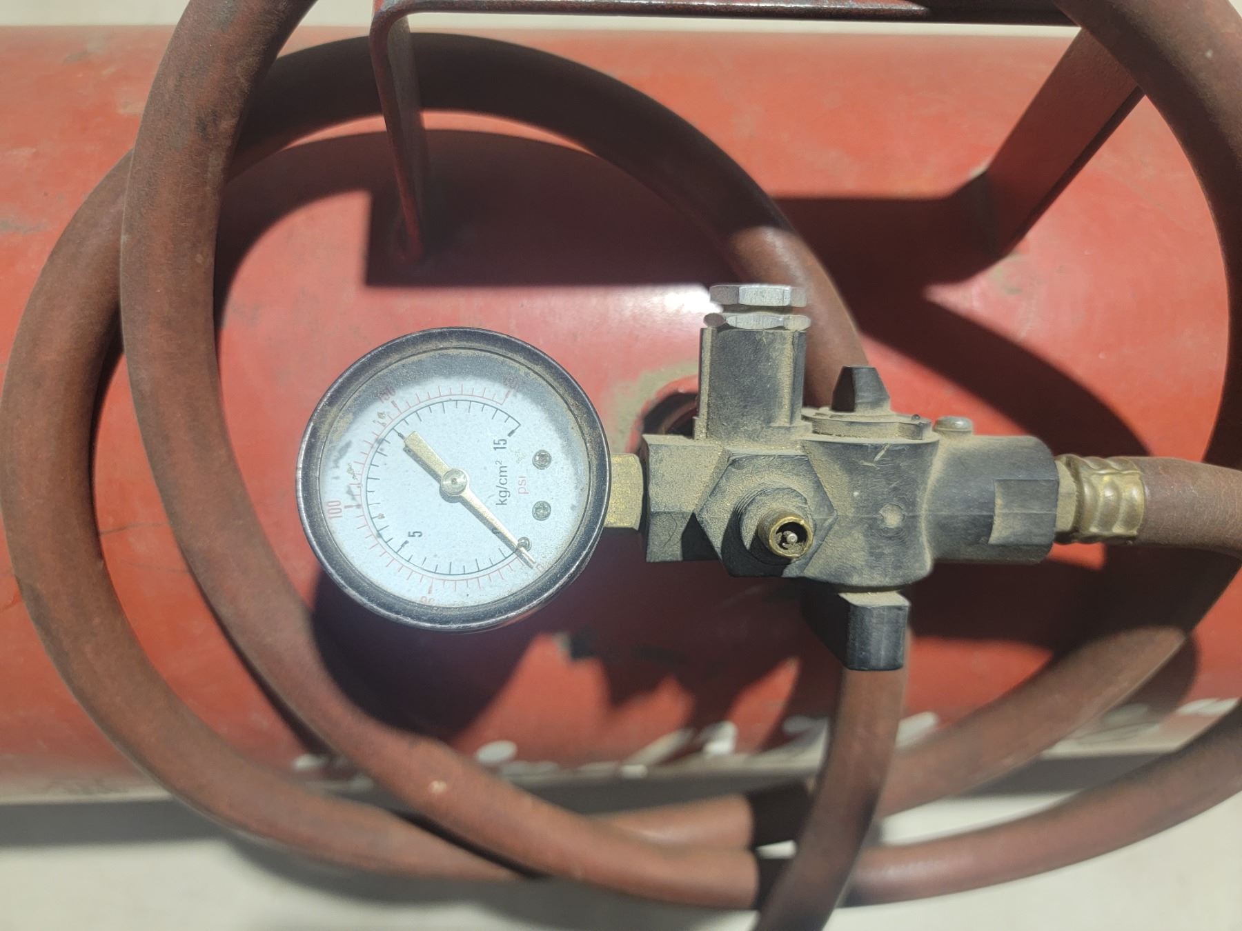 red air tank w/ gauge